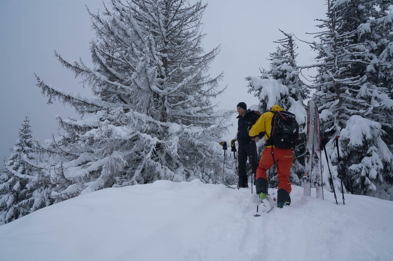 Eigentlich ist auf einer Skitour sogar die Abfahrt (zumindest für mich) das eigentliche Highlight, und der Gipfel lediglich eine Randnotiz. Macht nebenbei auch die Tourenwahl vielfältiger. Eine meiner liebsten Touren im Hochwinter ist der Häderenberg südlich von Stein SG. Ein absolut unbedeutender Hubbel mitten im Bergwald, ohne jegliche aussicht. Für Schneeschühler so interessant wie kalter Kaffee, für mich extremst reizvoll, weil ich die quasi lawinensichere Nordabfahrt mit ihren 600Hm einfach 2x hintereinander mache, so auf eine ordentliche Tour komme und eine steinlose Wiese runter turnen kann - bei Pulver und auch bei mieser Sicht (dank Bäume als Orientierung) schlichtweg genial.