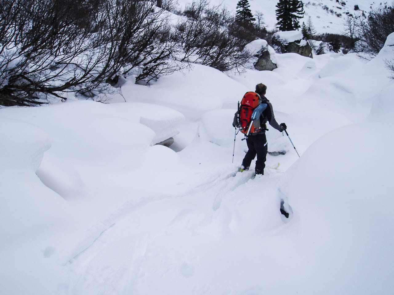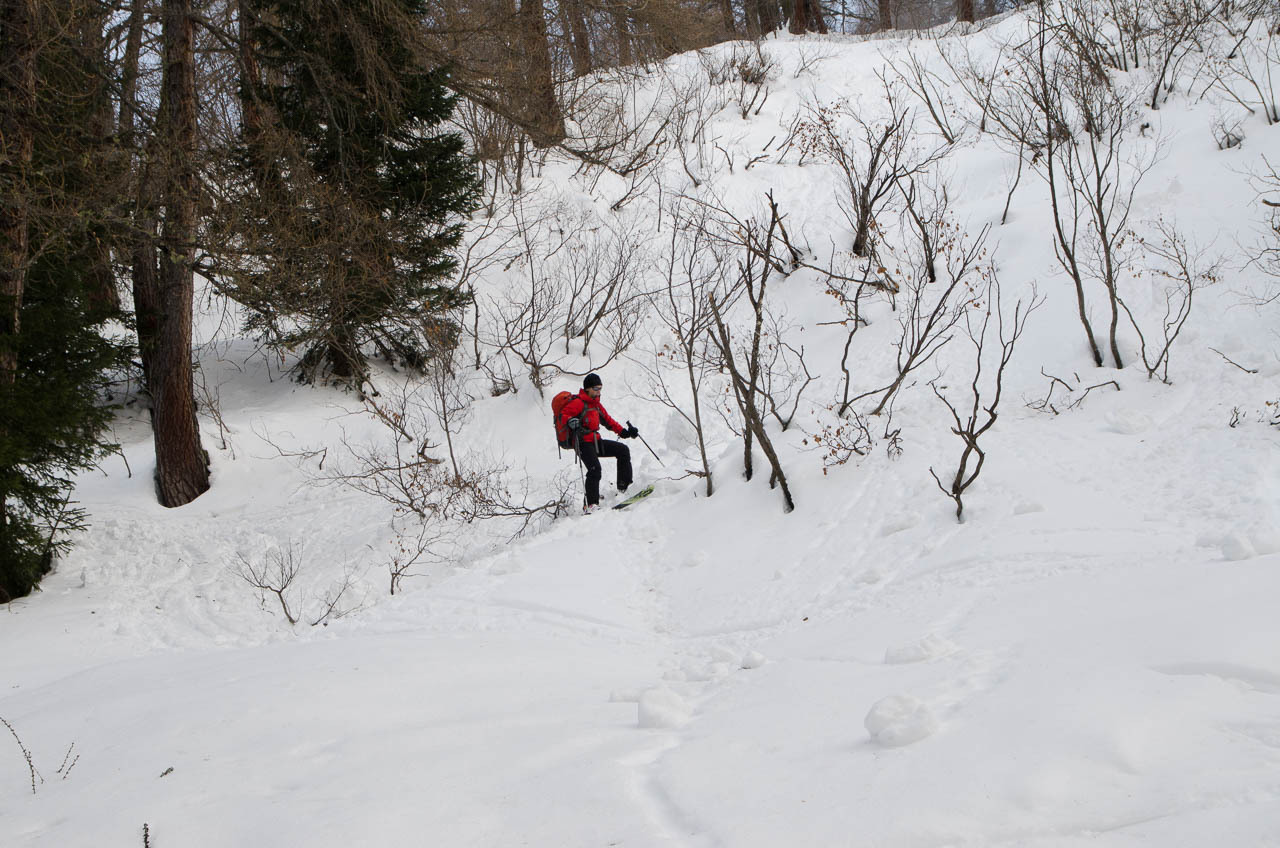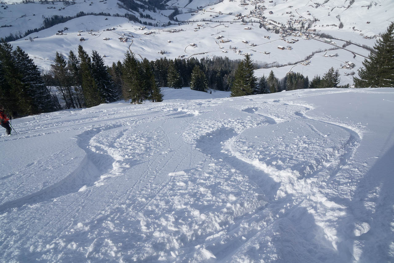 Für Schneeschuhgänger ist das hier im Abstieg zeitraubende Pflicht (ebenso wie der Häderen), für Ski das Highlight der Tour: