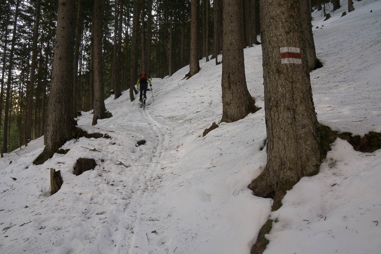 Raufstapfen, sich blöd anreden zu lassen wenn man auf der Skispur rumeiert.. und dann im Abstieg runterwackeln wia a Antn... neee im Leben nicht!
