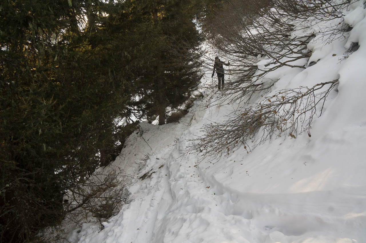 Da müsste es schon einen Pfad geben, so wild durchs Gestrüp ist es nicht so toll (Becks hat sicher irgendwo noch die passenden Abstiegsbildern....mit Ski in der Hand ).