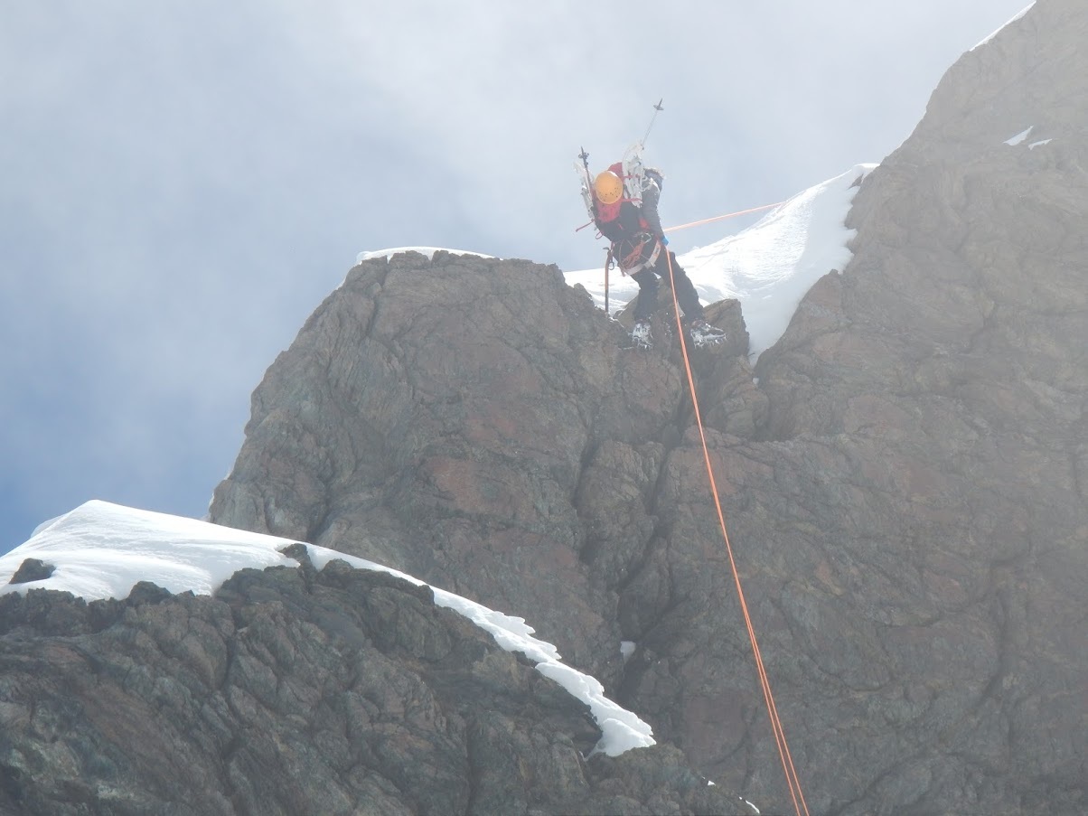 Ich habe Schneeschuhe v.a. aus sozialen Gründen, d.h. um sie Bekannten auszuleihen und ihnen mal eine verschneite Winterlandschaft zeigen zu können abseits der Wege. Ich selbst bin wenn möglich eher mit Tourenski unterwegs und benutze Schneeschuhe eher bei Wanderungen, mit nur kurzen Schneestrecken oder im Frühsommer in den Bergen zum Zustieg, wenn ich eine Klettertour mache, bei der ich zu Fuß vom Gipfel zum Einstieg zurück absteige und bei der Klettertour keine dicken Skischuhe mittragen möchte, sondern nur Bergschuhe. Im hochalpinen Bereich kann das auch interessant sein, z.B. bei einer Grattour wie hier bei der Breithorn-Überschreitung im Juni, wo man beim Abstieg etwas benötigt, um nicht einzusinken. Mit Ski am Rücken wäre so etwas eher umständlich, man würde mit denen leichter am Fels anstoßen.