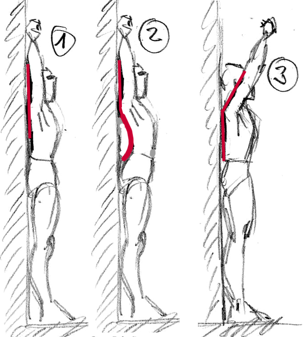 . Auch ohne Arme ist bei mir einen ganz leichten Abstand zur Wand ( und ich habe einen geraden Rücken, auch etwas Muskulatur ist vorhanden, wenn auch nicht wahnsinnig viel).