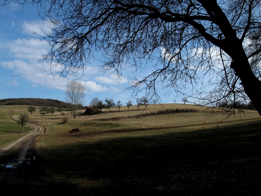 Noch immer war ich unterwegs auf der Bahntrasse, die Strecke ist abwechslungsreich: Mal ein Wäldchen, mal offene Landschaft