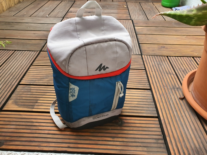 Dazu passend habe ich den 10l Kühlrucksack von Decathlon da passen 4 Dosen maßgeschneidert hinein. Den Kühlrucksack packe ich dann in meinen richtigen Rucksack. Die Dosen bleiben dadurch sehr lange kalt.