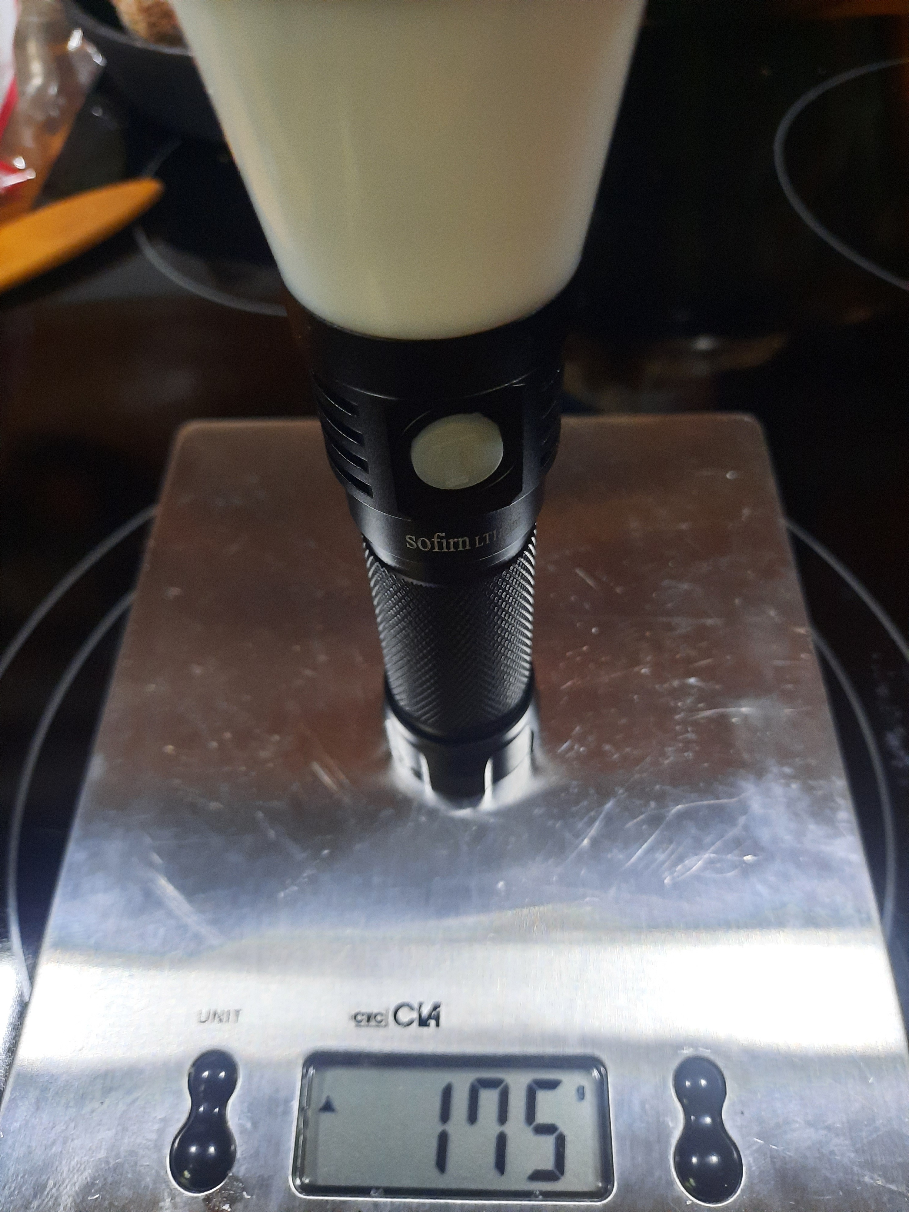 Das Ding ist stabil und wiegt daher auch. 643gr sagt die Küchenwaage. Die LT1 kann Kerzenflackern simuliern, Gewitter und sonst noch einiges. Braucht man das? im Zweifel nö. Schalter beleuchtet, wenn man möchte.