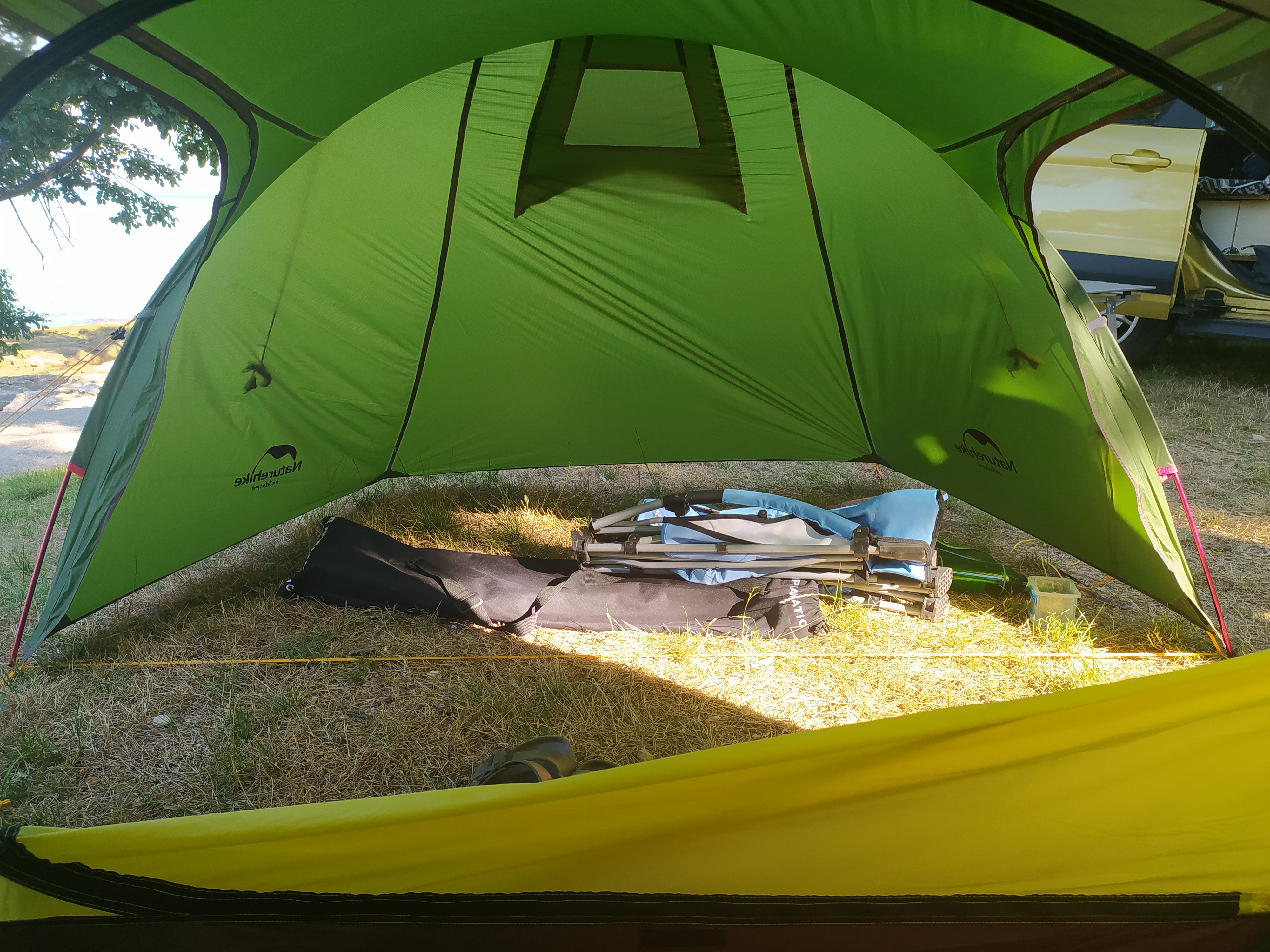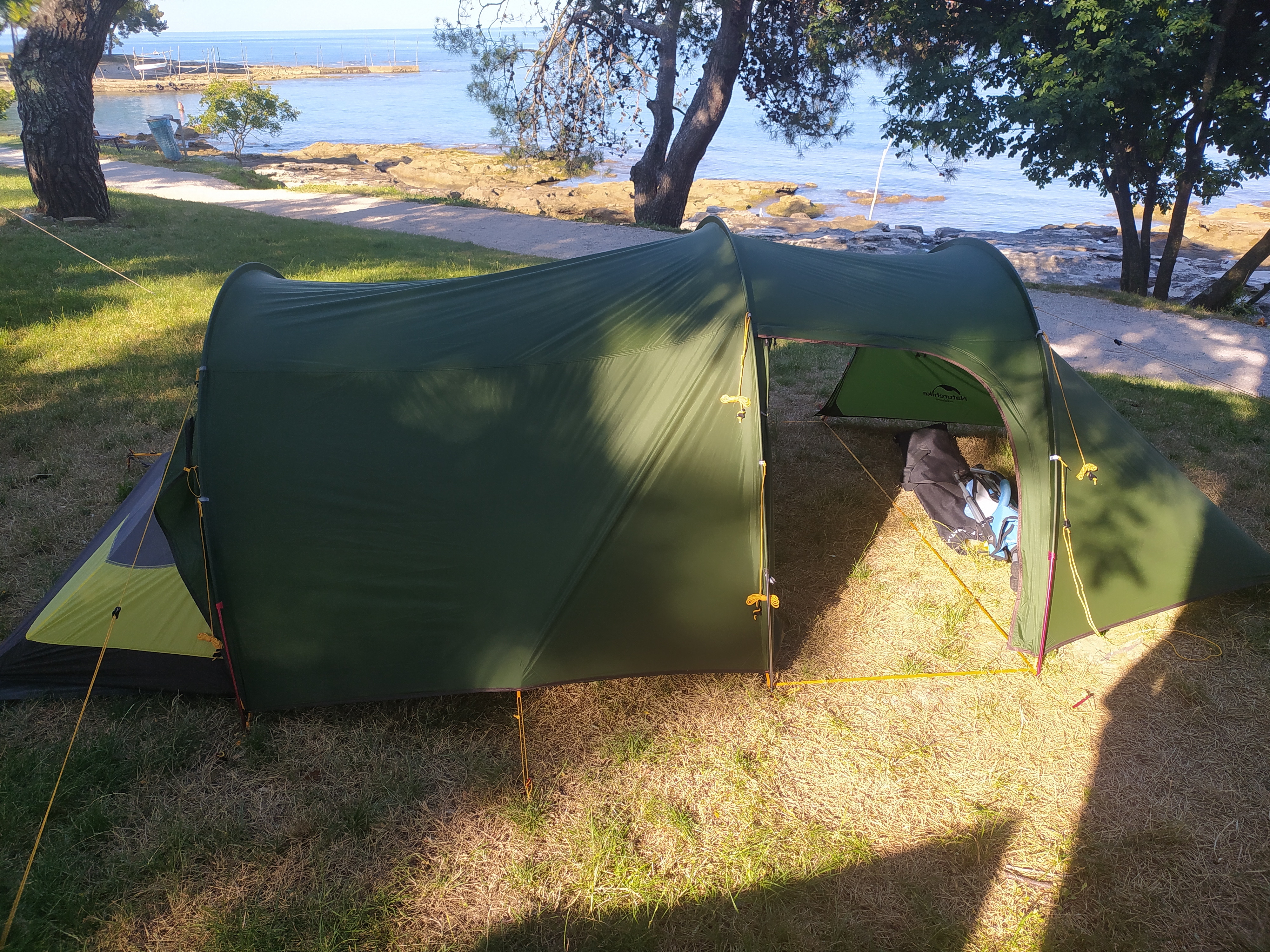 Danke für Deinen Bericht und die zahlreichen Fotos. Ich hatte das Zelt dieses Jahr auf einem Zeltplatz im Altmühltal stehen sehen. Es stand wie eine Eins und sah sehr hochwertig aus. Und das zu einem Naturehike-Preis. Was mich vom Kauf aktuell abhalten würde (neben der Tatsache, dass ich schon ganz schön viele Zelte zu Hause habe), wäre der zu hohe Anteil an nicht verschließbaren Mesh. Das wird einfach bei um die 5 Grad sehr frisch.