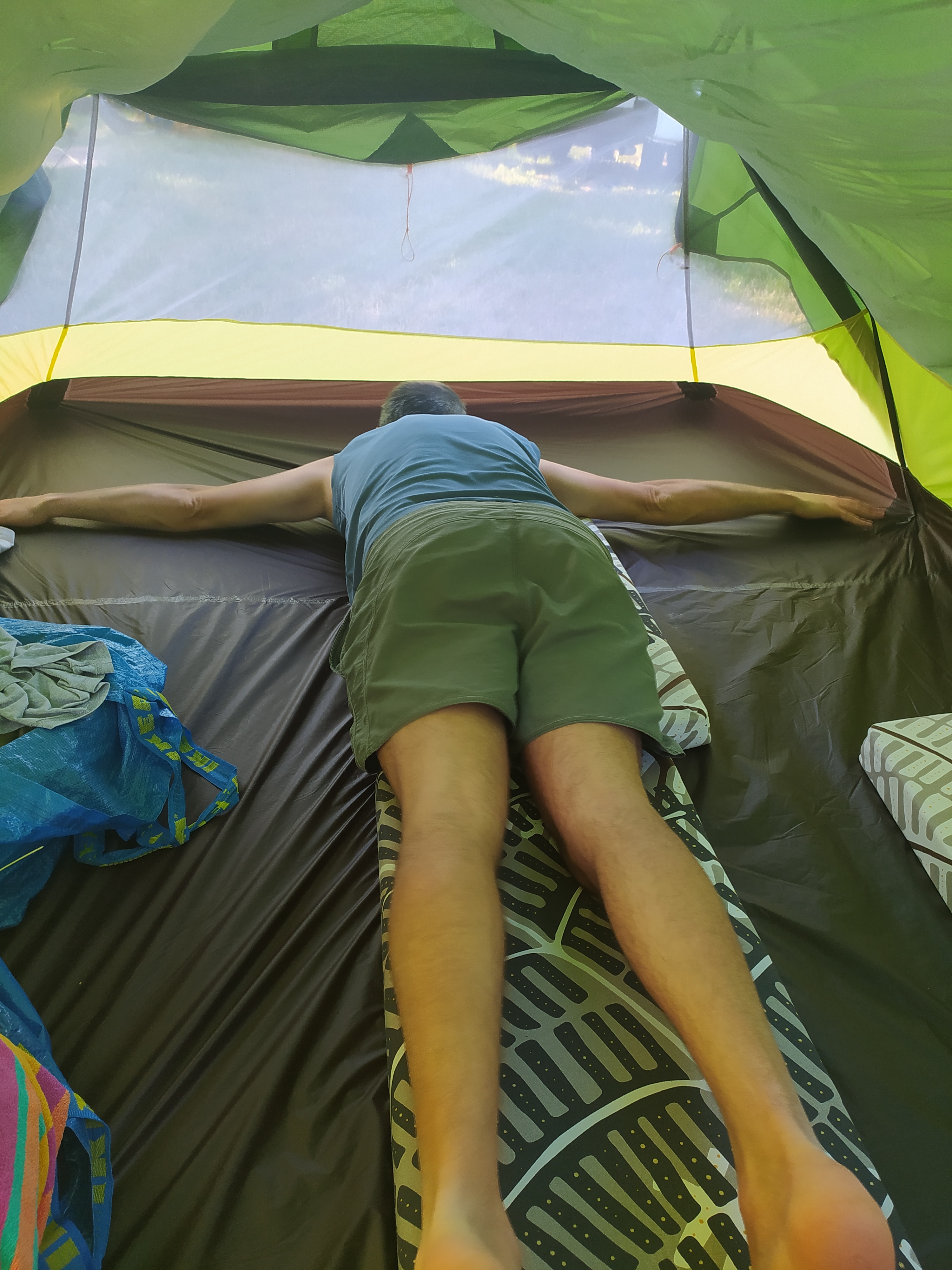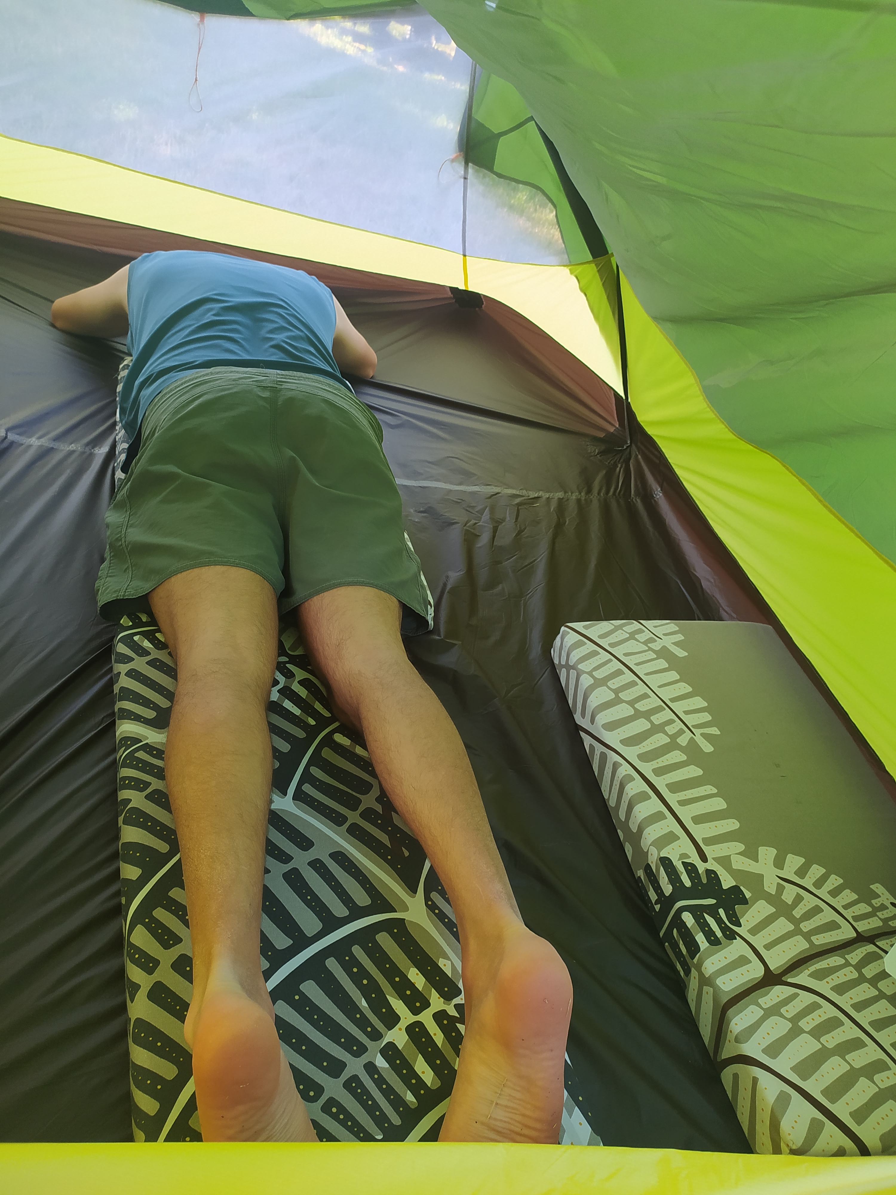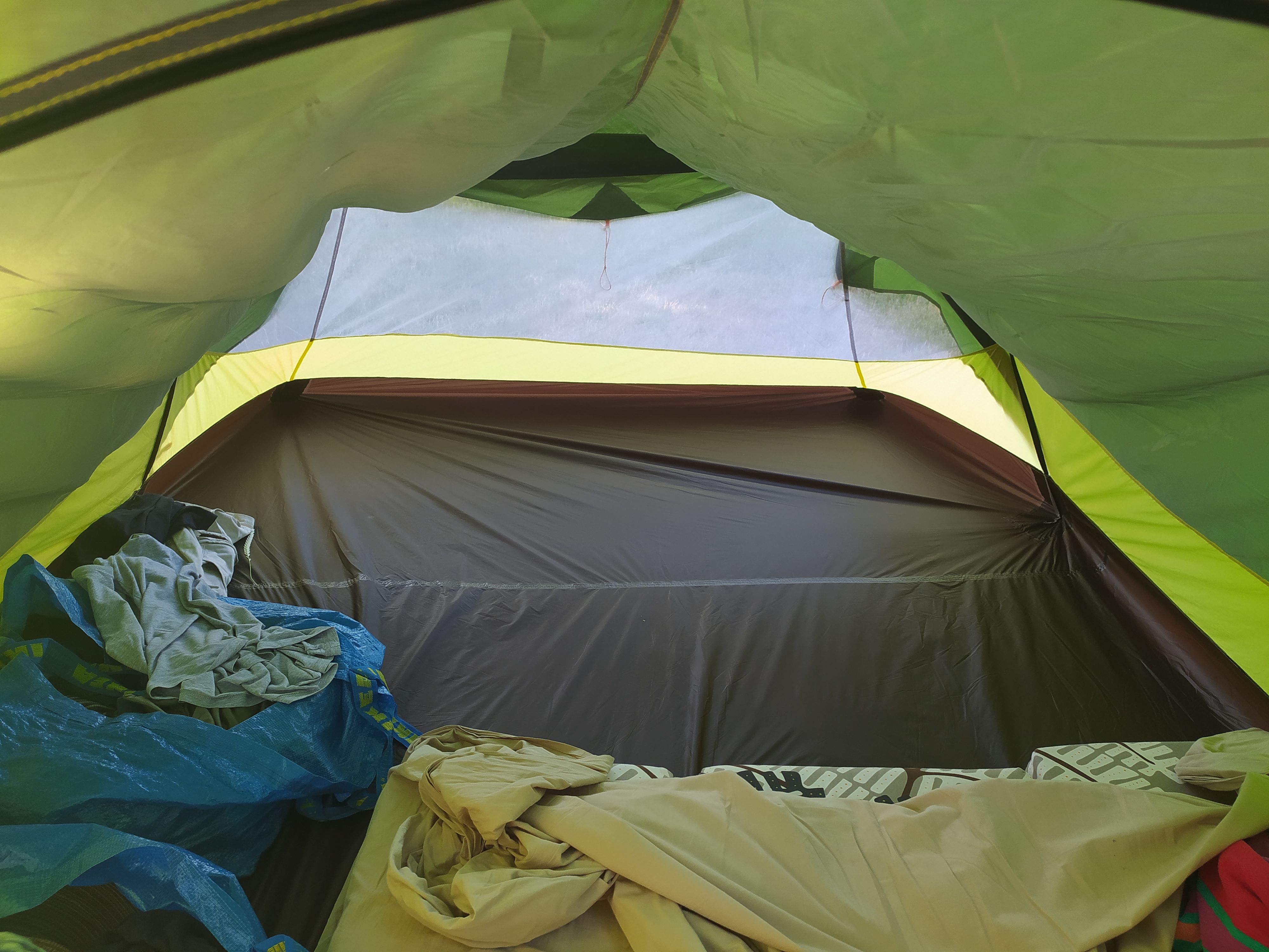 - Das Zelt ist gut gelüftet, auch dank dem hinteren Bereich der hochgeklappt werden kann