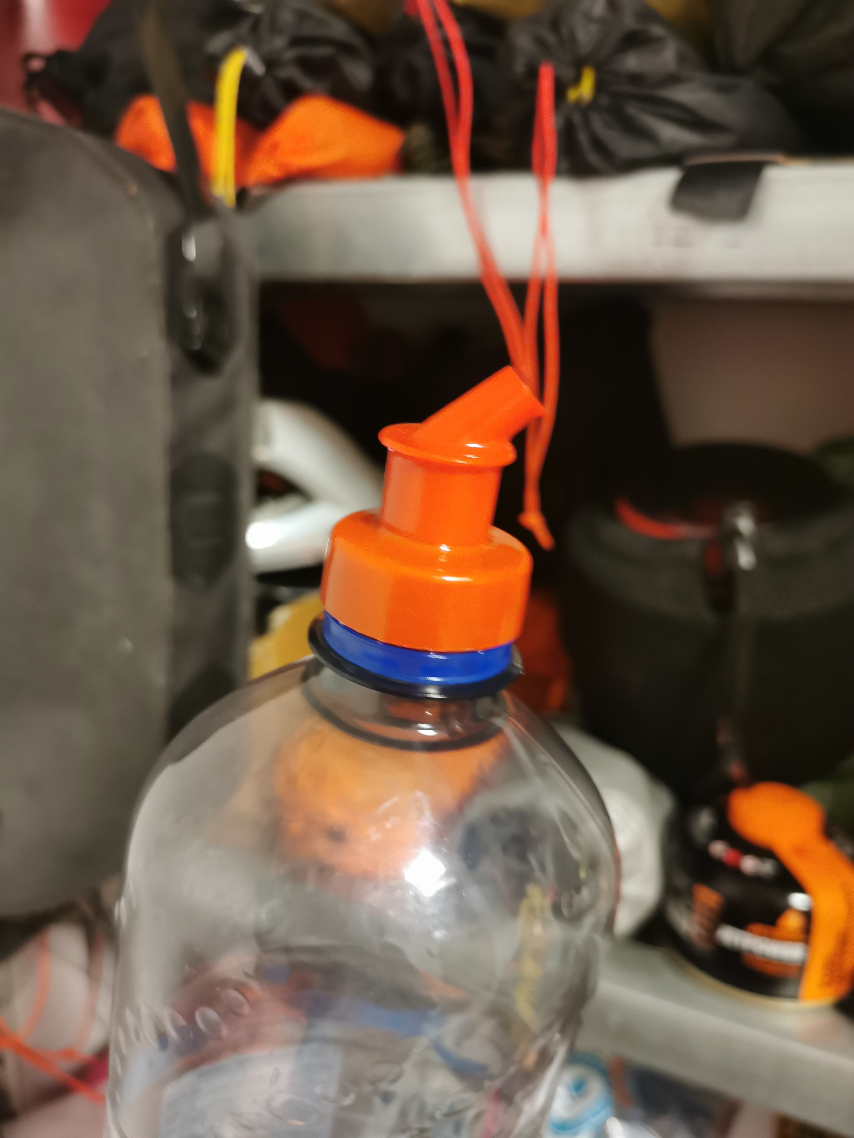 Macht zusammen rund 10 Gramm. Die orangen Verschlussdeckel verfügen über ein Gewinde für PET-Getränkeflaschen (PCO 1810 oder PCO 1881). Puristen nehmen nur das Bidet mit und nutzen dieses auch als Dusche. Und wenn's komfortabler sein darf, dann lässt sich das Ganze mit dem schwarzen Adapter auch als Mini-Dose nutzen und am Rucksack oder Schlüsselbund befestigen.