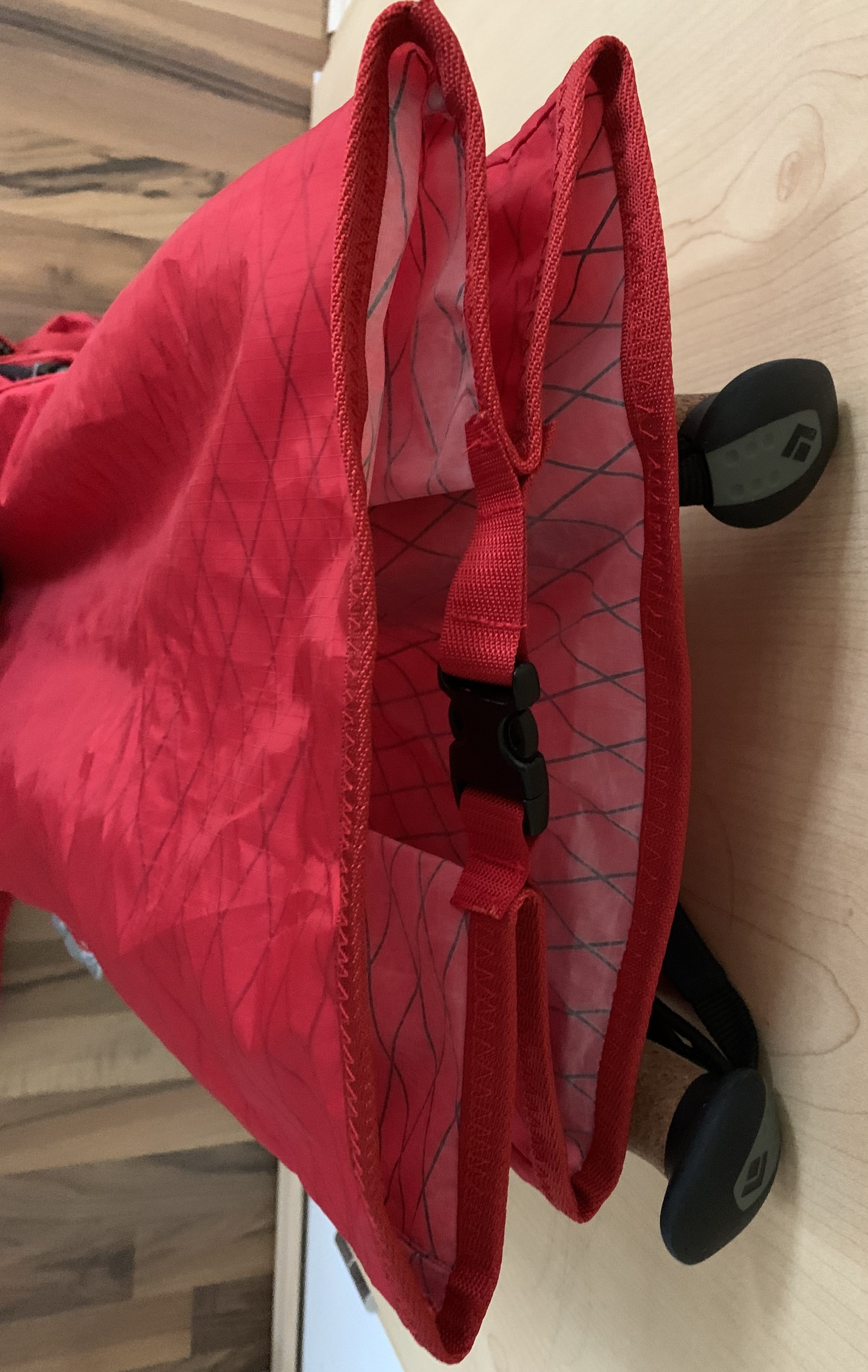 Ansonsten werde ich den Rucksack bei einer kurzen Tour am Wochenende ausprobieren. Bin gespannt, wie mir die Befestigung der Sitzmatte mit der Kordel gefällt. Zusätzlich habe ich nach dem Fraktavorbild auch eine Innentasche vernäht. Kann also mit diesem Prototypen auch testen, ob mir die Sitzmatte innen oder außen besser gefällt. Leider auf Grund des Huftgurtes nicht möglich war eine Befestigung der Sitzmatte mit einem Trapez nach Vorbild des K40. Das würde ich noch ausprobieren, falls mir die Kordellösung nicht gefällt.