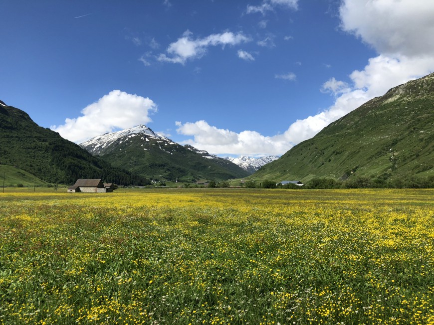 ...dann geht es südwärts. Bis zur ersten Unterkunft sind es 8 km. Flach, sehr flach... Taugt gerade so für ein erstes Aufwärmen. Die Route führt meist entlang der Autobahn A2. Dass diese nicht immer zu hören ist, liegt nicht nur daran, dass sich die Automobilisten an die Geschwindigkeitsbegrenzung halten. Vielmehr liegt es vor allem am Fluss Reuss, welcher kräftig Wasser führt und durch sein lautes Rauschen den Verkehrslärm locker aussticht.