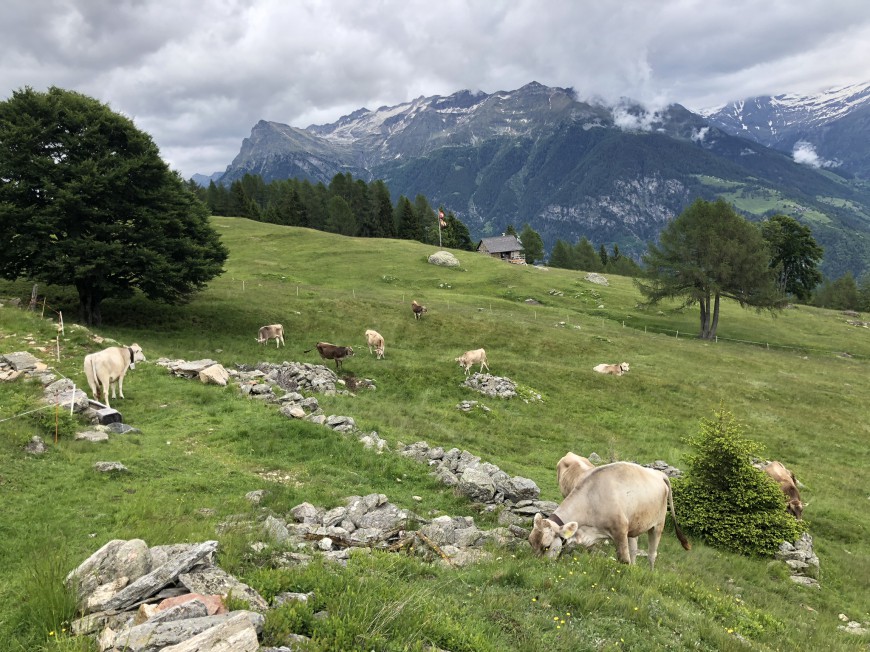 , geht es weiter über den alten Säumerweg und über Kuhweiden immer weiter bergauf.