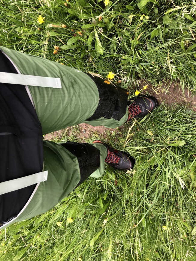 Kurzfristig habe ich noch eine Packung Einweg-Taschentücher und die Trekkingstöcke mit eingepackt. Machte Knappe 7,3 kg Basisgewicht (inkl. Rucksack). Wasser (meist 2 Liter) und Nahrung schlagen mit guten 3 kg zu Buche. Am Körper kommen dann nochmals 2,5 kg dazu: