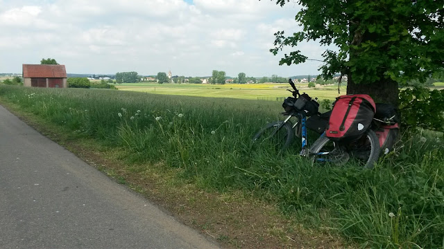 30 km vor Rothenburg begann es zu regnen und zu gewittern. Was tun? Bei warmem Wetter Regensachen anziehen über Klamotten, die staubig und verschwitzt sind und dringend gewaschen gehören? Nicht wirklich prickelnd.