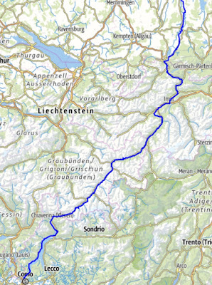 In diesem Jahr war mein erstes größeres Vorhaben eine kombinierte Rad- und Bergtour "im Stil der alten Schule": Mit dem Rad wollte ich von Zuhause an den Comer See fahren, dort auf der Via dei Monti Lariani eine Woche durch die Berge laufen, um anschließend auf dem Drahtesel wieder nach Hause zurück zu kommen.