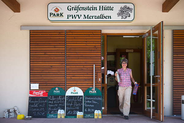 Zufällig heftet sich mein Blick auf einen Pilz am Wegesrand. Ich zeige ihn Falk: Ein Steinpilz! Und je weiter wir laufen, desto mehr können wir finden. Das ist überirdische Fügung, orakelt Falk. Aber davon möchte ich jetzt nichts wissen. Der Pilzsack ist voll, der Tag perfekt. Und als wir nach einer kleinen Rast an einem Weiher in die Gräfensteinhütte in der Nähe der Burgruine Gräfenstein einkehren, ein deftiges Pfälzer Essen mit Weißherbstschorle einnehmen, ist die Stimmung auf dem Höhepunkt. Auch unsere Flaschen können wir hier füllen.