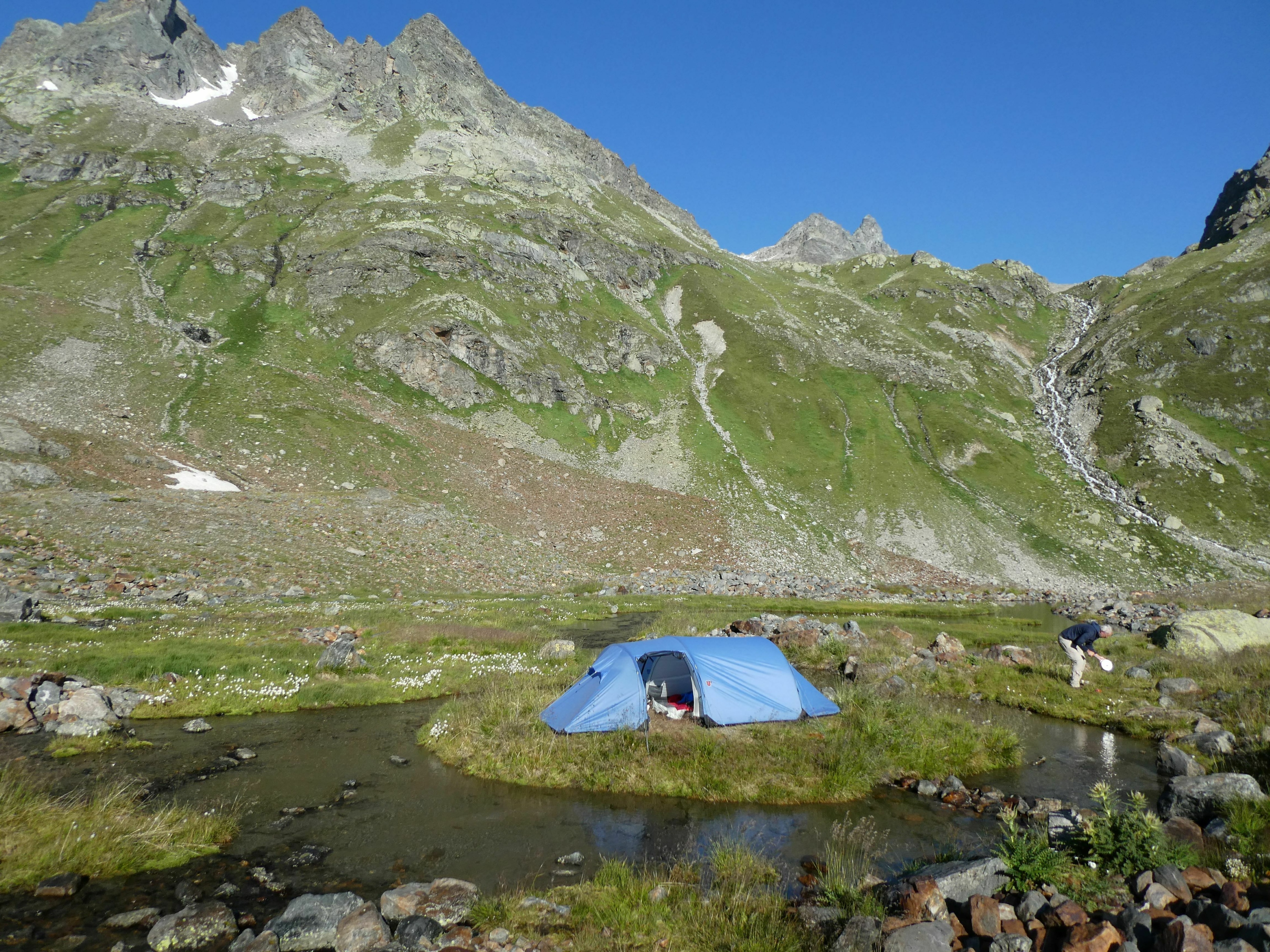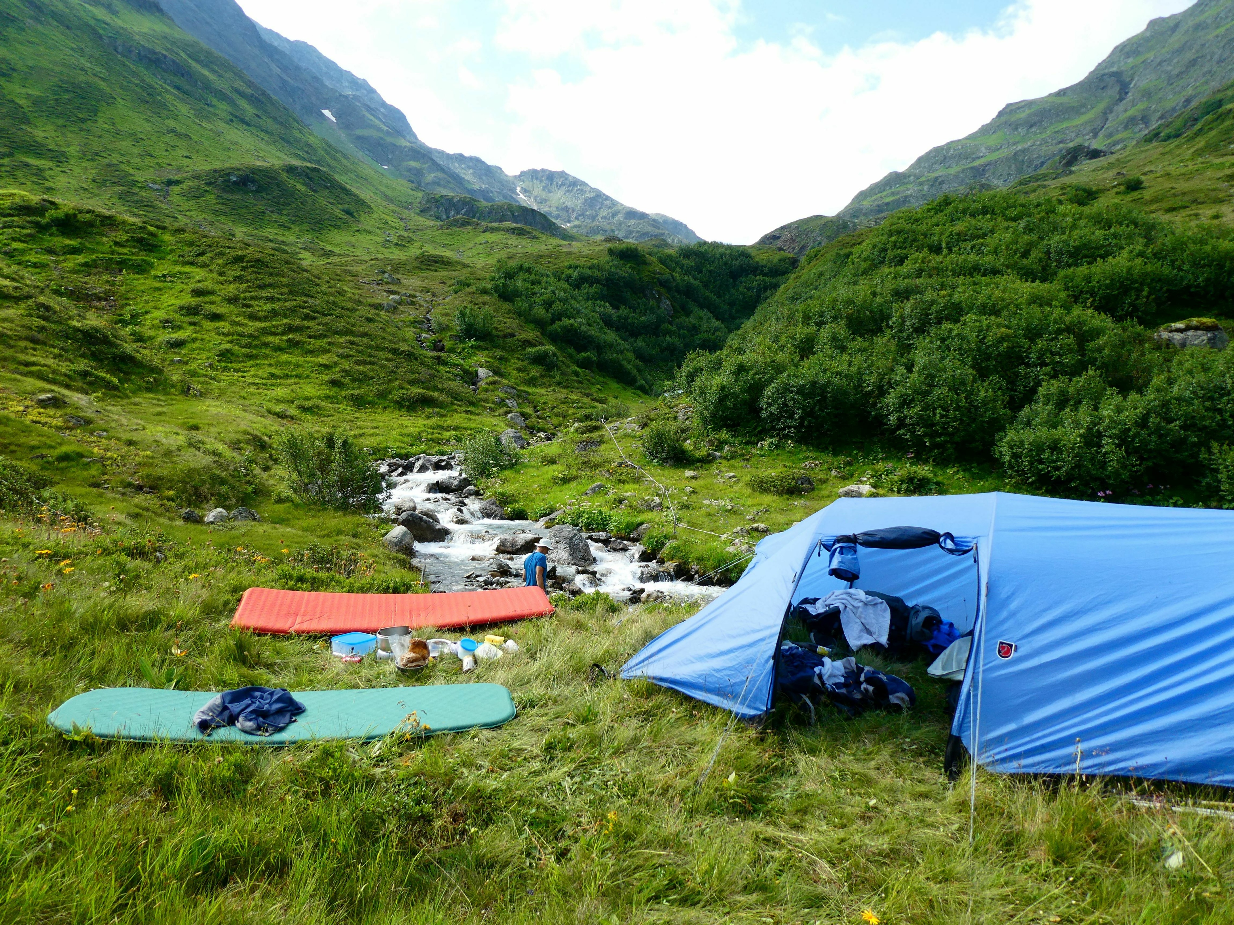 Wir haben grundsätzlich ein Zelt dabei und wollen je nach Wetter, Lust und Laune entweder biwakieren oder in Hütten übernachten. Unseren Recherchen nach ist das Biwakieren im Hochgebirge in der Schweiz nicht verboten, ebenso in Vorarlberg (anders als z.B. in Tirol).