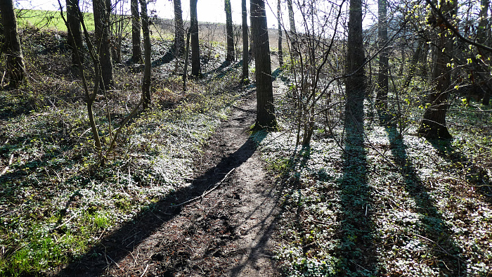 Beim Standardspazierweg von unserem Haus in Vinxel hinunter ins Eichbachtal und hinauf auf die Felder und Wiesen der Kasseler Heide bin ich aufmerksam bis zum Anschlag, nehme den kühl-bewölkten Frühjahrsmorgen intensiv wahr und sehe überall reizvolle Fotomotive.