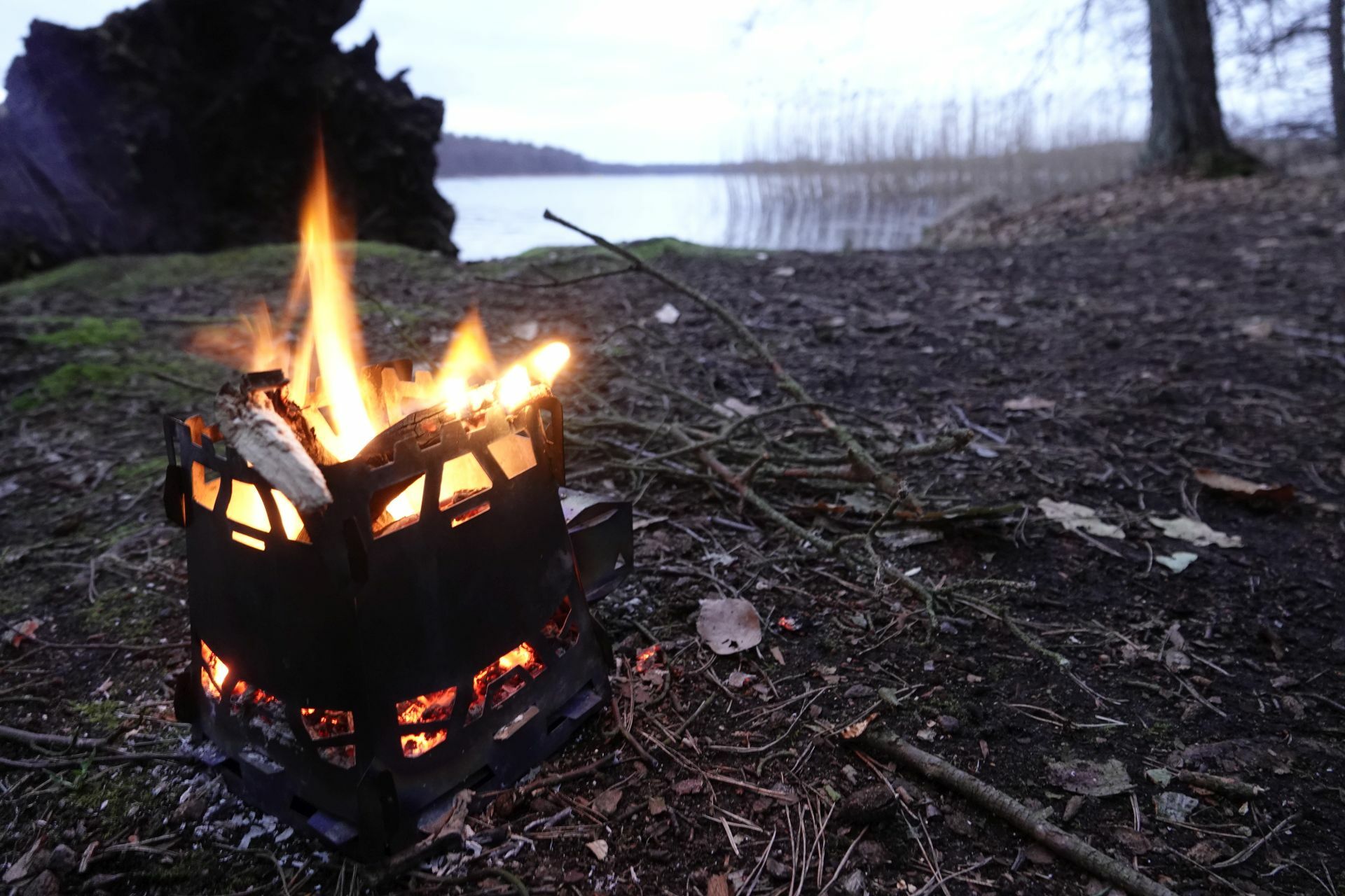 Es gibt hier zwar eine provisorische Anglerbank angelehnt an einen Baum, aber keine offensichtliche Feuerstelle. So begnügen wir uns mit dem Künzi: