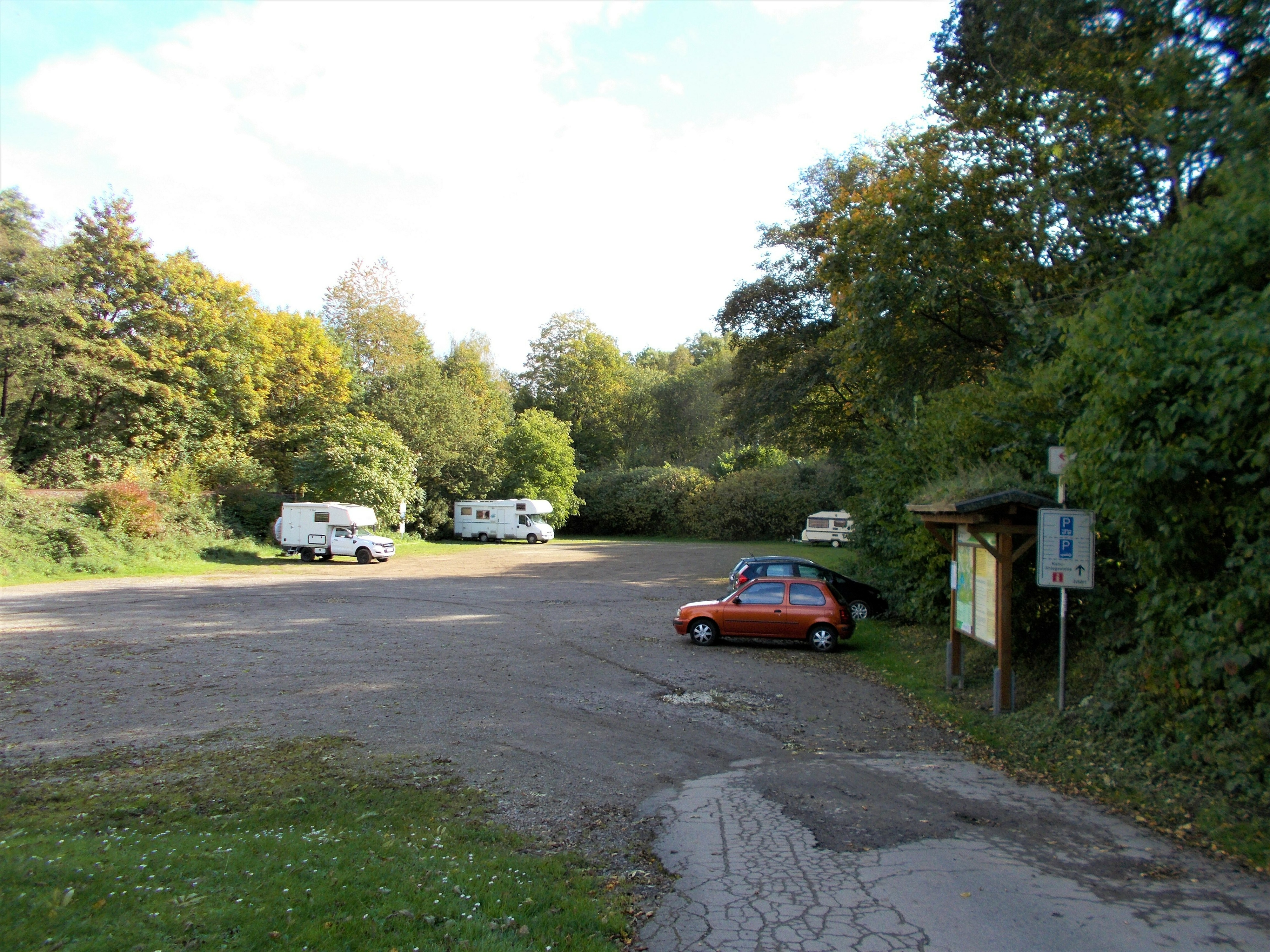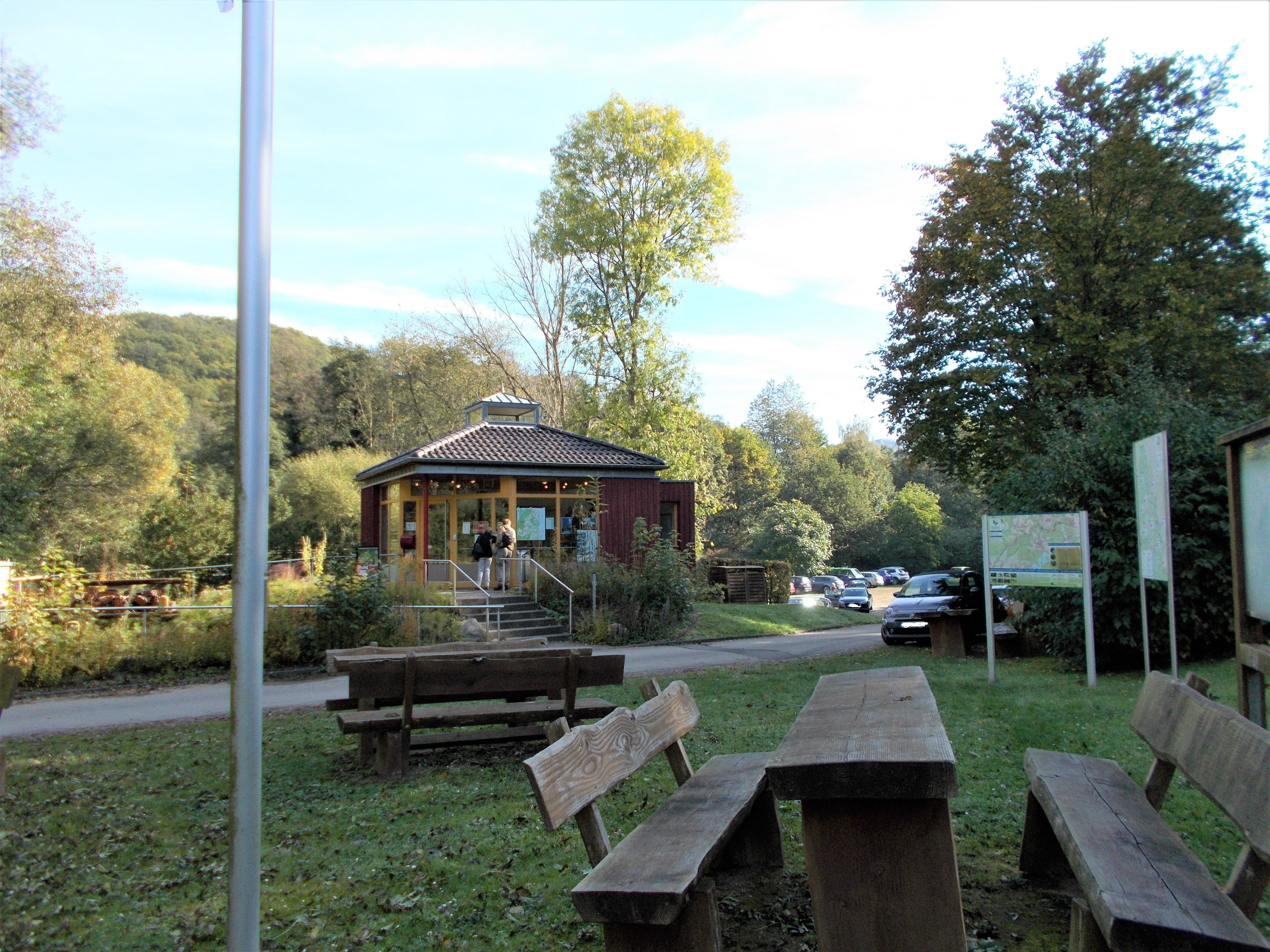 Mein Auto meistert die Hinfahrt ziemlich gut und außer einem Stau und einem verpassten Autobahnwechsel gibt es keine nennenswerten Vorkommnisse. Bereits ca. 85 Minuten vor unserer verabredeten Zeit parke ich mein Auto auf dem Parkplatz am Nationalparktor in Zerkall. Der große Parkplatz ist bereits sehr gut gefüllt und überall schwirren Tageswanderer, Radfahrer und Kanufahrer herum. Ich starte eine kleine Erkundungstour auf dem Gelände