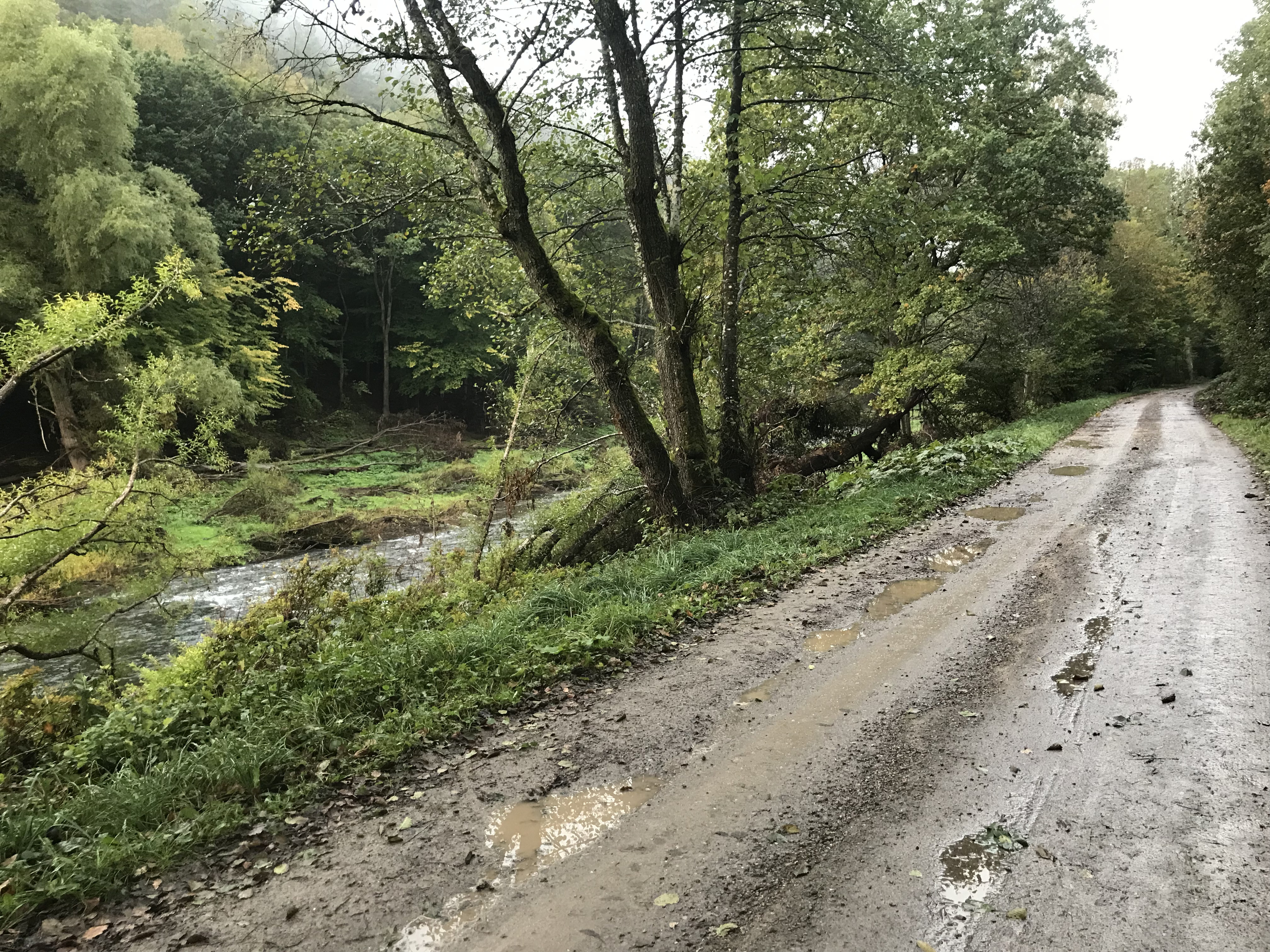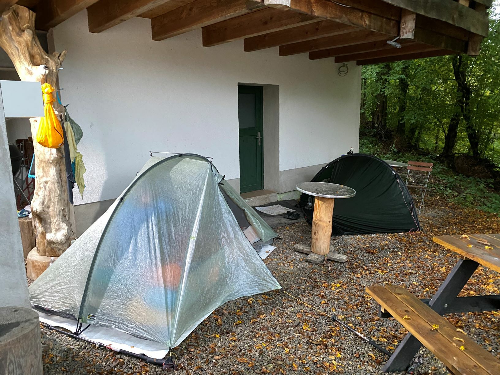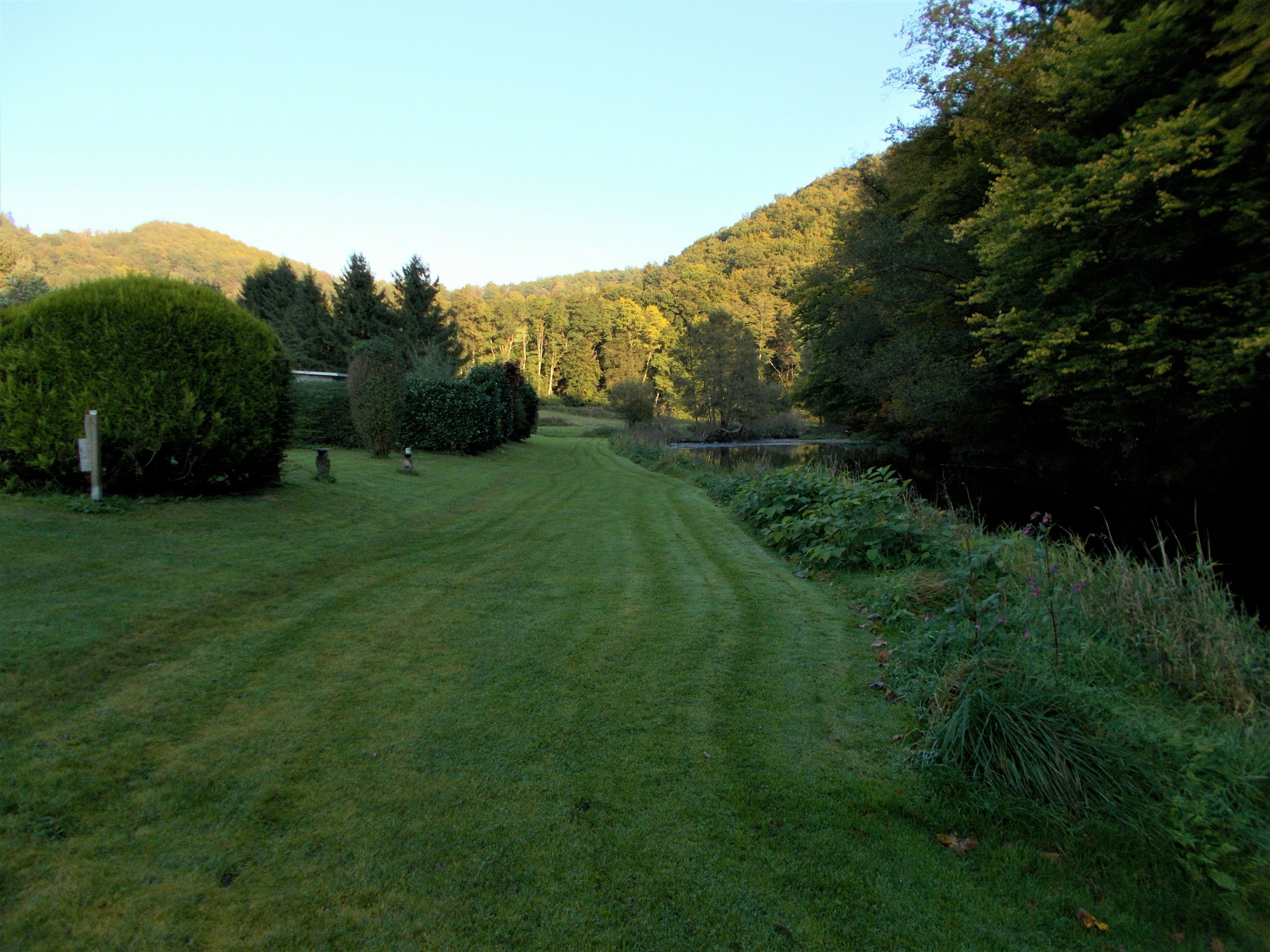 Obwohl es ein Sonntag Nachmittag in den Herbstferien NRW’s ist, ist am Campingplatz absolut nichts los. Wir finden den Inhaber des Platzes, welcher uns die Wahl lässt, die Zelte direkt am Fluss aufzustellen oder auf einem kleinen Stück Schotter/Wiese.
