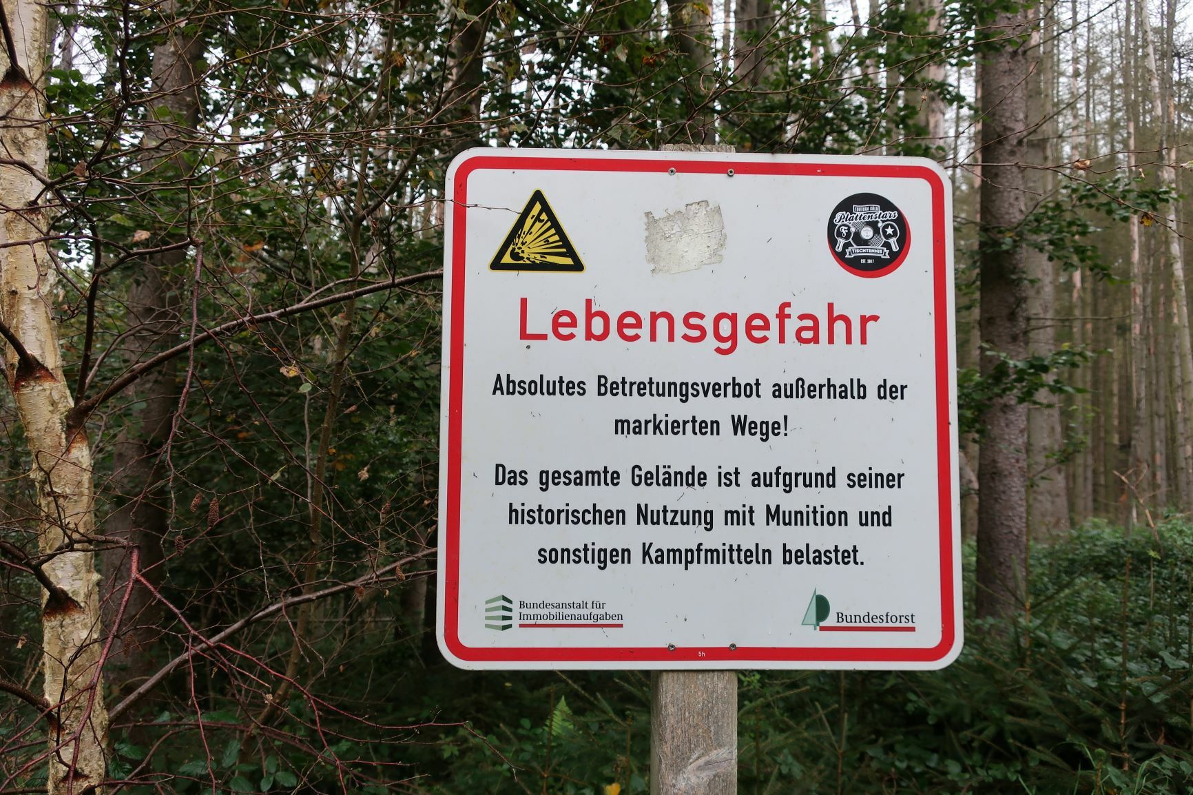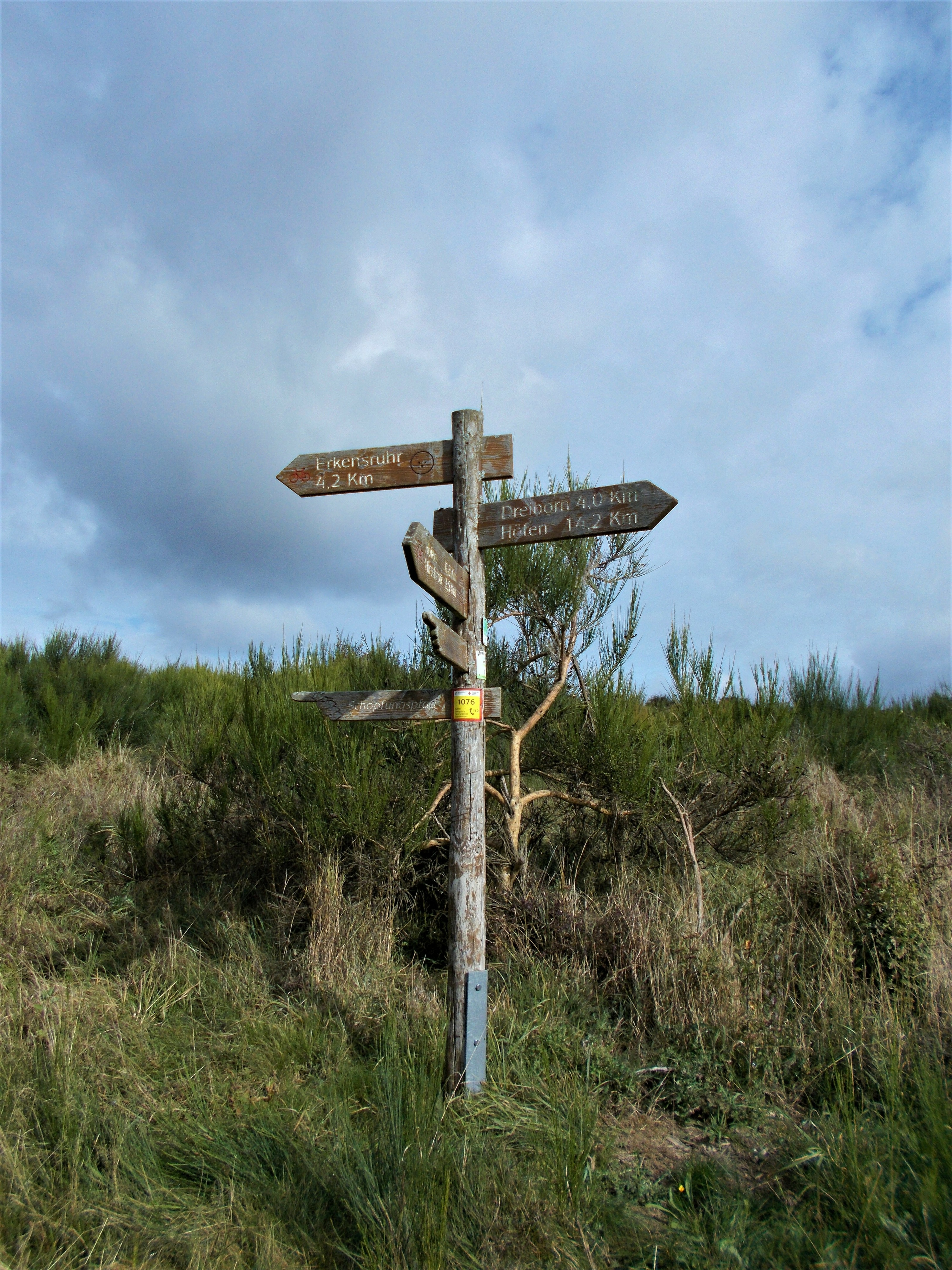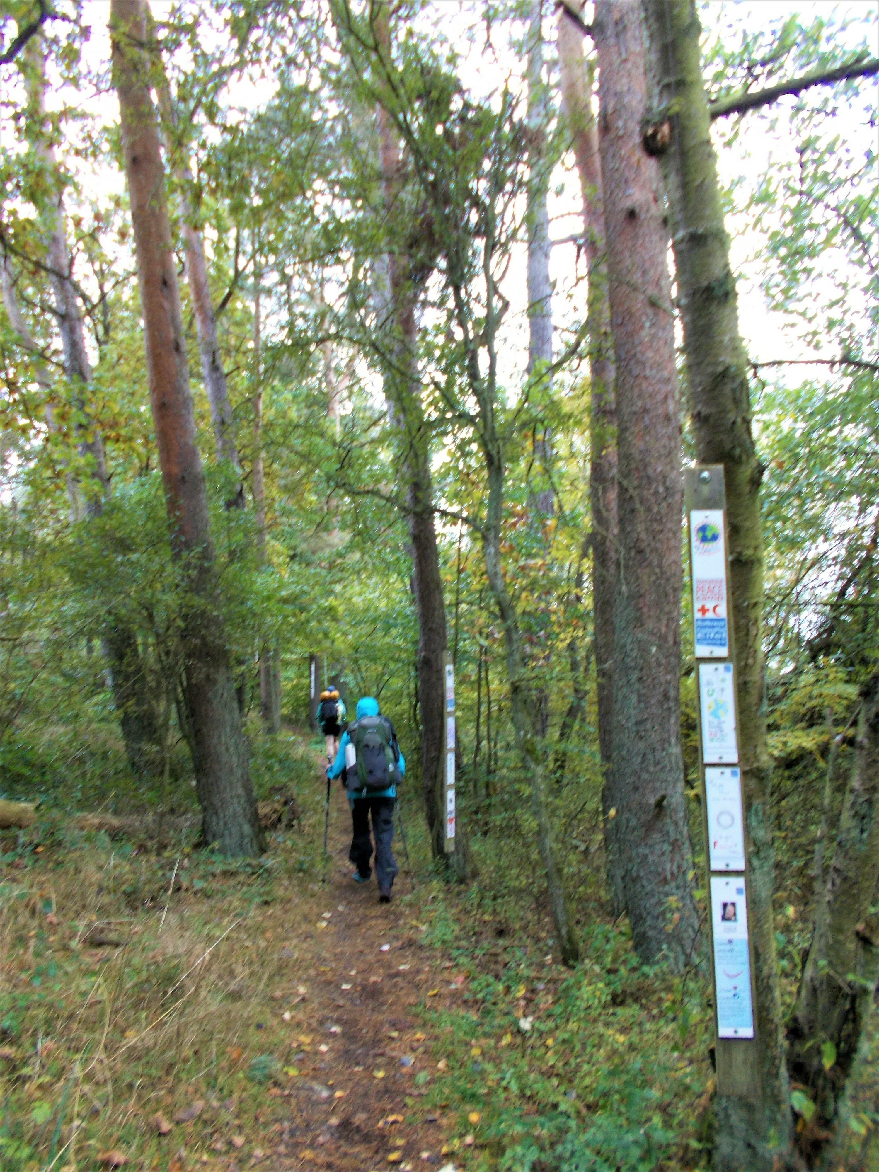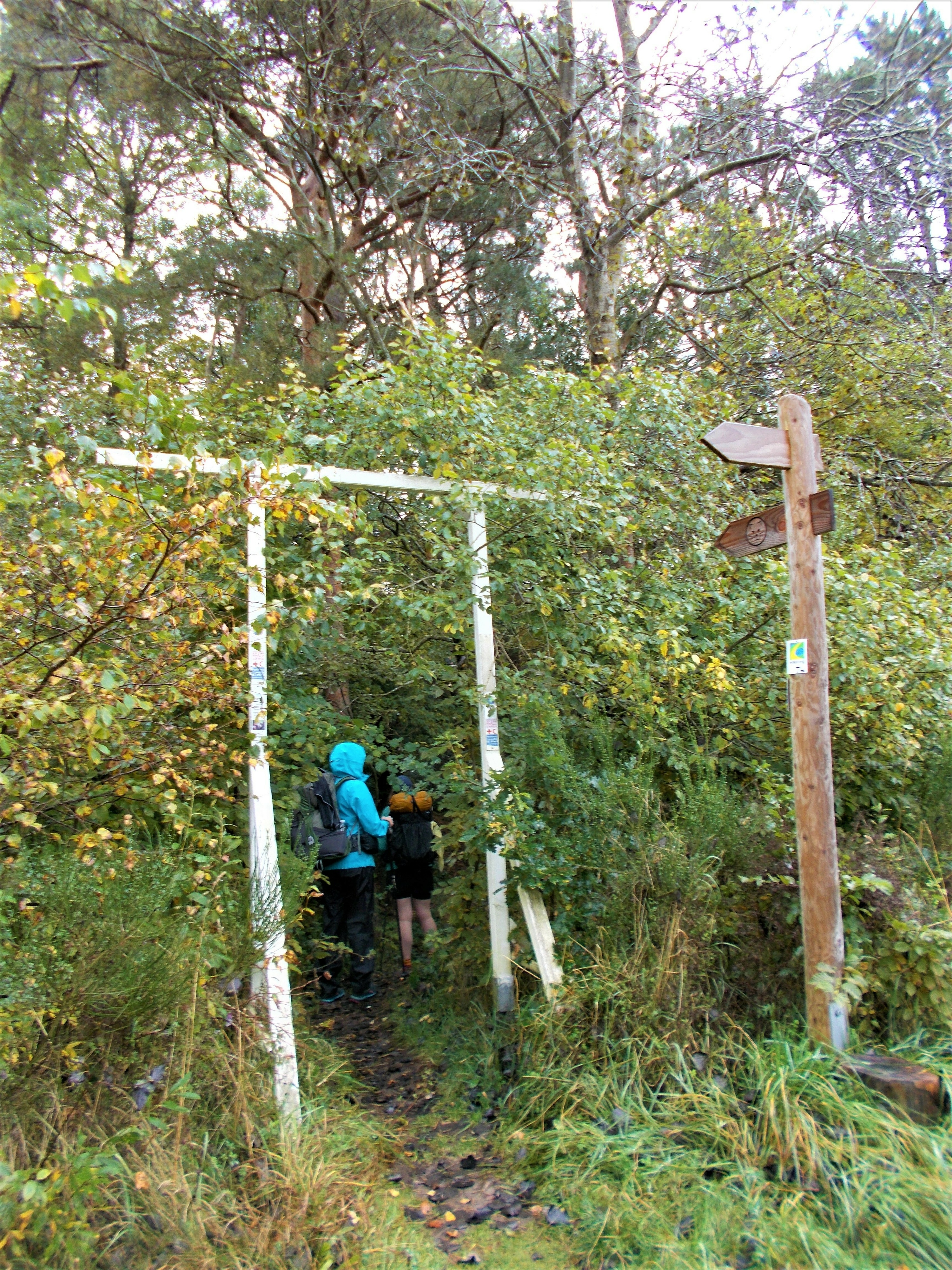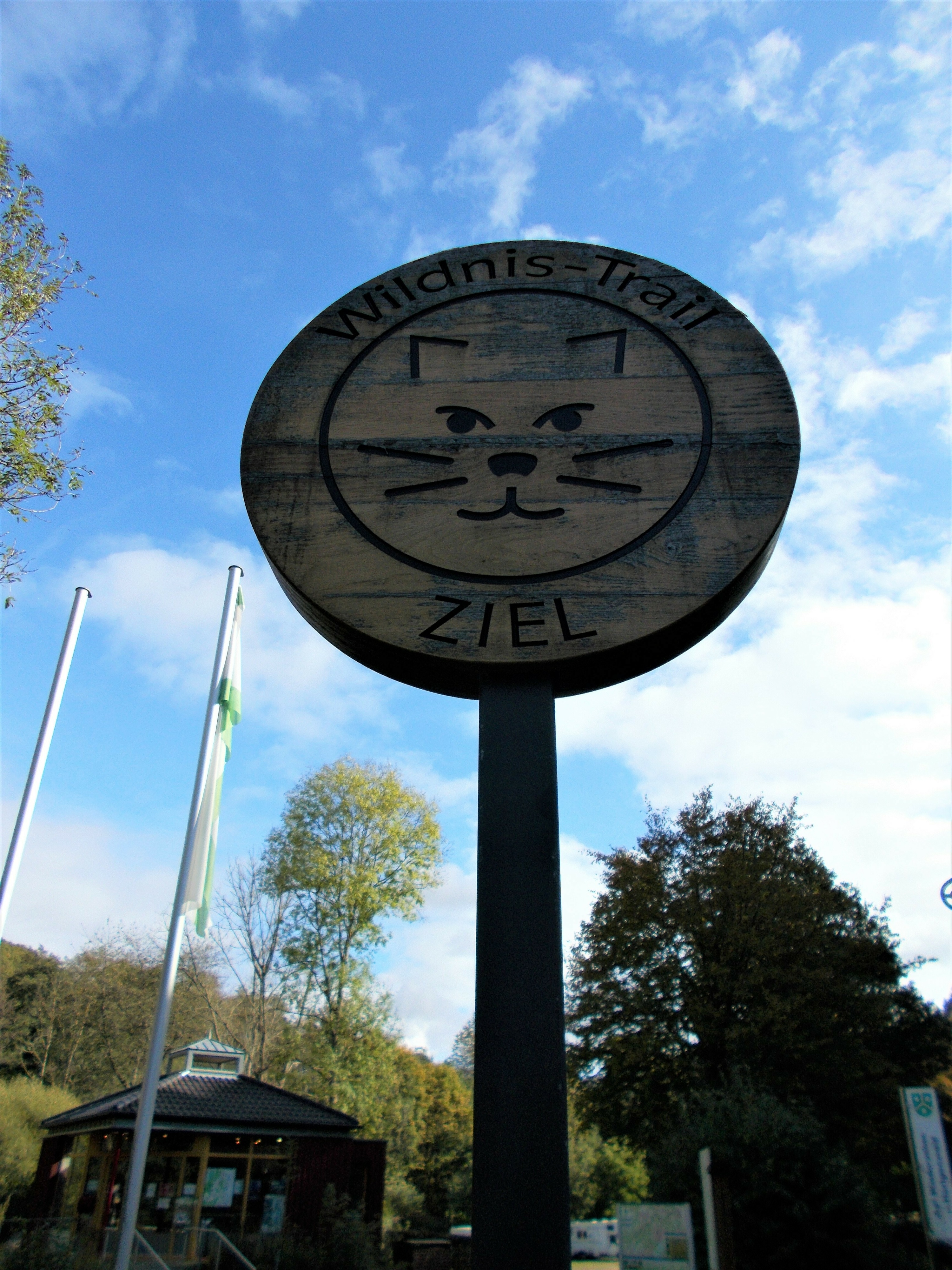 und begutachte ehrfurchtsvoll das Ziel-Schild des Wildnis-Trails. Als ich meine Mini-Tour beendet habe und wieder an meinem Auto bin, trudeln auch C. und S. überpünktlich per Zug ein. Wir laden etwas Gepäck in meinen Kofferraum, welches nicht mit auf Tour kommt. Die Beiden haben nach der Tour noch einen kleinen Städtetrip geplant und so ist es für sie äußerst praktisch, meinen Kofferraum als Zwischenstation zu nutzen. Nach dem Einladen klatsche ich mir noch schnell eine Dröhnung Mücken- und Zeckenschutz auf die Haut, schnappe mir meinen Rucksack und meine Nordic-Walking-Stöcke und verabschiede mich innerlich von meinem geliebten Micra.