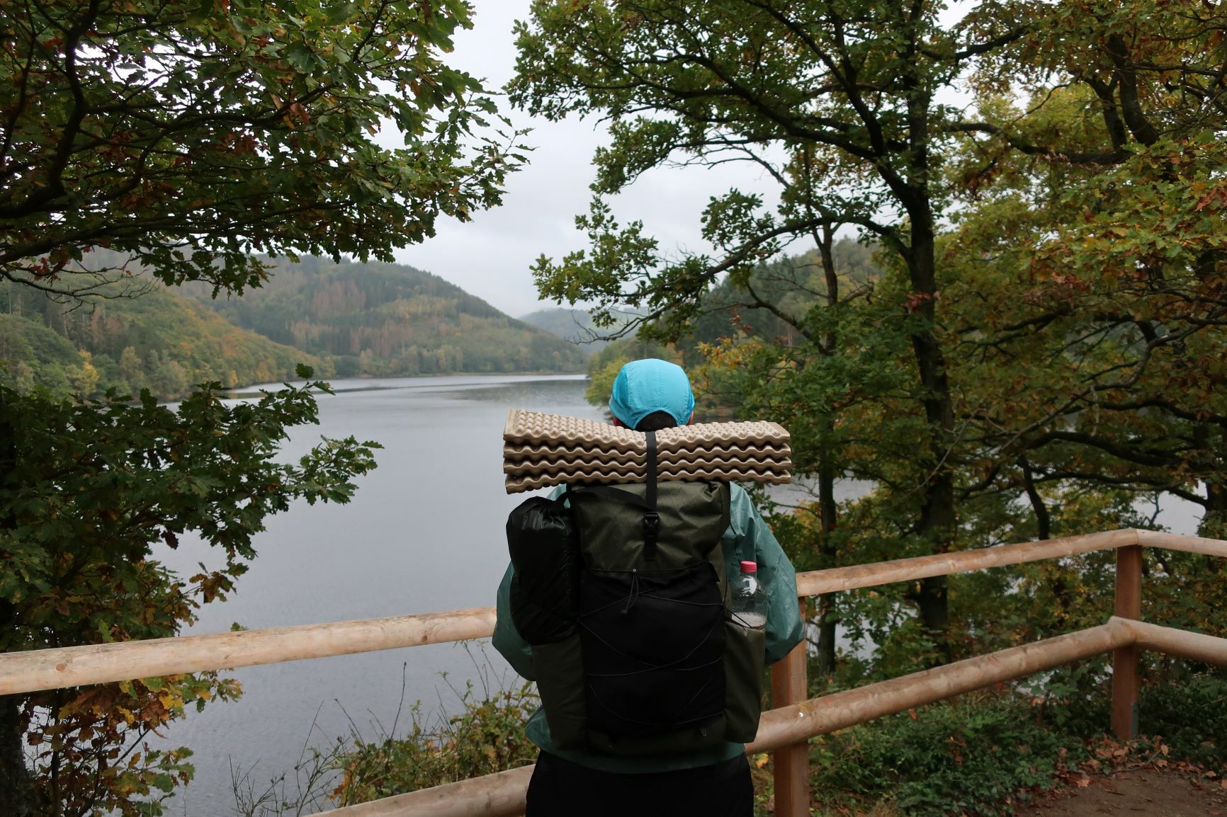 Da es nachts bis ca. 0 Grad werden soll und es auch tagsüber nicht wirklich warm werden soll und es zudem meistens regnen soll, entschied ich mich für dicke Regenbekleidung, einen Regenschirm, zwei Fleece-Pullis, meinen warmen Cumulus-Schlafsack, ein Schlafsack-Inlett und eine zusätzliche Isomatte, um den R-Wert zu erhöhen. Mit einem Basisgewicht von 6,639 Kilo bin ich aufgrund dieser wetterbedingten vielen Extra-Teile sehr zufrieden.