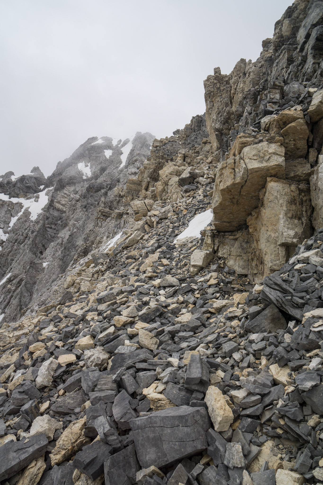 Nö, das ist real so harmlos: T3 im Schutt ist harmlos, die einzige Schwierigkeit besteht in der Orientierung und am Kraftaufwand im Geröll (drei Schritt hoch, zwei zurück). Wenn man fällt, dann bleibt man am Ort liegen und rollt nirgendwo hin. Bei T4 fällt man im Schutt nicht weit, sprich bleibt nach 1m im Dreck liegen - harmlos. Bei T5 dann kann der Flug weiter gehen und man muss aufpassen. Soll bei der Tour heissen: nur die 20 Hm in Rinne #2 sind Absturzgelände, wo man genau hinschauen muss. Und aufgrund der Verhältnisse musste zur Abwechslung auch in der Querung am ersten Aufschwung darüber noch etwas der Pfad sondiert werden, anstelle einfach durch zu wandern.