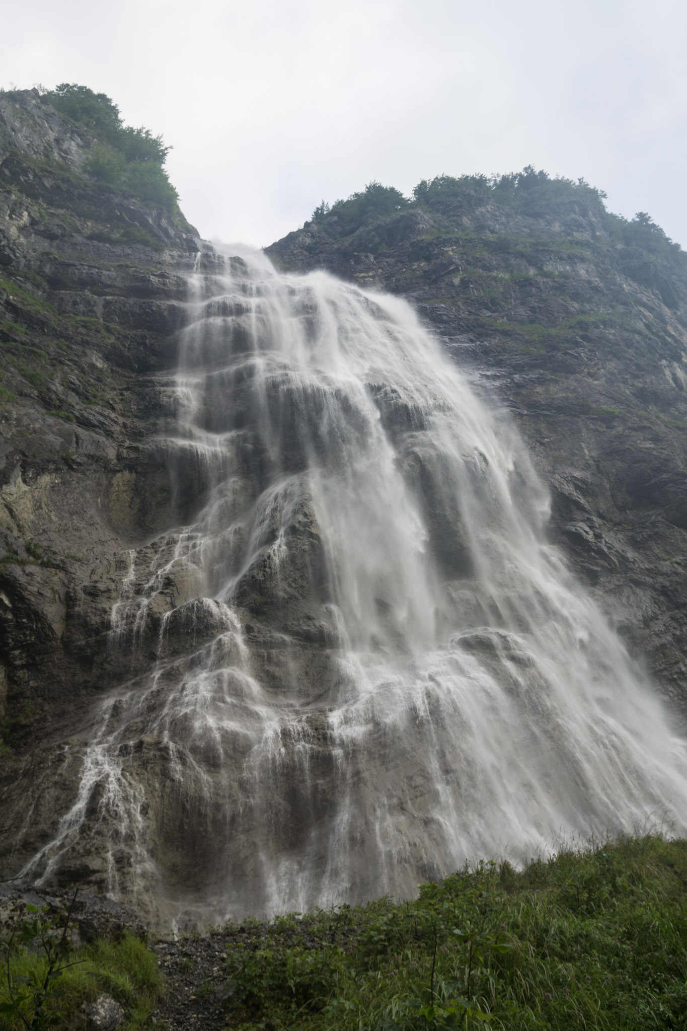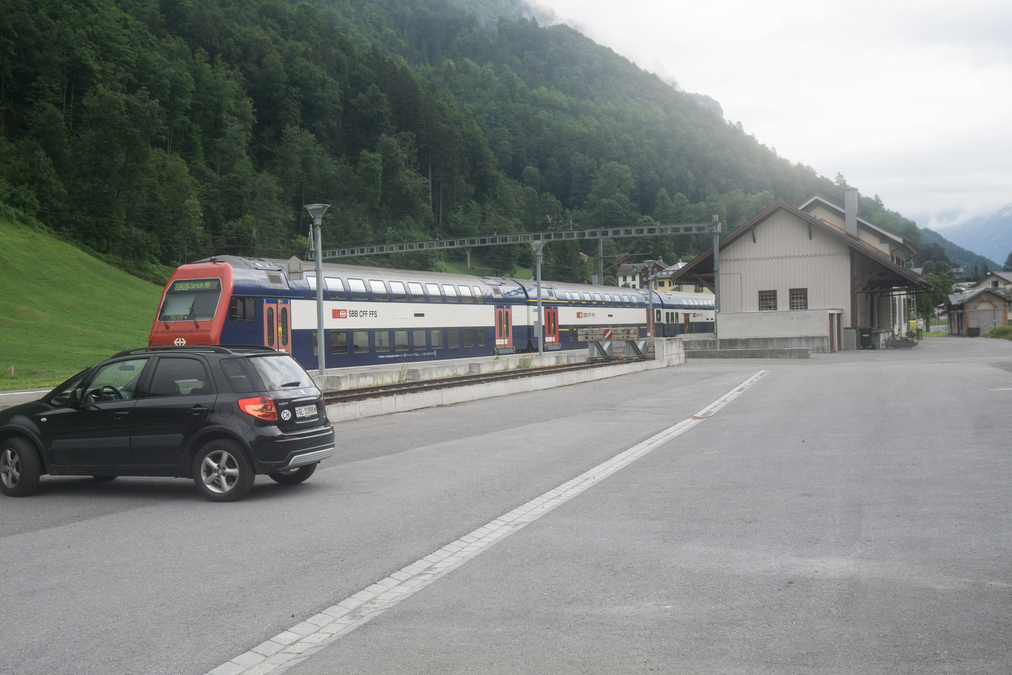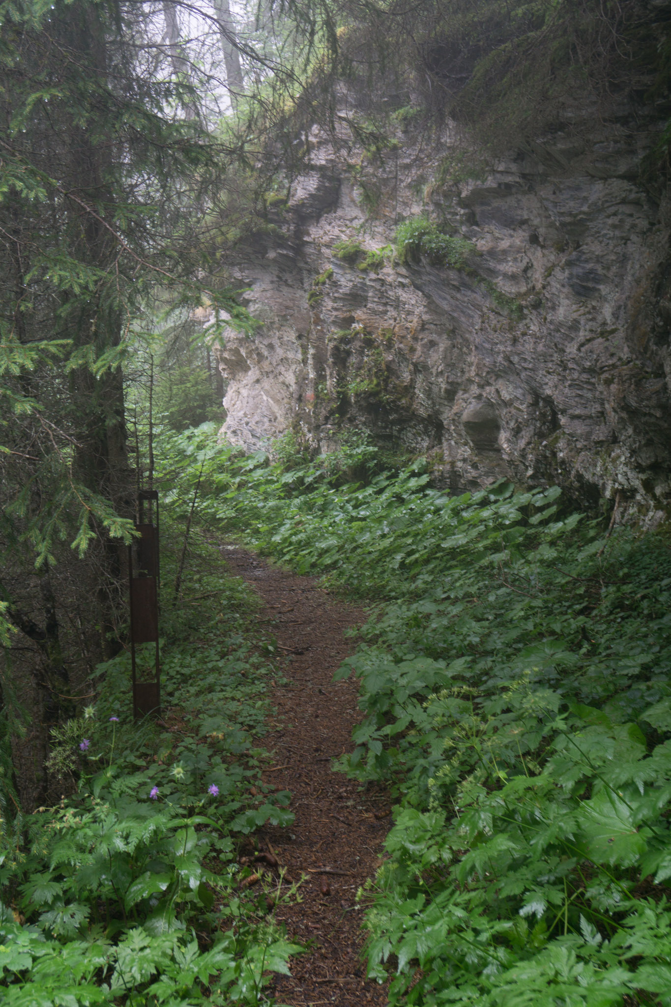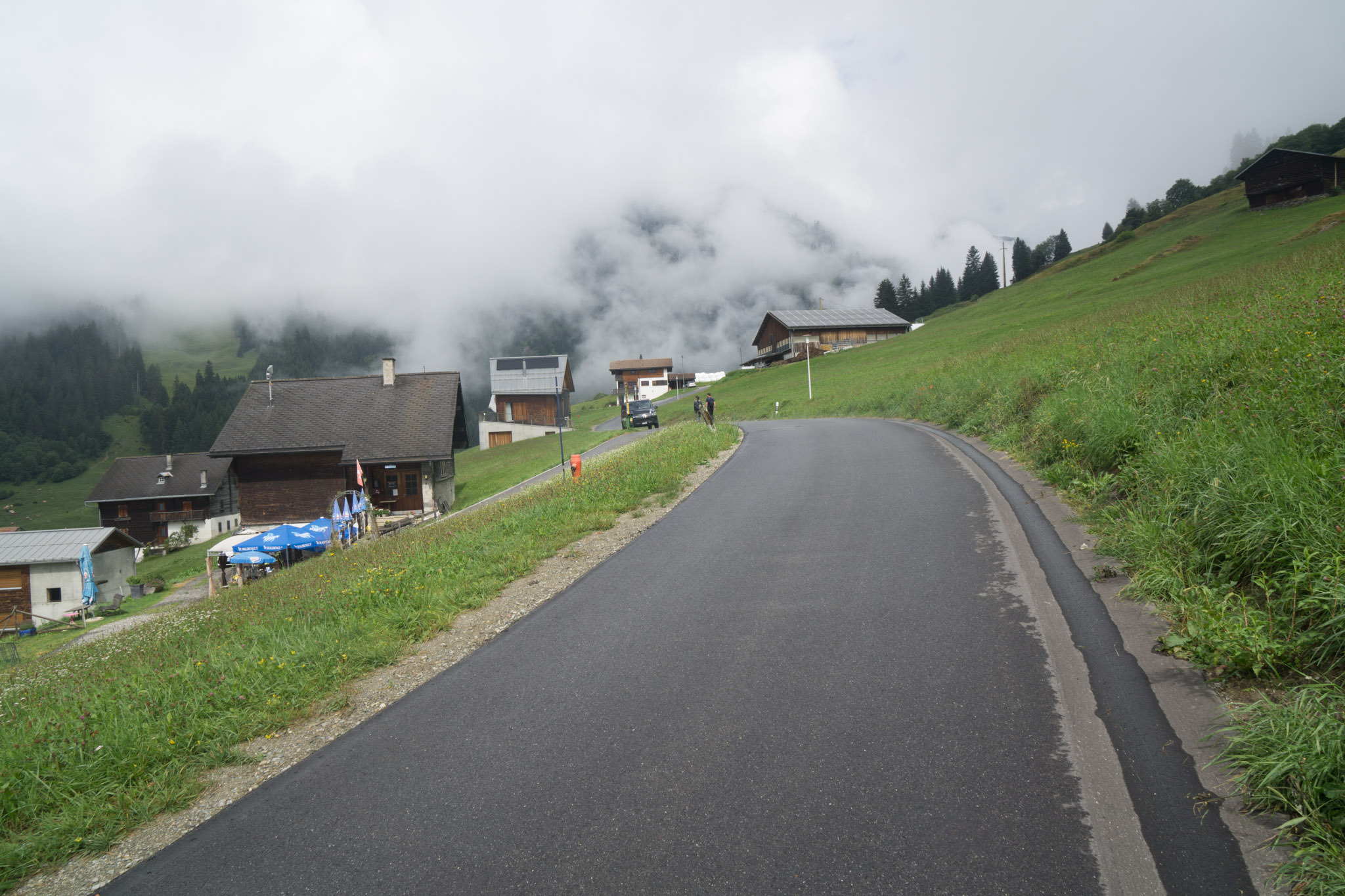 Um 8:25 Uhr geht mein IR nach Chur, und nach 2x Umsteigen lande ich in Pigniu auf 1300m (Panix, Kleinbus ab Ilanz, reservierungspflichtig), und verschwinde in Richtung Panixerpass. Unterwegs hat es geregnet, und hier ist alles ziemlich triefend. Und so stellt es sich als erster fehler heraus, nicht dem breiten Fahrweg über die Alp Ranasca zu gehen, sondern stattdessen den (unausgeschilderten) Weg über Zon. Der ist zwar hübsch, aber leider eben auch über längere Strecken nur ein Pfad, quer durch Wald und Wiesen mit hohem Gras. Als ich bei P1925 bei Spunda Melna den Fahrweg erreiche, ist alles unterhalb vom Knie klatschnass, und ich muss zweimal die Socken und Schuhe auswringen, bis der Füllstand unten halbwegs angenehme Werte angenommen hat. Trocken sind sie einen Tag später auch noch nicht.