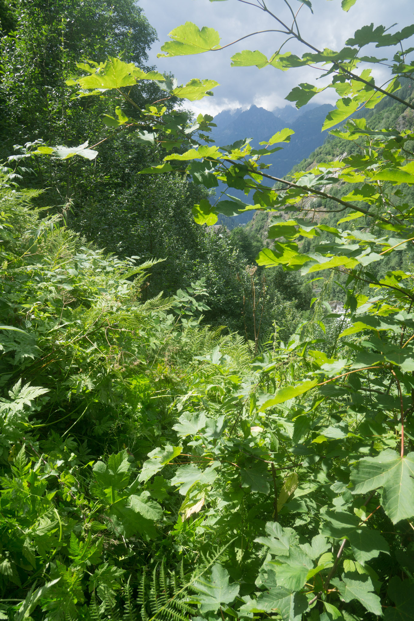 Völlig relaxt geht es erst gegen 11 Uhr per Zug über Arth-Goldau nach Erstfeld, und dann per Bus weiter bis zur Talstation der Golzern Bergbahn hinter Bristen. Dort wechsel ich von Reiseschuhen auf Bergtreter und verstecke diese zusammen mit O-Saft, Bier und Wechselsocken an einer schattigen Stelle in Wegesnähe.