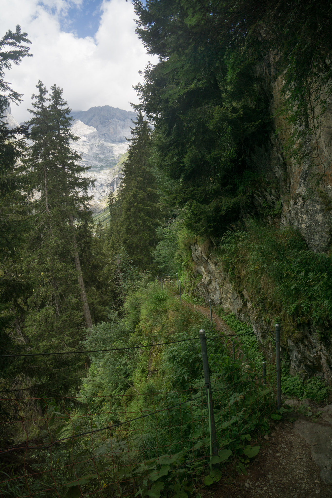 Links der Düssi, im Vordergrund der Aufstieg ins Brunnital mit dem Brunnibach, der hier recht spektakulär über den Felsen runter fällt.