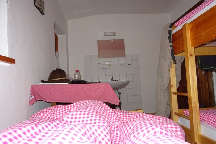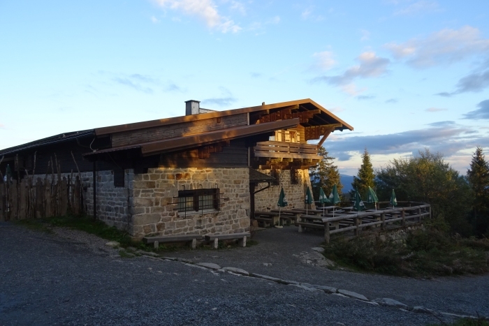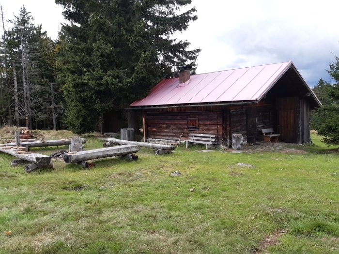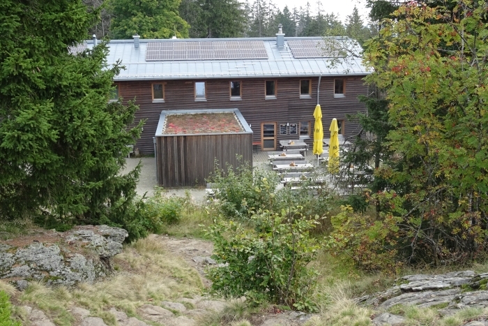 In der Hütte melde ich mich an, der Wirt zeigt mir mein Zimmer und ist froh, dass ich kein Abendessen will da er bereits die Küche reinigt. Ich breite mich erst mal in der kleinen Kammer, mit drei Betten und einem Waschbecken mit fließendem kalten Wasser, aus. Danach gehe ich in die Gaststube und trinke ein Weizen, wobei ich mit einer Wanderin ins Gespräch komme die seit dem 6. September von Marktredwitz aus auf dem Goldsteig unterwegs ist und bis Passau will. Nächstes Jahr will sie den tschechischen Goldsteig, Zlatá Stezka, wandern und ich empfehle ihr meinen Bericht davon.