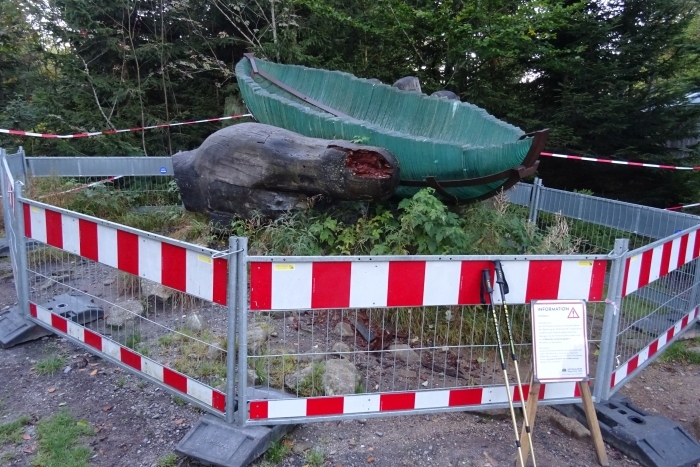 Das gläserne Schiff selbst ist abgesperrt, weil die es haltende, hölzerne Hand morsch ist.