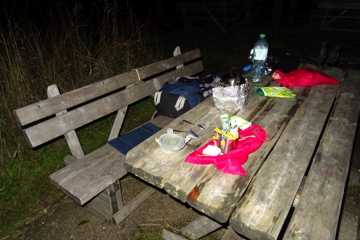 Beim ersten Morgengrauen stehe ich auf, packe zusammen und stiefle los, weil ich heute eine lange Strecke vor mir habe.