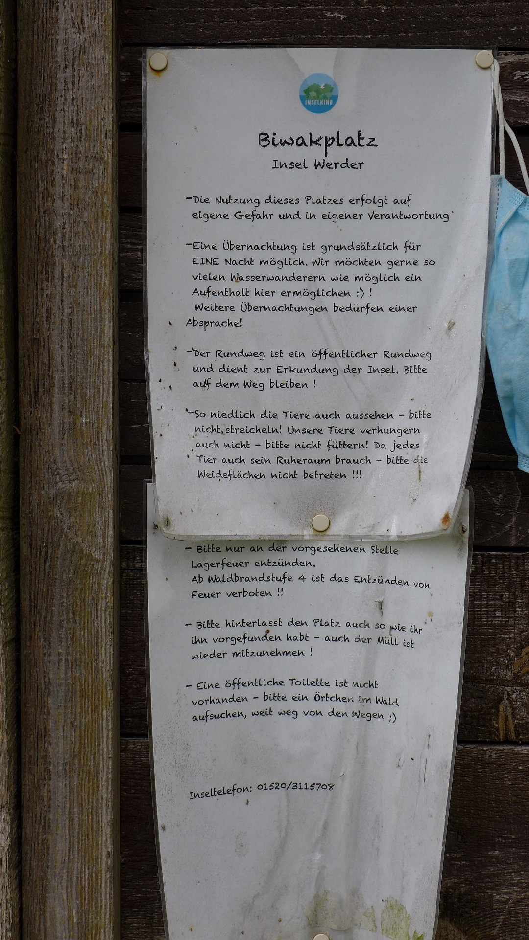 Die Beschränkungen wurden ab Mai 2022 zusätzlich verschärft. Man darf den Rheinsberger Rhin nur mit Doppelpaddeln befahren, nur stromab, man darf kein Ufer betreten usw. usf. Man darf ihn nur vom 15. Juni bis zum 31. Oktober eines jeden Jahres in der Zeit von 9 bis 19 Uhr befahren, und Einsetzen ist nur im Zeitfenster von 9 - 12 Uhr erlaubt. Zudem benötigt man seit diesem Jahr einen Befahrungsschein. Damit möchten die Behörden sicherstellen, dass nur noch maximal 20 private Paddelboote am Tag den Rhin befahren. Die Verleiher dürfen hingegen bis zu 150 Boote je Tag losschicken.