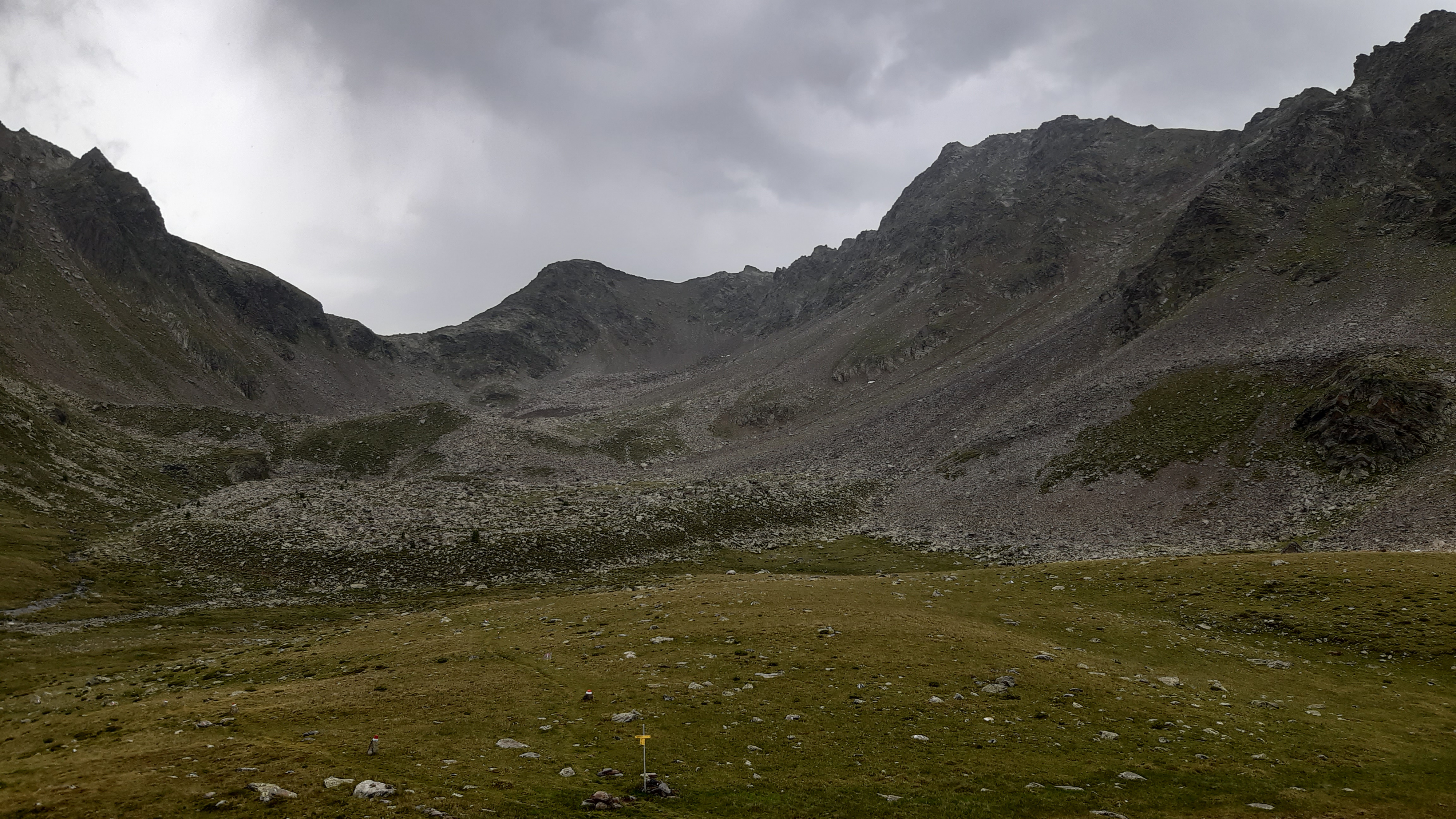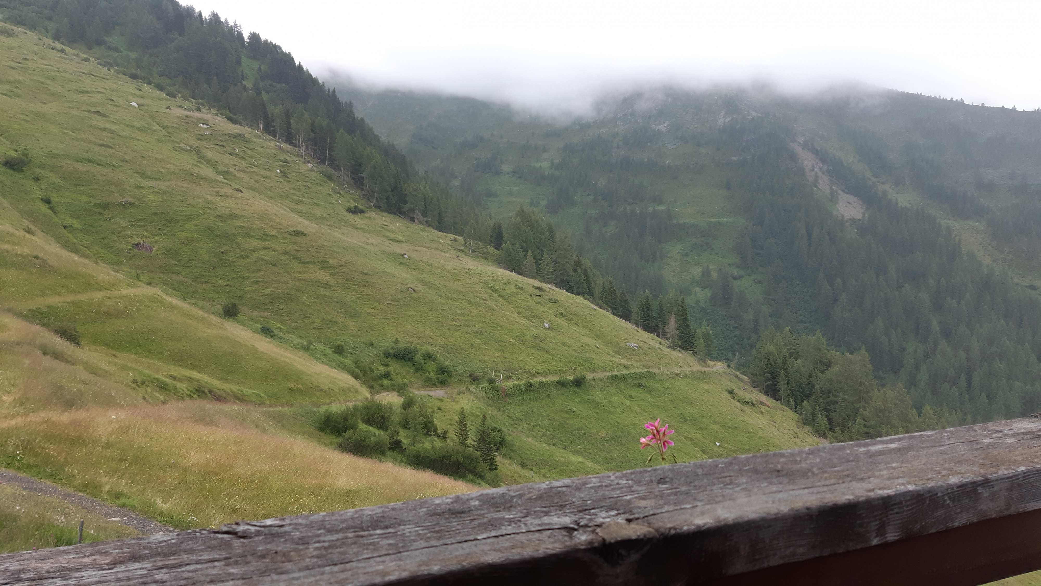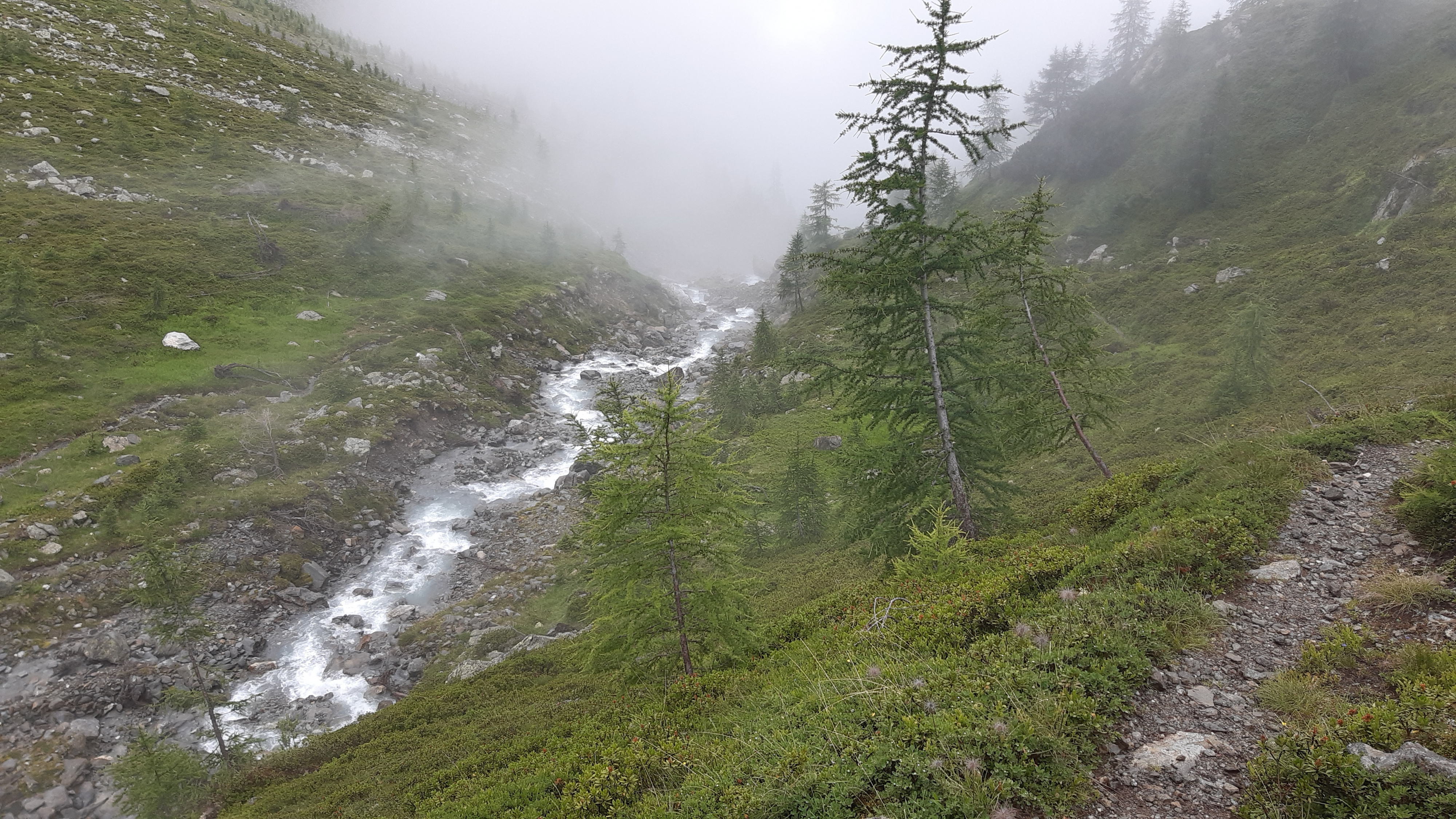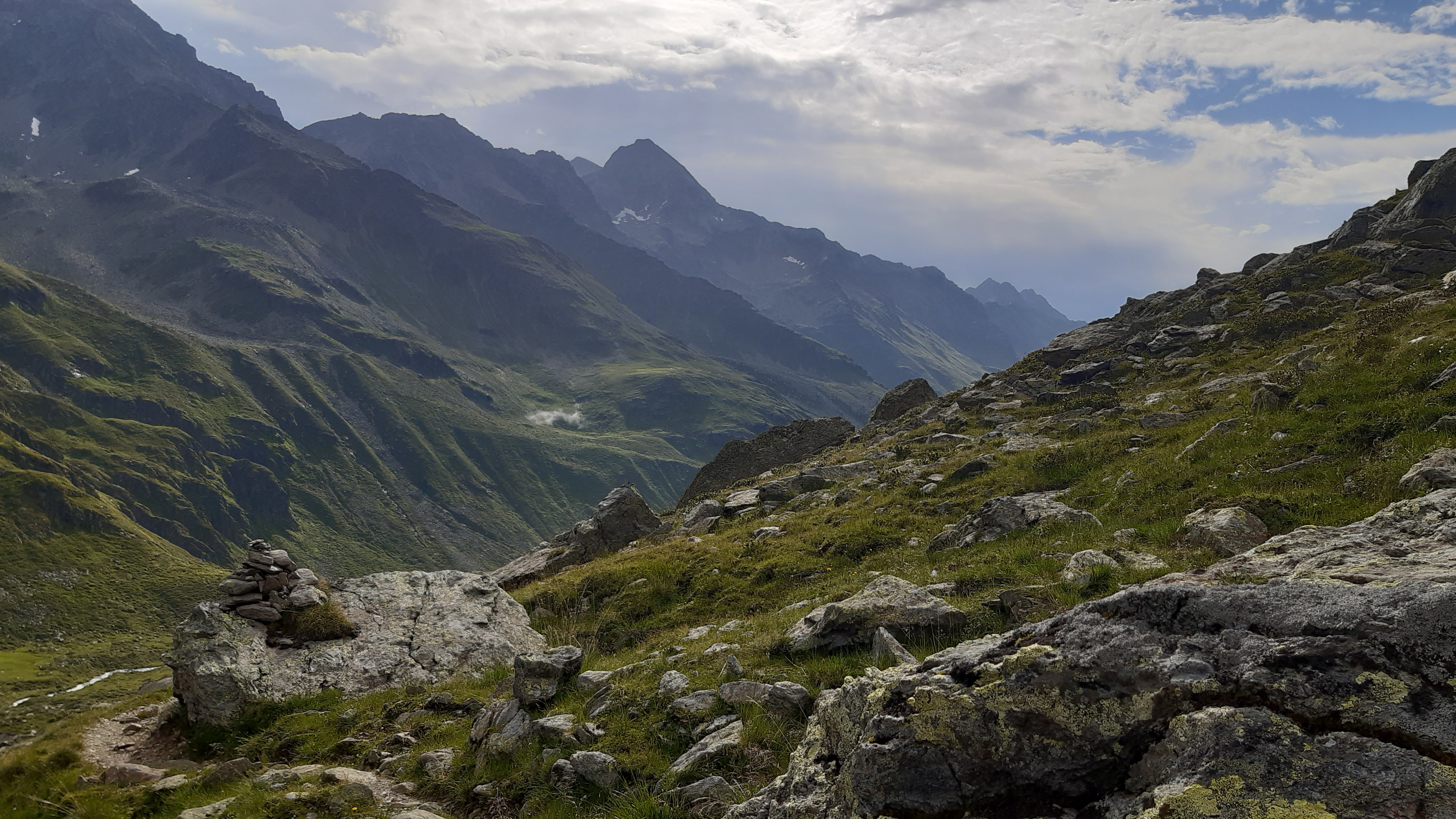 ) Noch ist es sonnig und wir sehen nur wenige Wolken. Allerdings sitzen wir auch in einem kleinen Kessel, der von hohen Bergen umgeben ist.