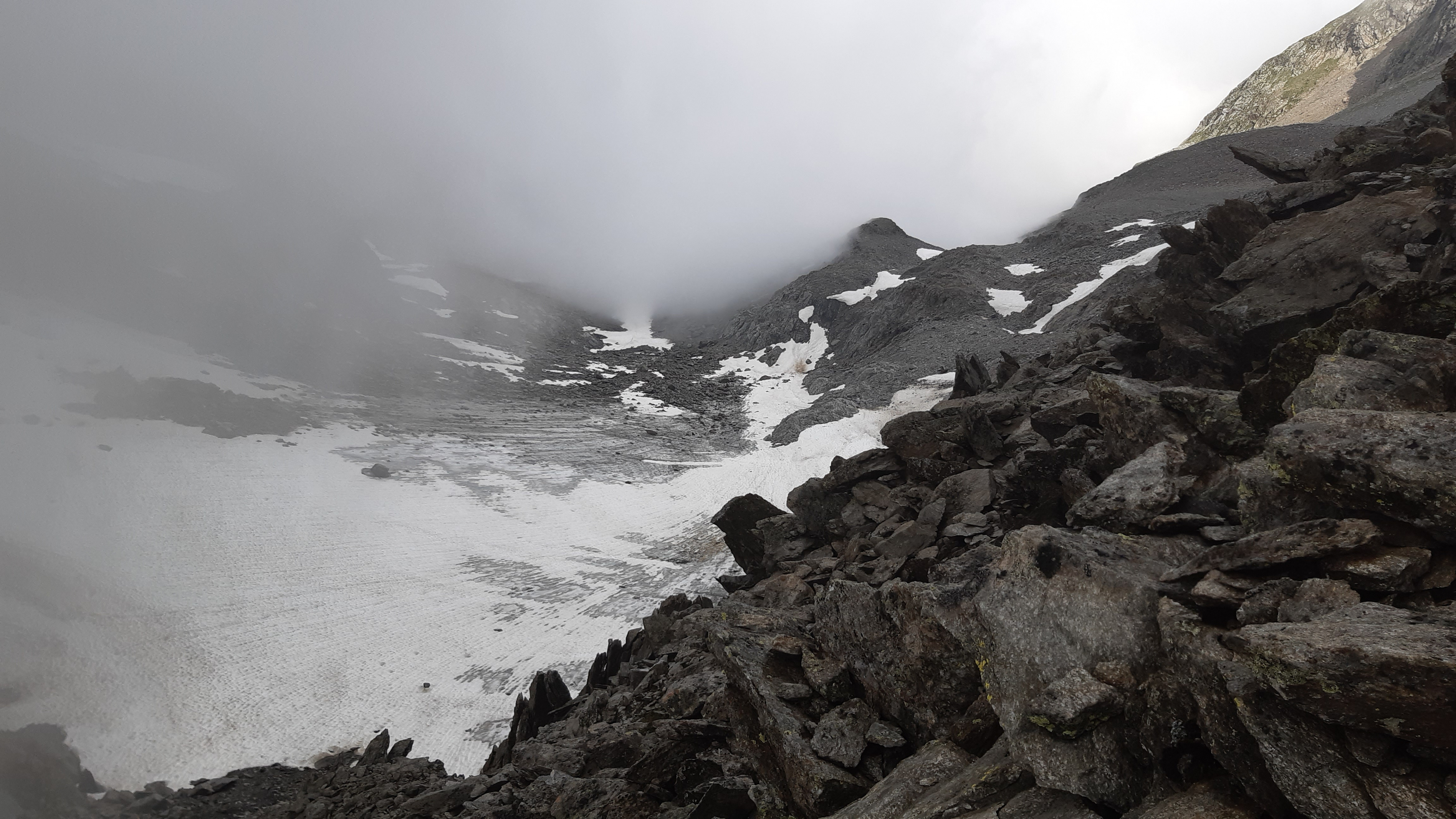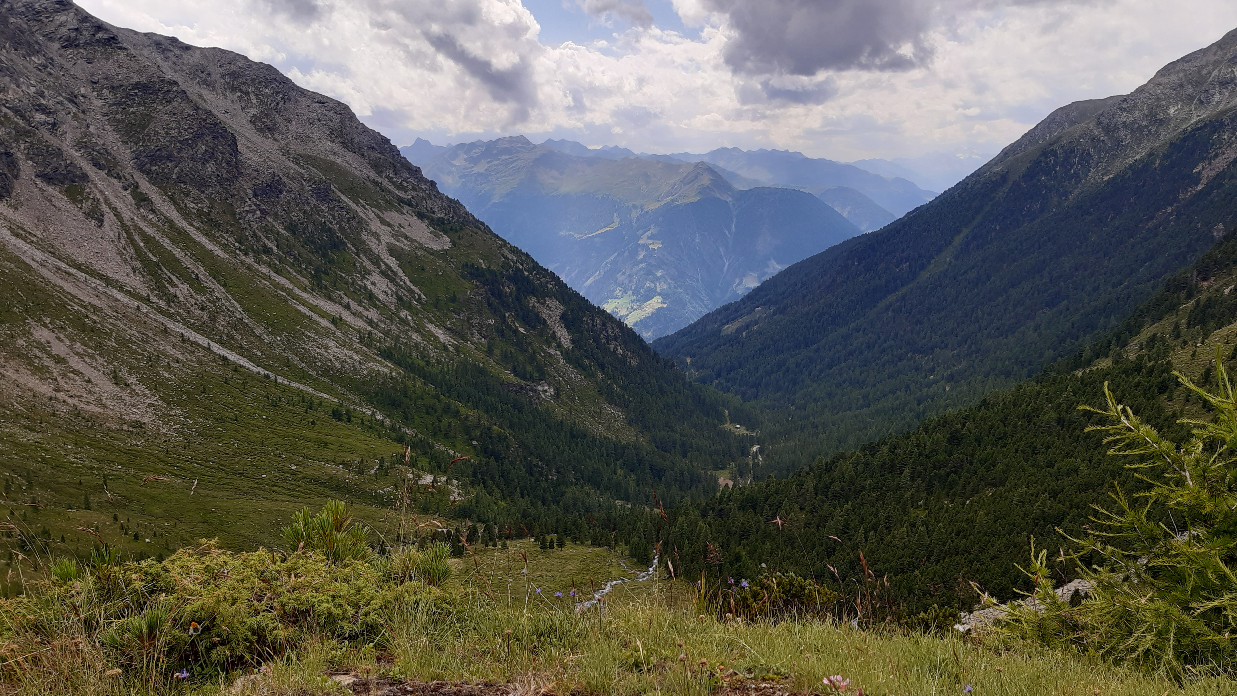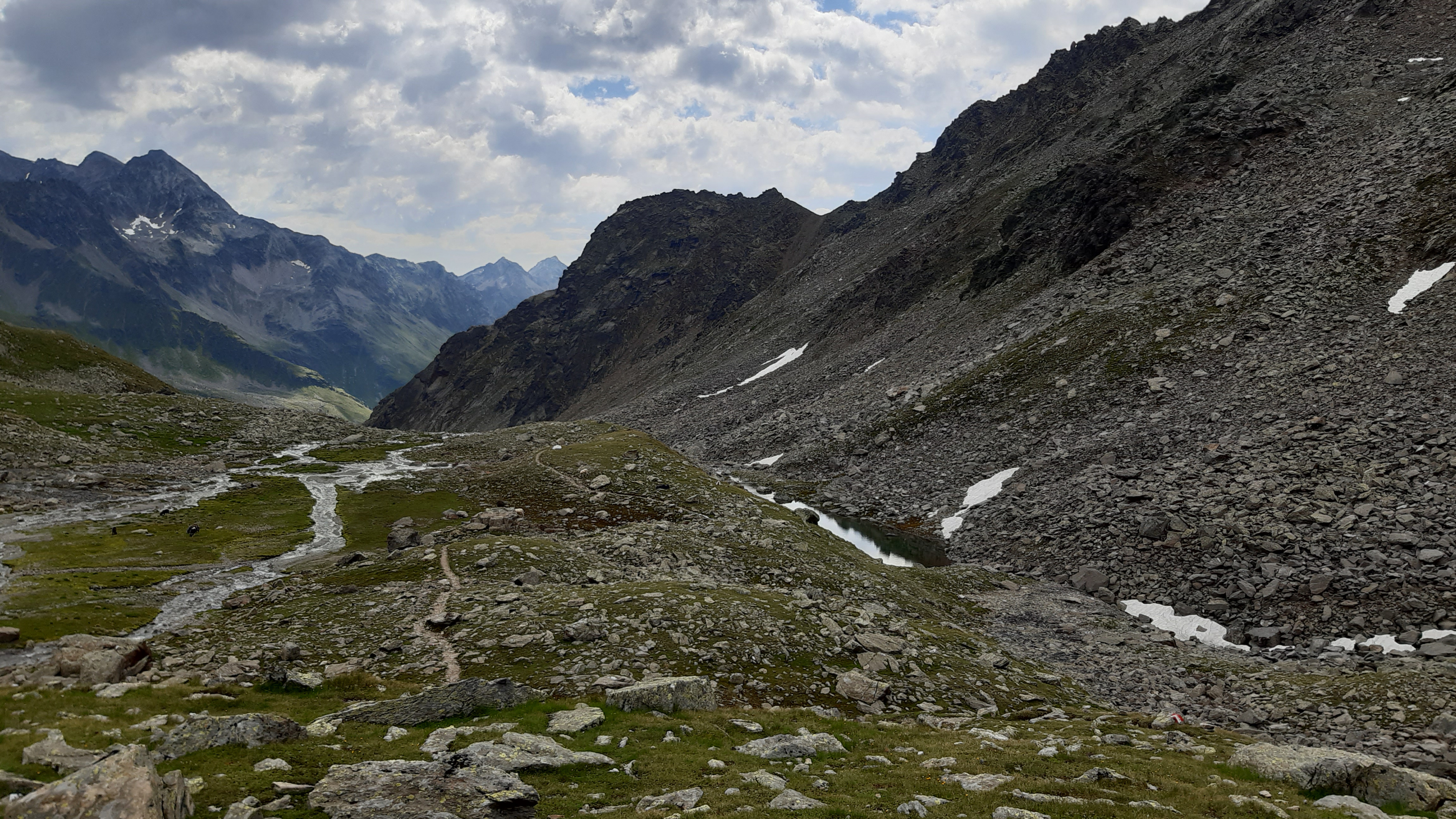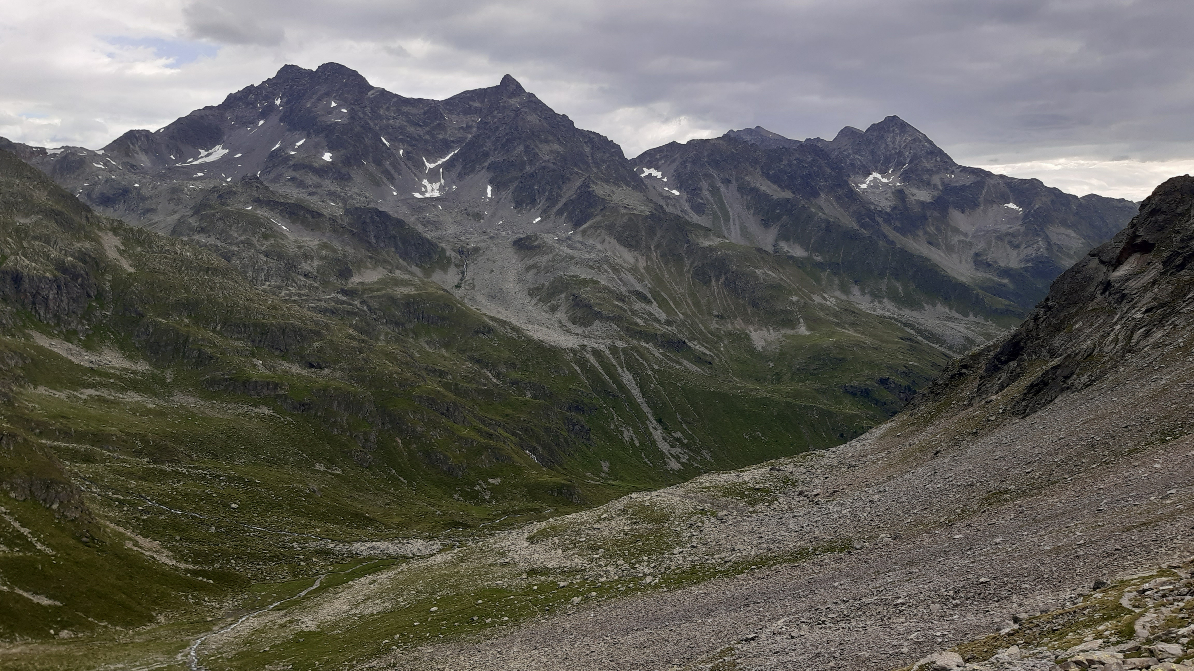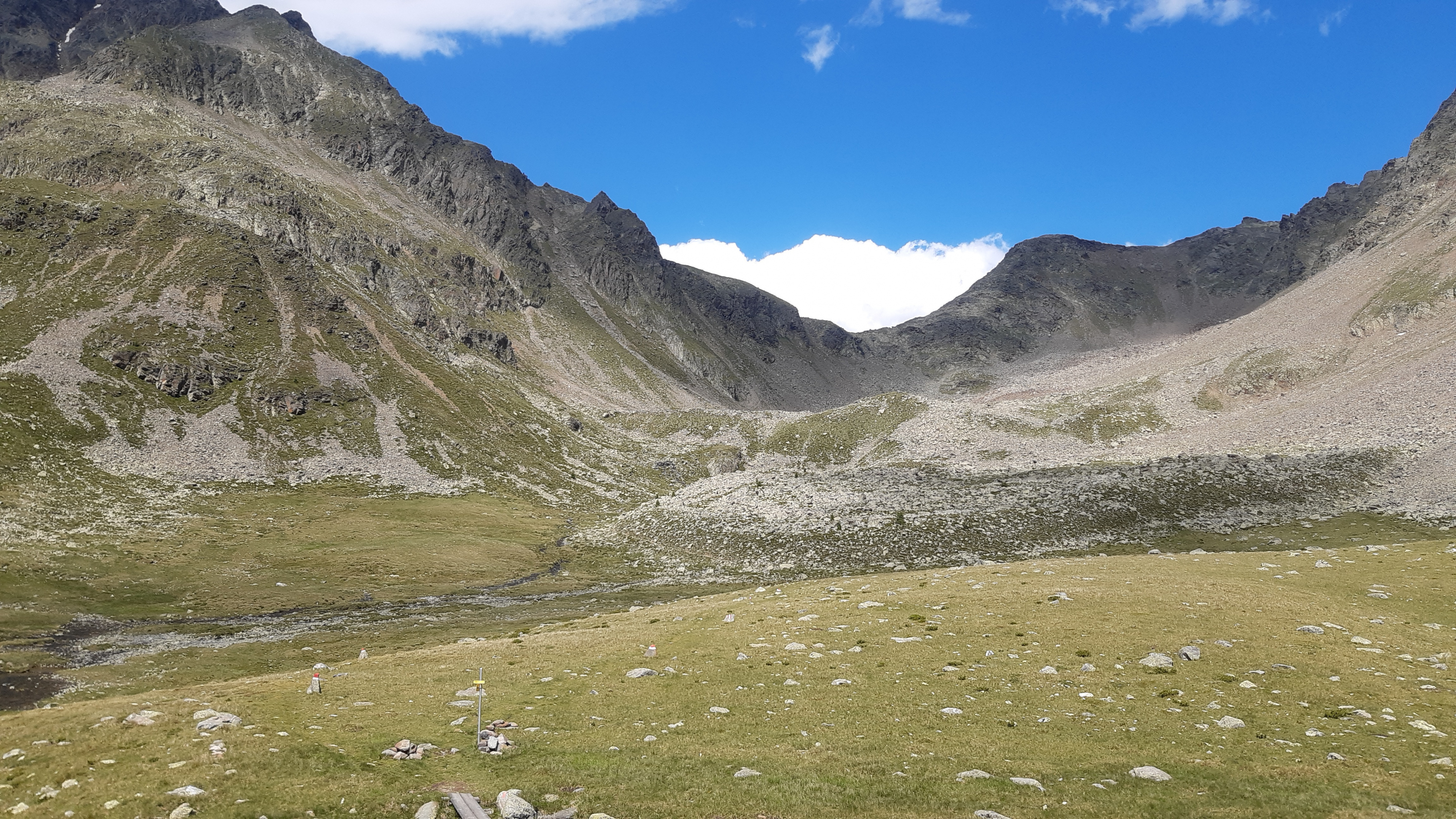 ) Noch ist es sonnig und wir sehen nur wenige Wolken. Allerdings sitzen wir auch in einem kleinen Kessel, der von hohen Bergen umgeben ist.