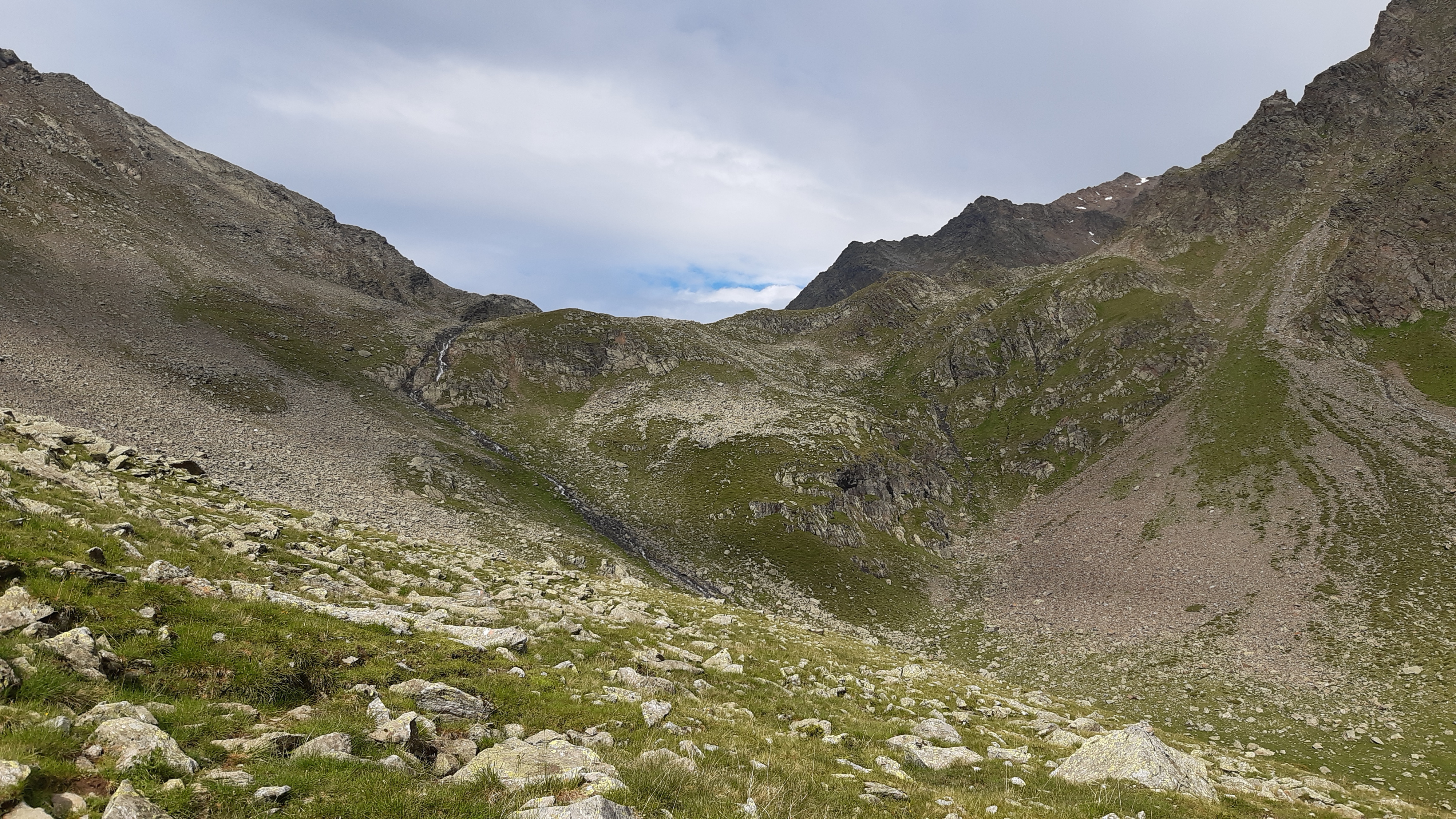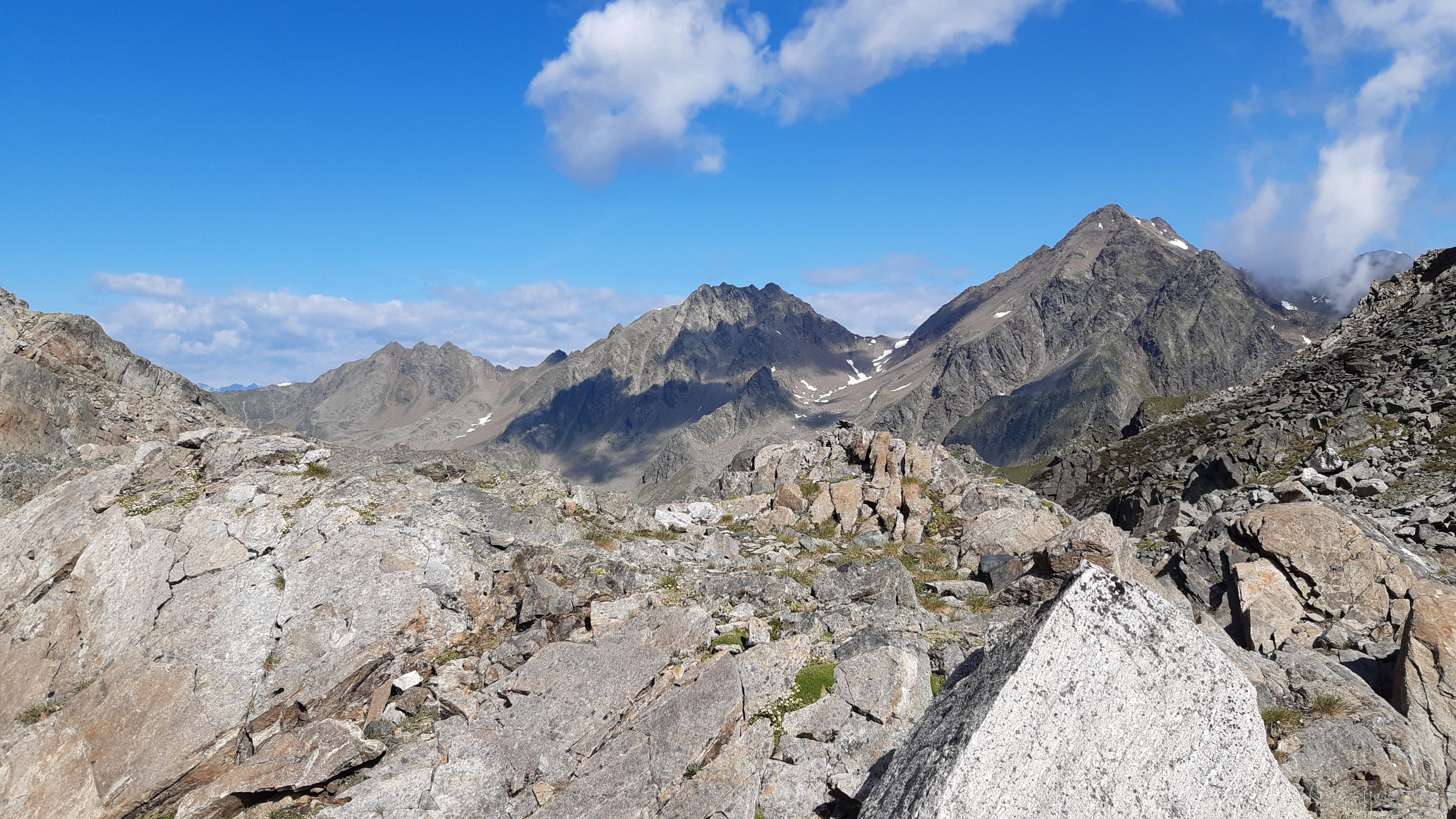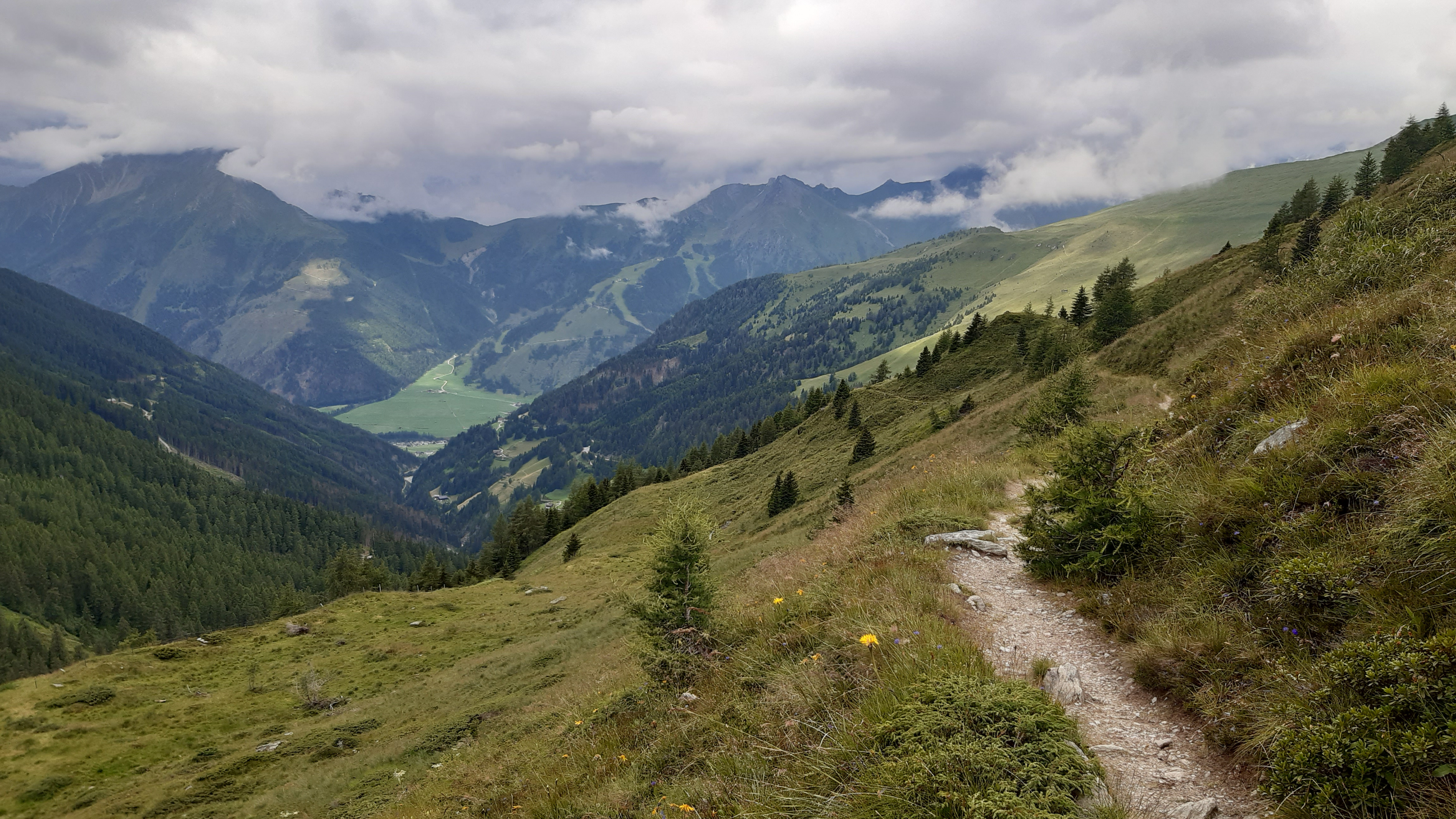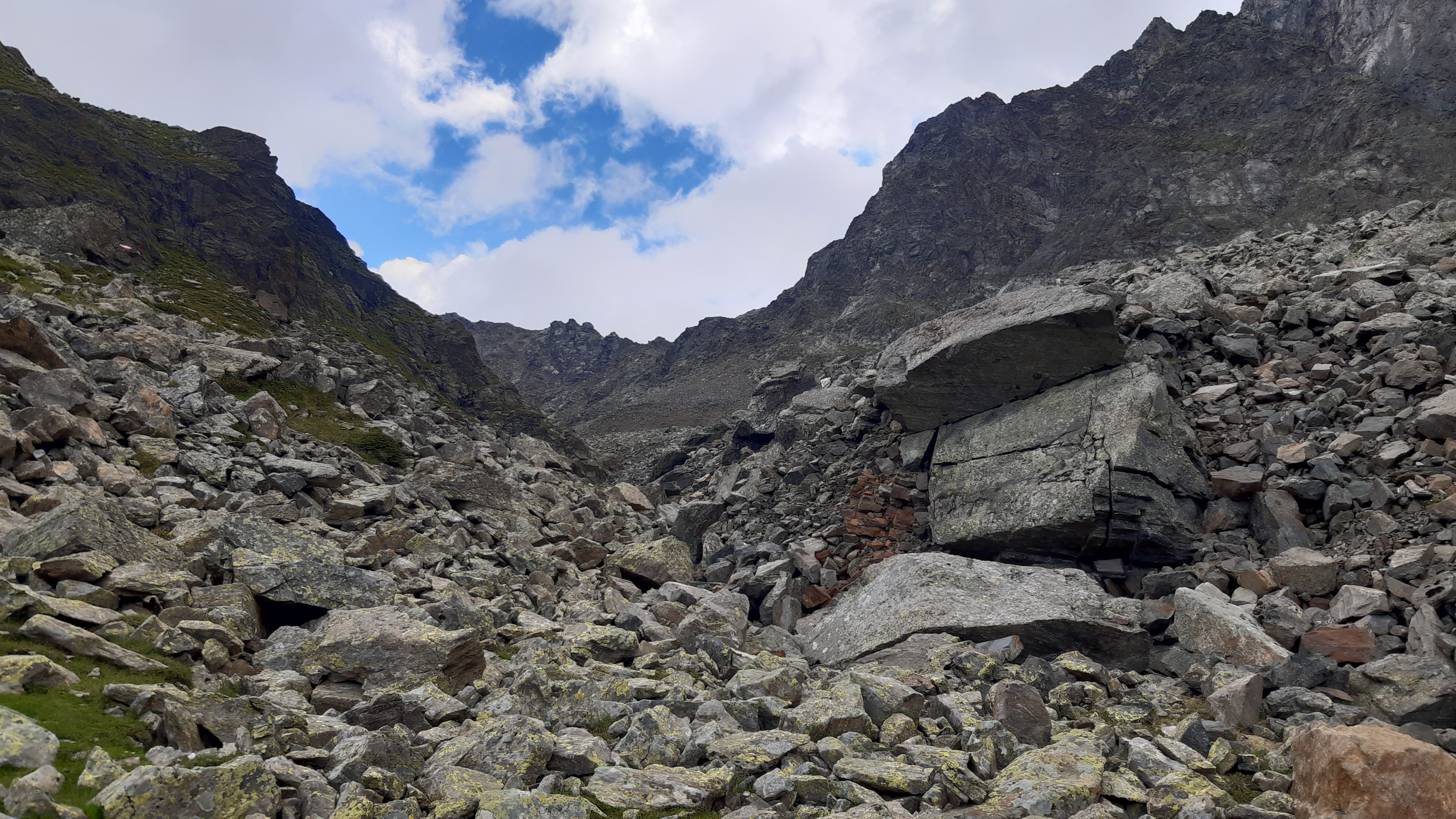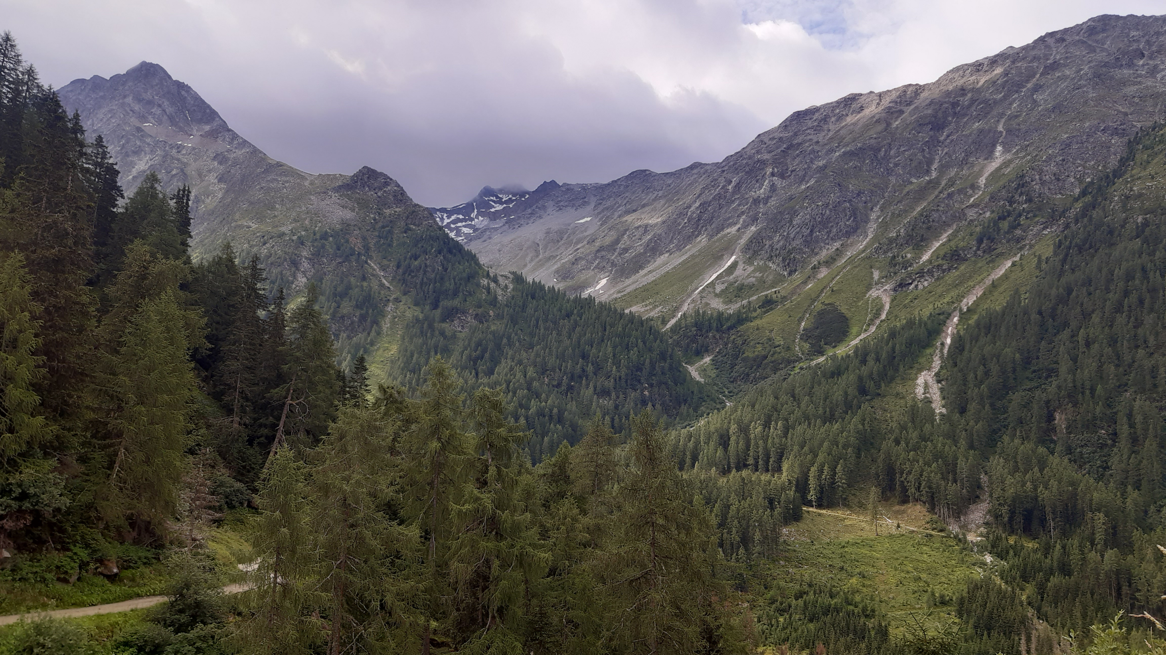 ) Noch ist es sonnig und wir sehen nur wenige Wolken. Allerdings sitzen wir auch in einem kleinen Kessel, der von hohen Bergen umgeben ist.