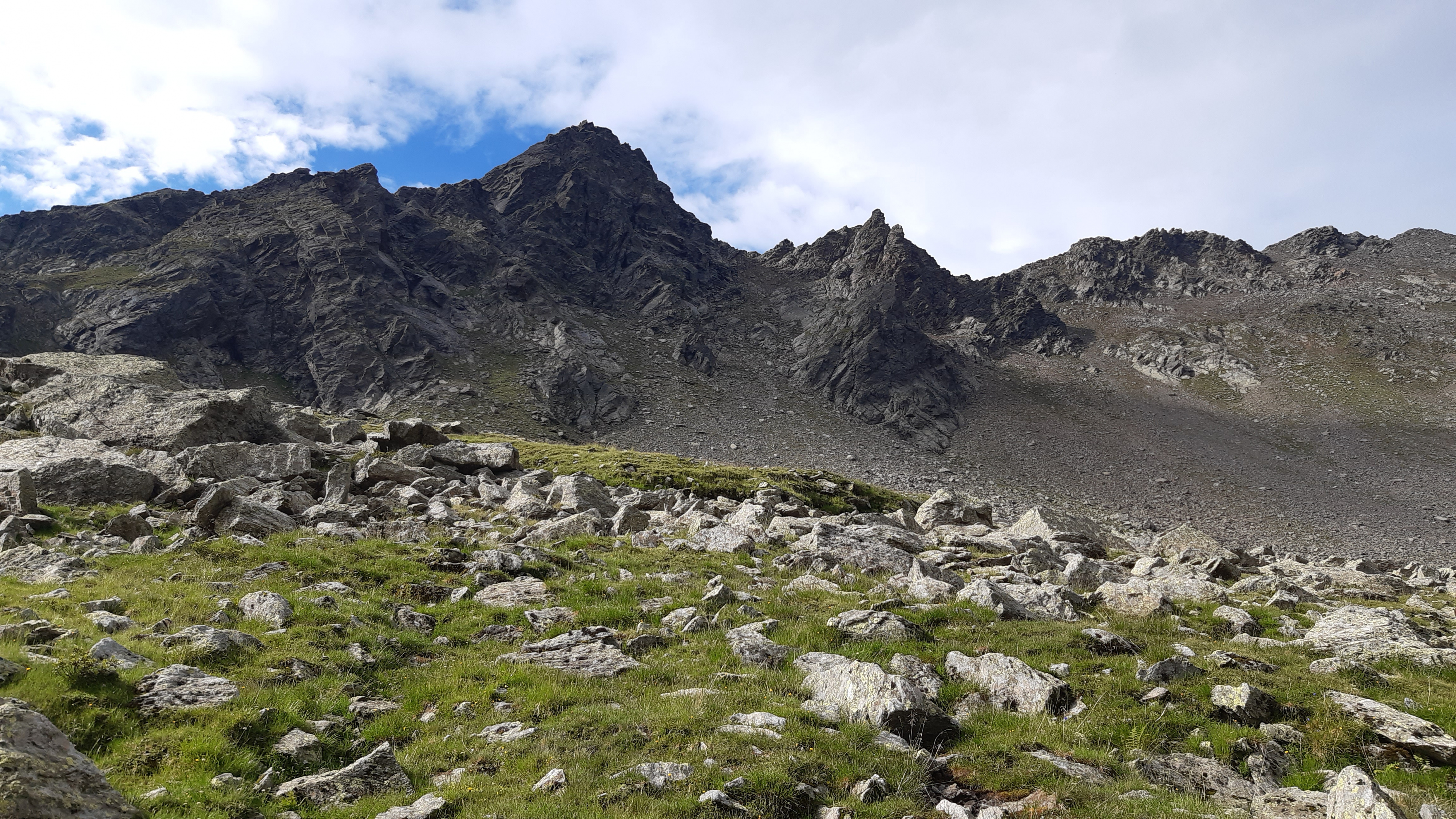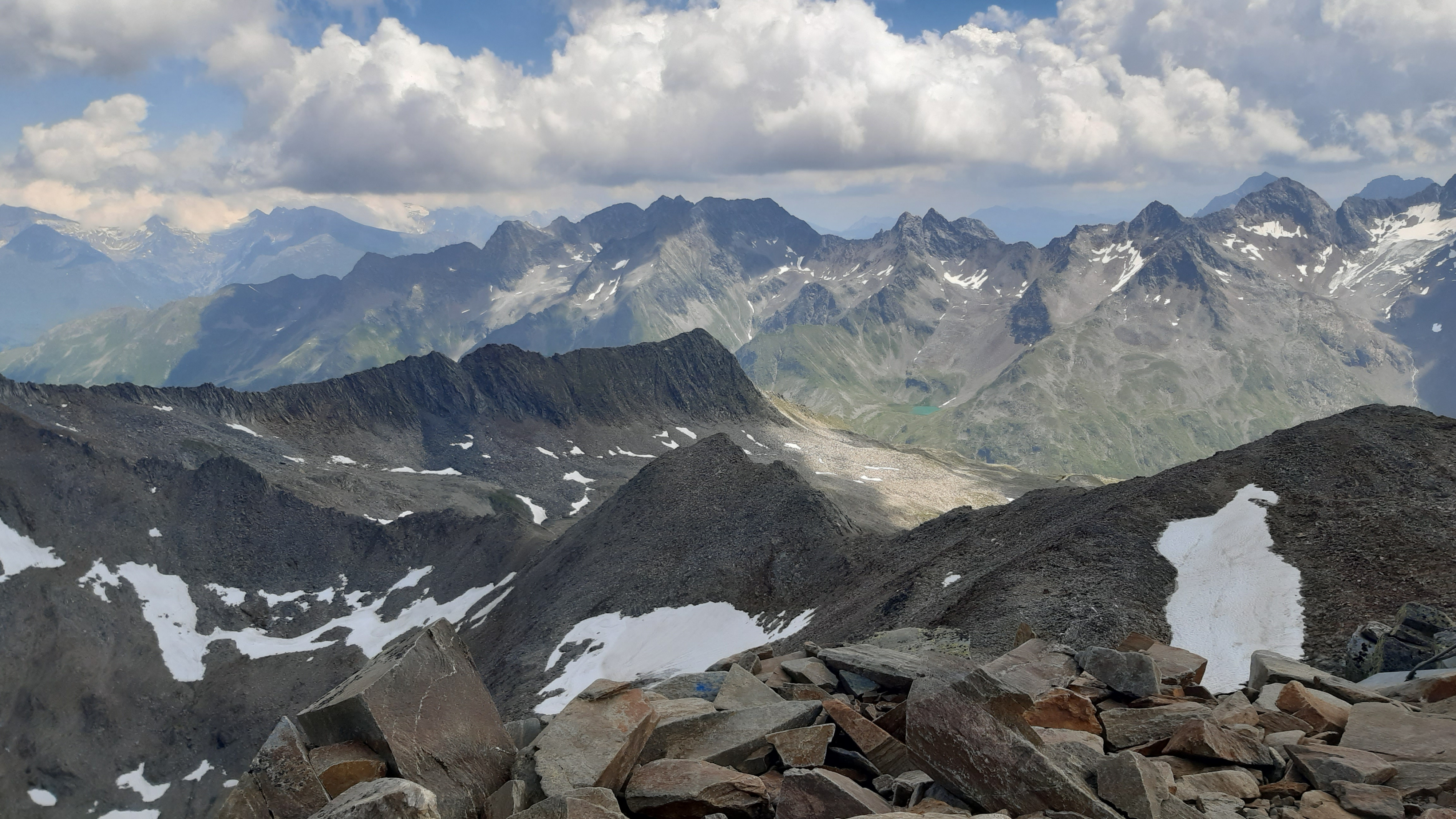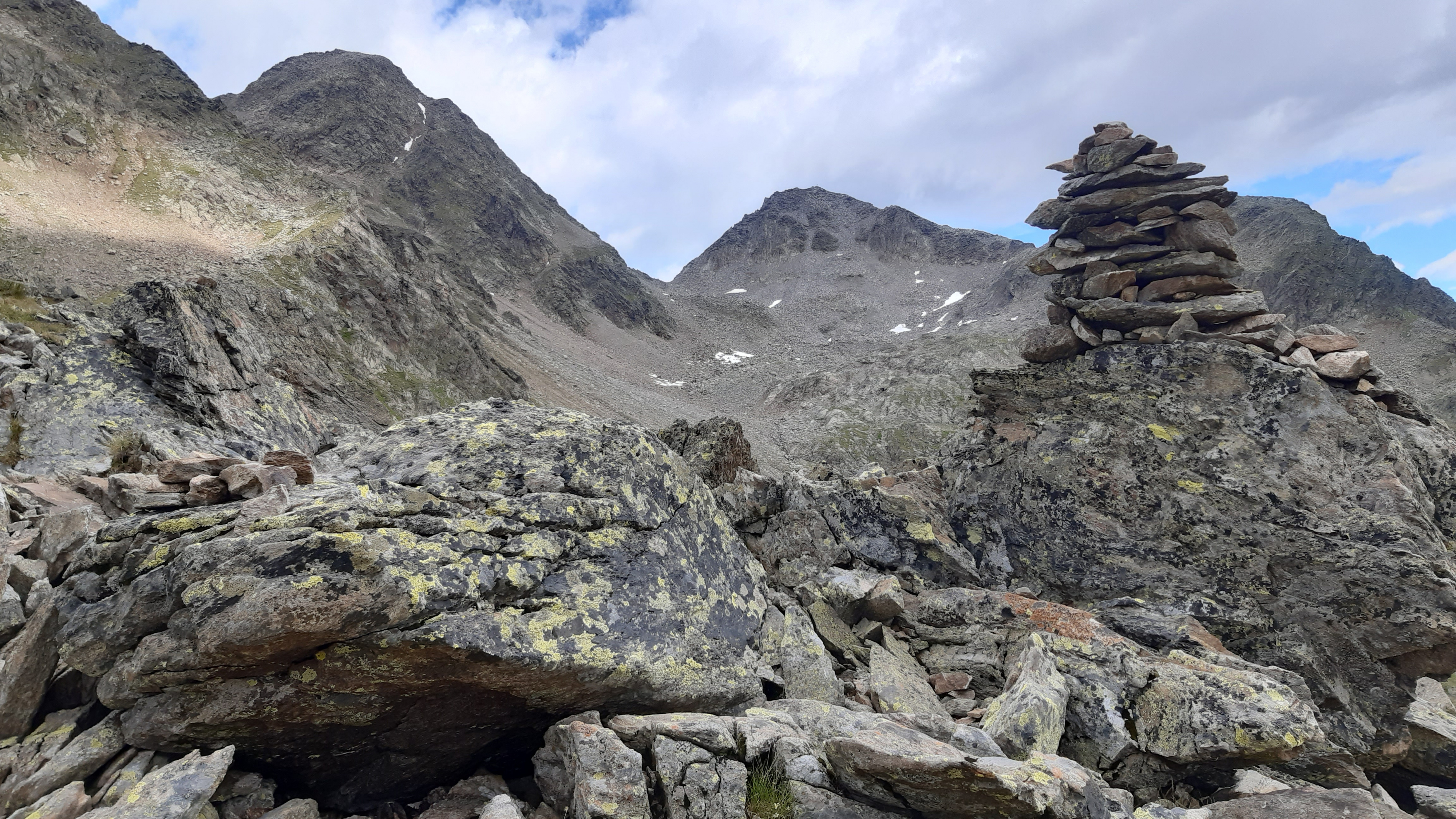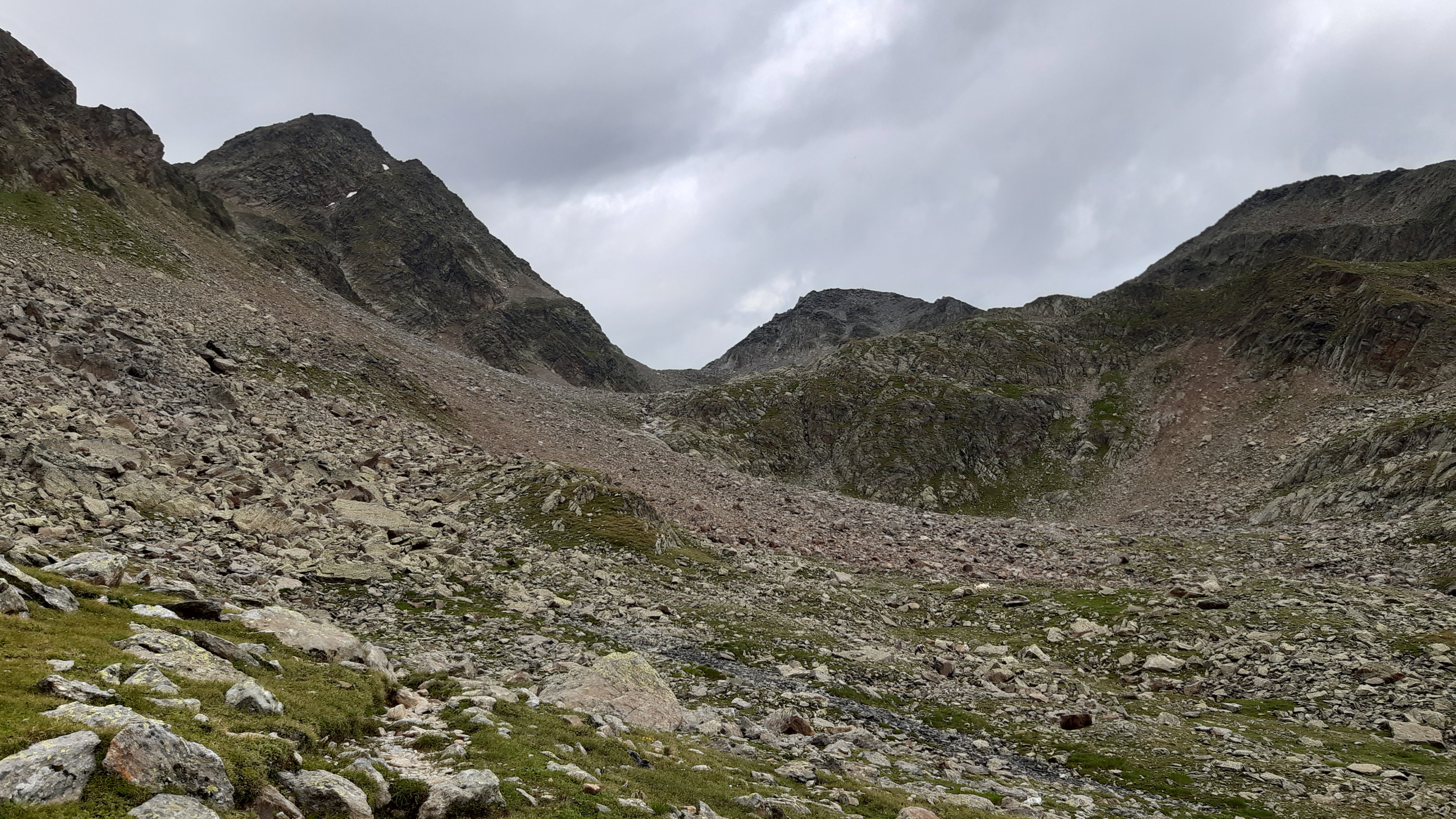 ) Noch ist es sonnig und wir sehen nur wenige Wolken. Allerdings sitzen wir auch in einem kleinen Kessel, der von hohen Bergen umgeben ist.