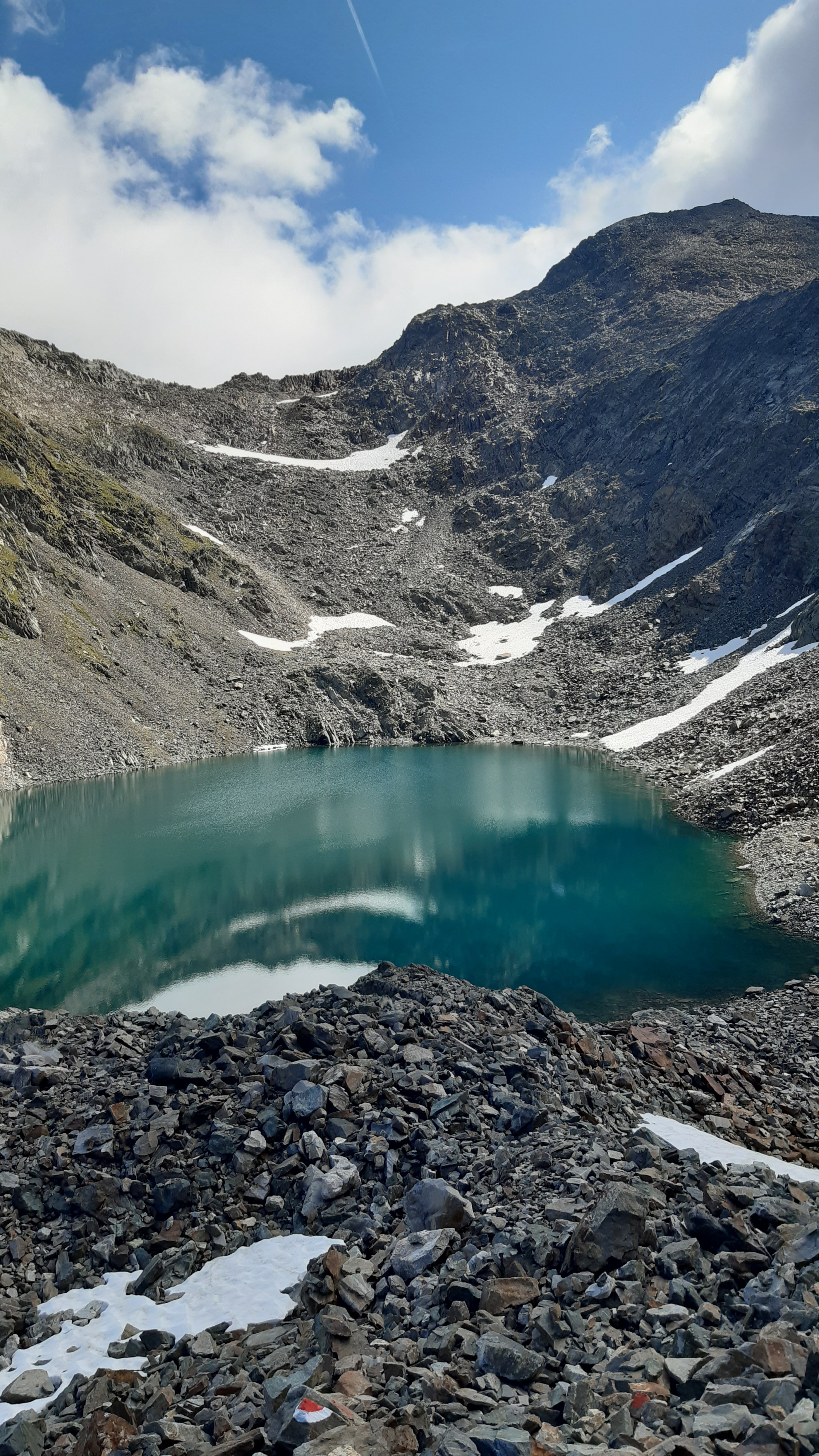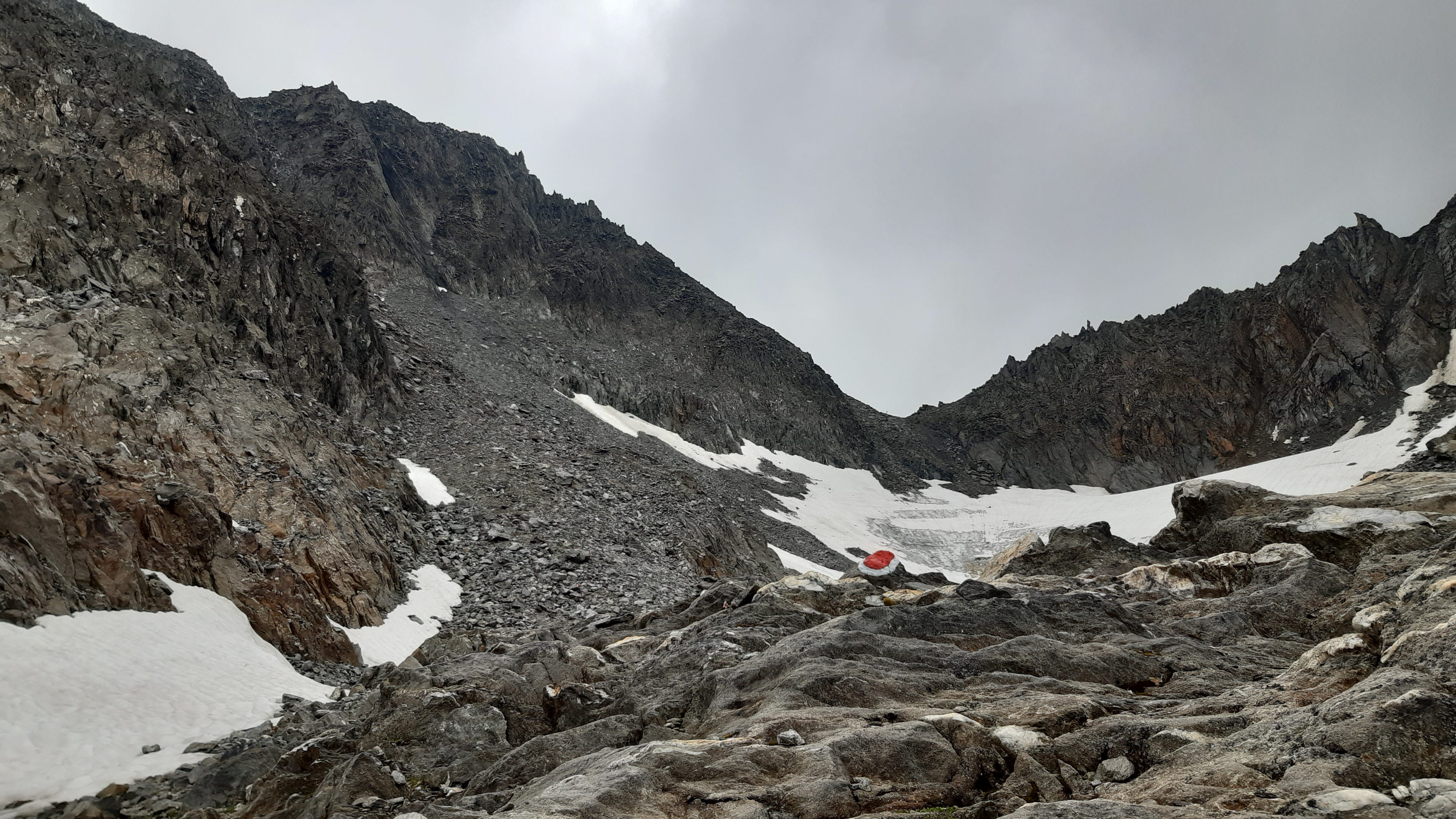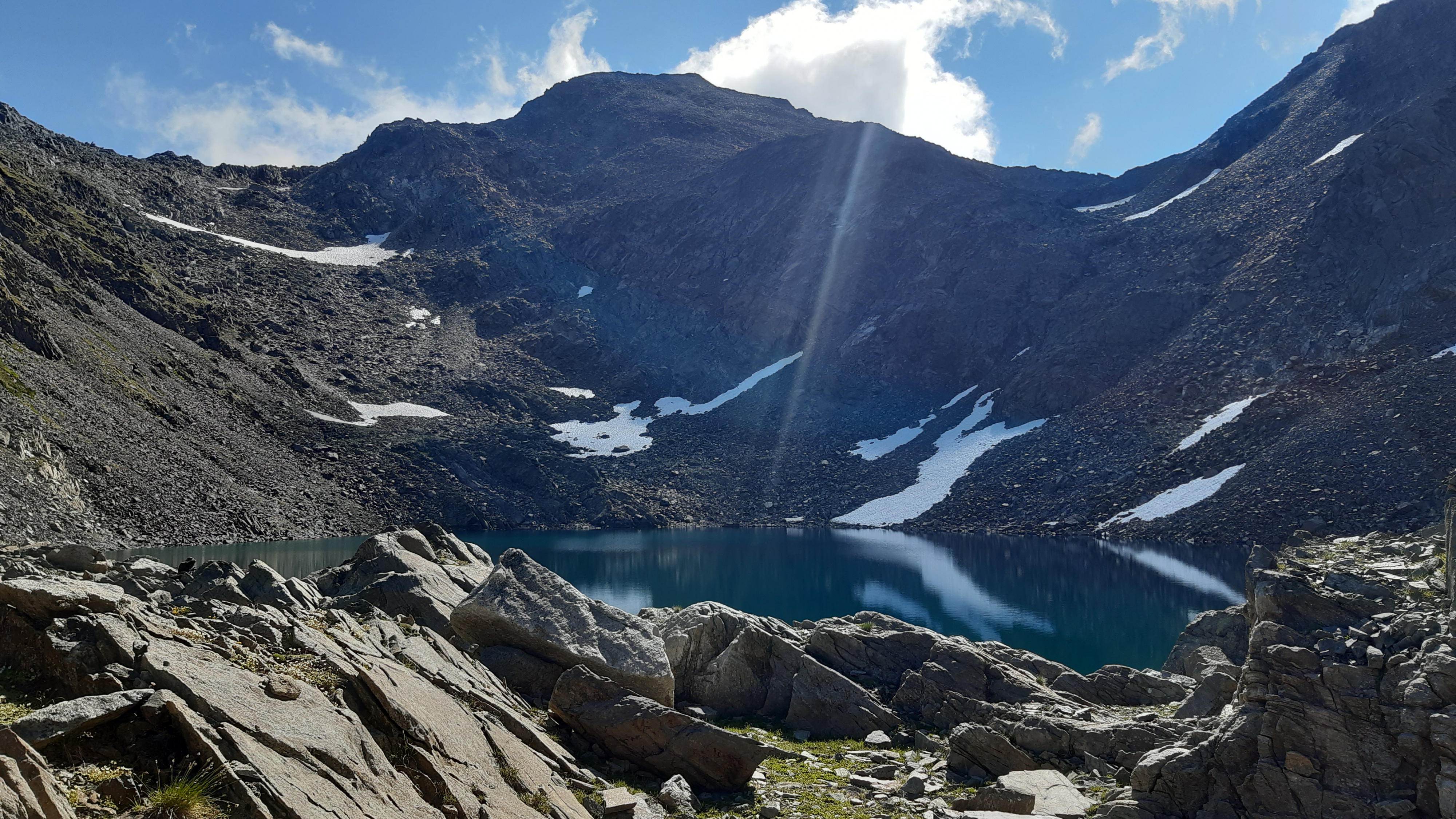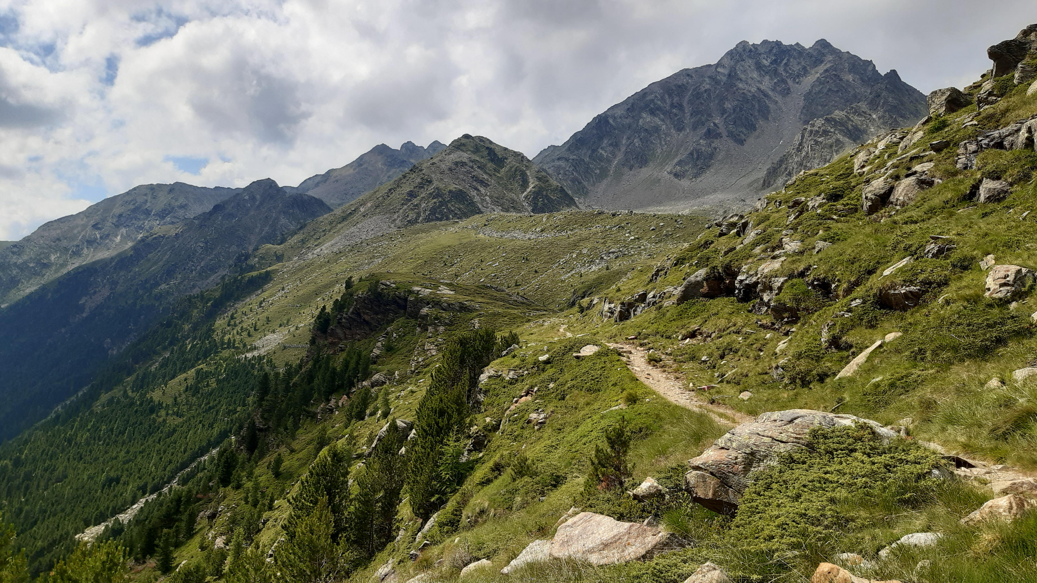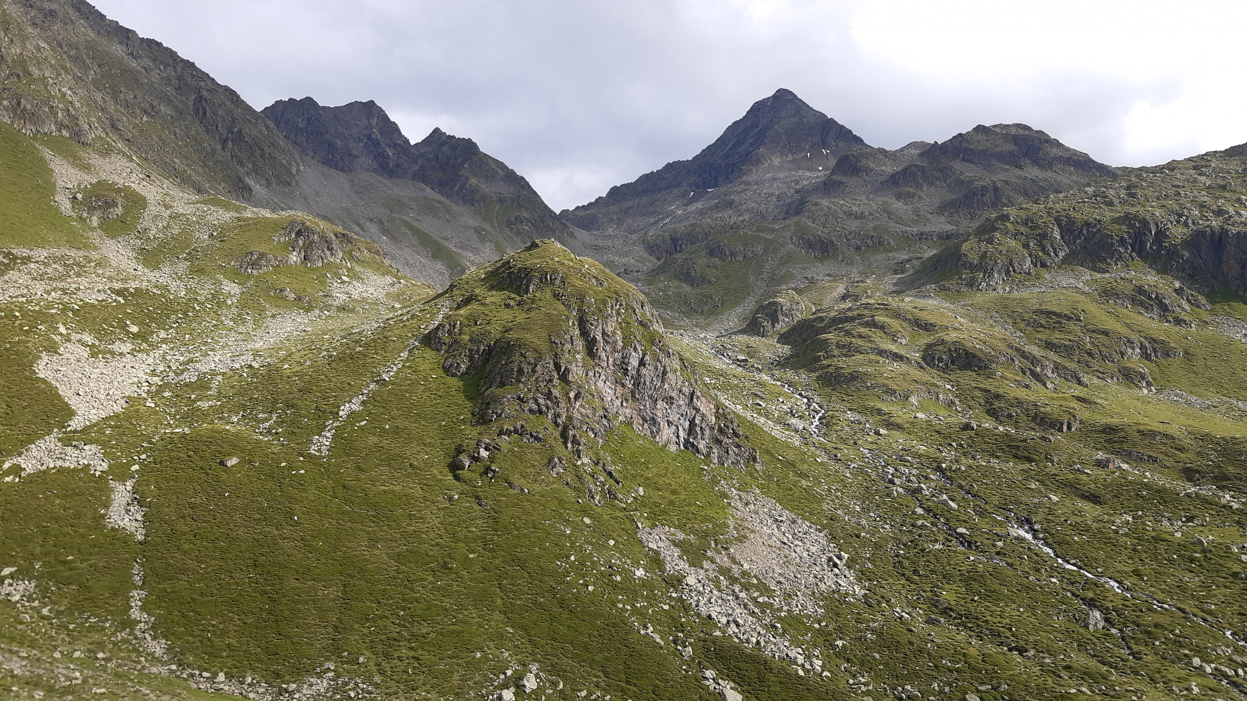 ) Noch ist es sonnig und wir sehen nur wenige Wolken. Allerdings sitzen wir auch in einem kleinen Kessel, der von hohen Bergen umgeben ist.