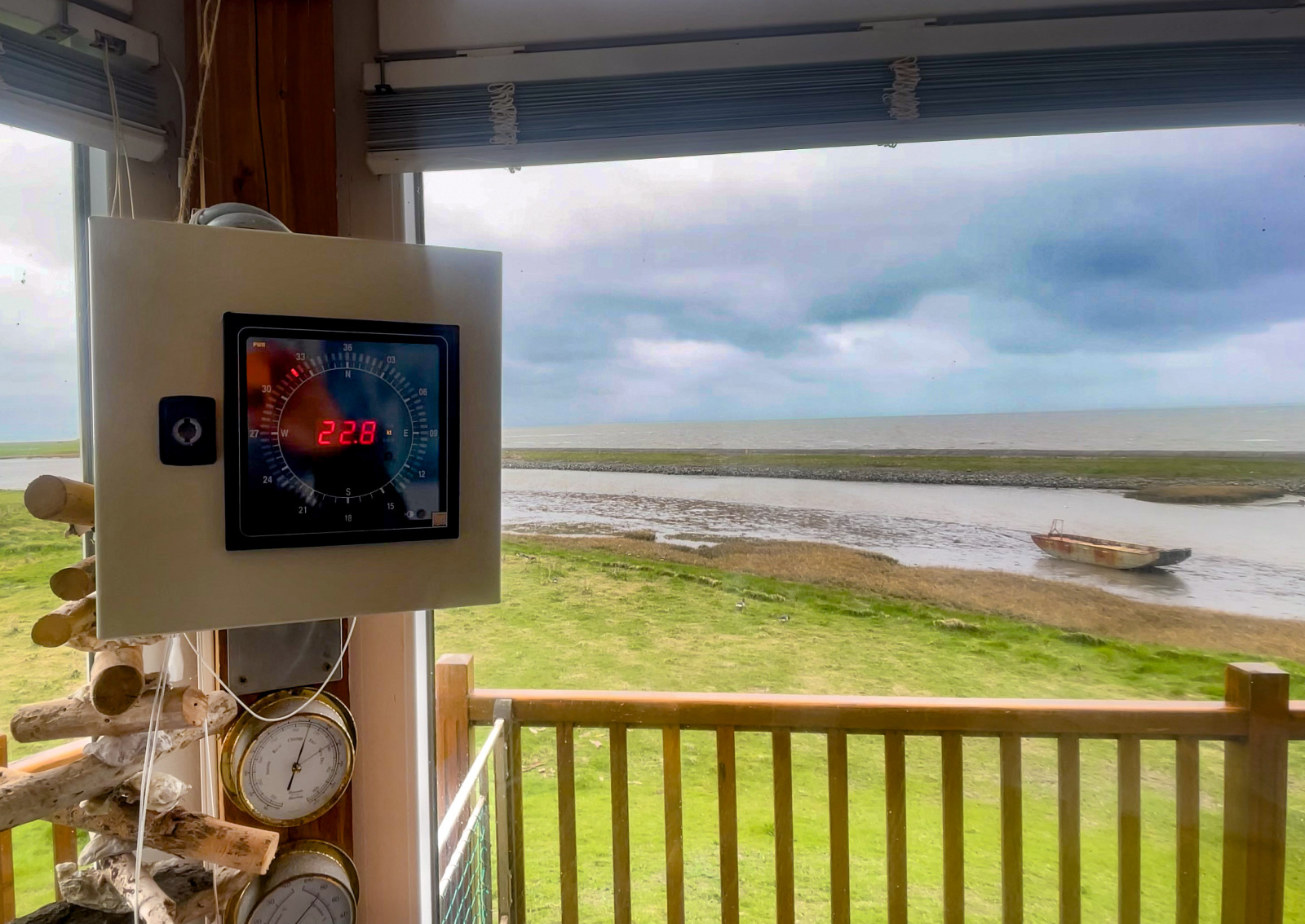 Der Sonntag begann, wie er versprochen wurde. 7er in Böen 8er (Bft) Wind waren außerhalb der Komfortzone der Gruppe. Die letzte Etappe war wieder zurück nach Schlüttsiel mit dem einsetzenden HW ab 14:50 Uhr geplant. In der Teeüche des Yachthafens mit dem tollen Ausblick steckten wir die Köpfe zusammen, einer mit der Wetter, der andere mit der Wind App und planten die Optionen. Der Wind sollte nachlassen, dafür kam zwischendurch eine Amtliche Gewitterwarnung des DWD. Wind und Regen ließen tatsächlich im Laufe des Vormittags nach und so wurden die Boote beladen. Die Gewitterwarnung wurde aufgehoben und so ging es auf dem Wasser erst einmal raus Richtung Langeness um dem Fahrwasser der Süderaue und dann Schlüttsiel zu folgen. Gerade am Beginn des Pricken Weges baute sich eine Wolkenfront vor uns auf, sollte es doch noch Gewitter geben?