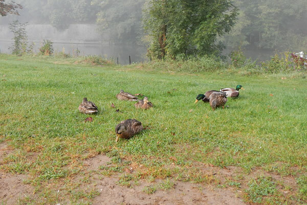 Wieder ist das Zelt nass, auch nicht verwunderlich aber heute fehlt auch die Morgensonne. Nebel... Wir frühstücken im Zelt und machen uns dann zeitig aus dem Staub bevor uns die ganz schön zutraulichen Enten überfallen. Kurz nachdem wir Nassau verlassen haben besiegt die Sonne auch den Nebel. Wunderbar dann kann ich das Zelt ja später endlich richtig trocknen. Kurz vor Bad Ems machen wir erstmal Mittag. Der Aussichtspunkt bietet jede Menge Möglichkeiten Zelt und