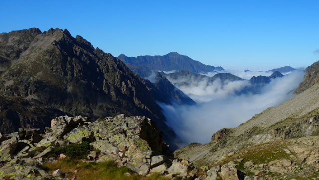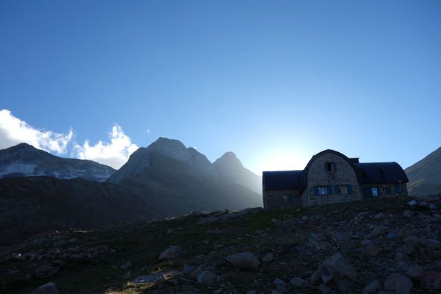 So gebe ich mir die Möglichkeit, die vier "spektakulären" Etappen (lt. Ton Joosten), für die evtl. Steighilfen notwendig sind, doch noch zu laufen (in diesem Jahr bin ich sie auf dem GR11 umgangen). September, weil die bewirteten Hütten nicht mehr voll, aber noch offen sind. Außerdem war das Wetter in diesem September stabil schön, - typisches Bergwetter eben.