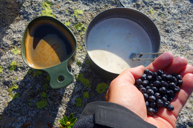 Frische Heidelbeeren gab es auf 2.400hm! Dazu Müsli und Instantkaffee von Saloum. Lecker!