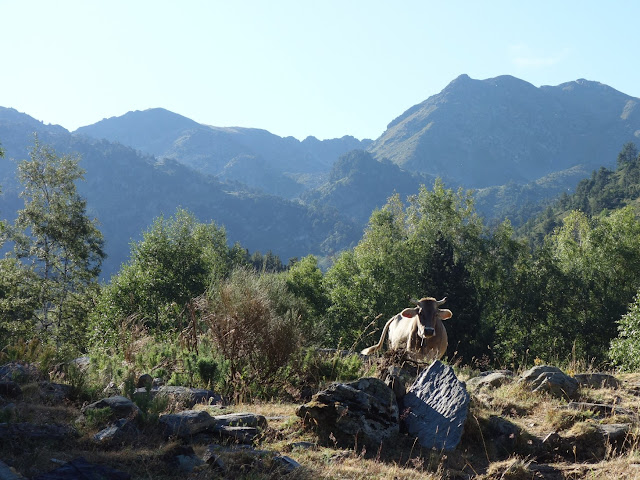 So verließ ich leichten Herzens den Ort und latschte erstmal ca. 6 Kilometer auf Schotterwegen und Straßen bis ans Ende des Val Lourden. Einen ersten Blick auf die höheren Pyrenäen habe ich versucht, in Bits festzuhalten.