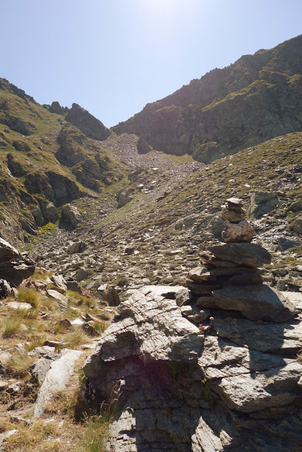 Weiter ging es zum Lac des Isclots über Wege, die nur noch am Anfang gekennzeichnet sind und man dann durch Spüren erahnen muss und manchmal mit Stein"männchen" markiert sind.