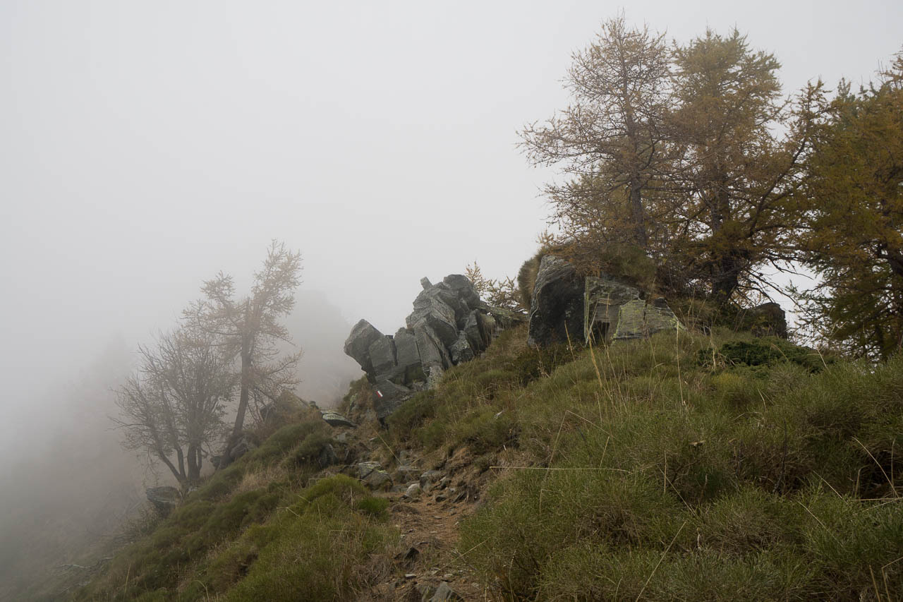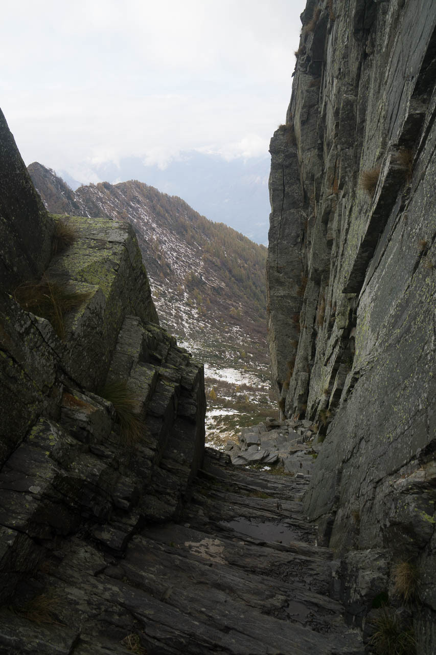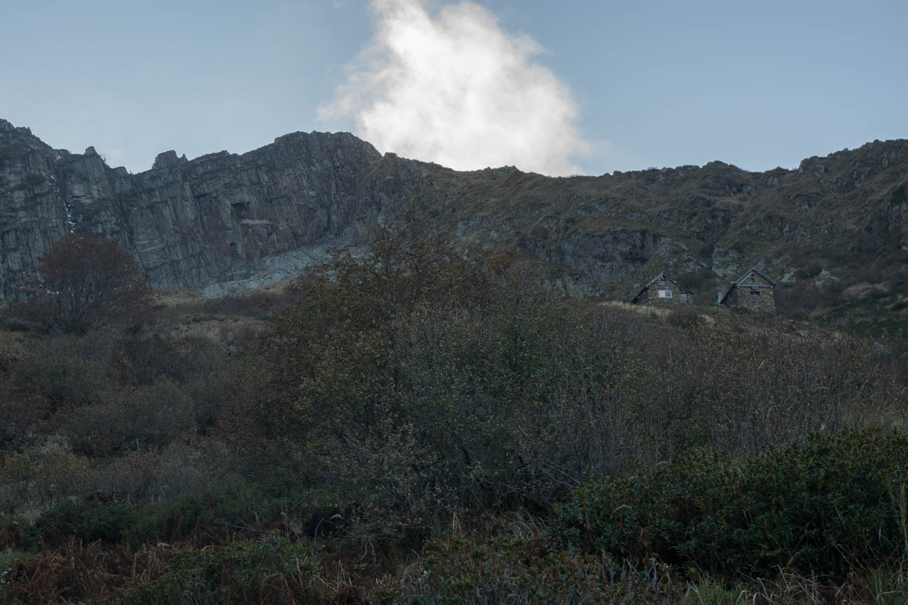 Der Weiterweg ist recht schnell zusammen gefasst: dem Talverlauf grob in Richtung SW nach Mazzarocco und letztendlich hoch zum Tagesziel der Etappe: das Biv. Forna. auf etwa 1740m am Talabschluss gelegen. Kurz vor dem finalen Aufstieg treffe ich auf zwei deutsche Tagestouris (im UL-Stil), die vom Monte Zeda herunter kommen, und von 20cm Schnee und nicht so guten Bedingungen erzählen. Ansonsten bin ich der einzige und habe ausreichend Zeit, meine falsch gewählten Klamotten zu verfluchen. Ich habe in Anbetracht von ev. drei Nächten draussen ein dickes Unterhemd gewählt. Zu dick, wie ich feststellen muss. Ich schwimme im Schweiss und bekomm die Hitze vom Gehen schlichtweg nicht raus, und überhitzt wandern bremst und strengt extra an.