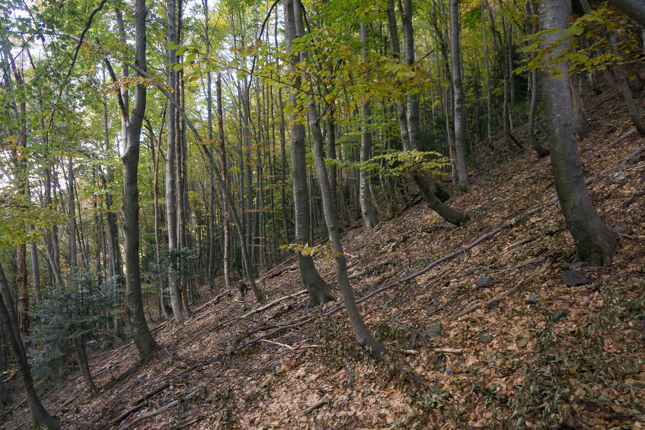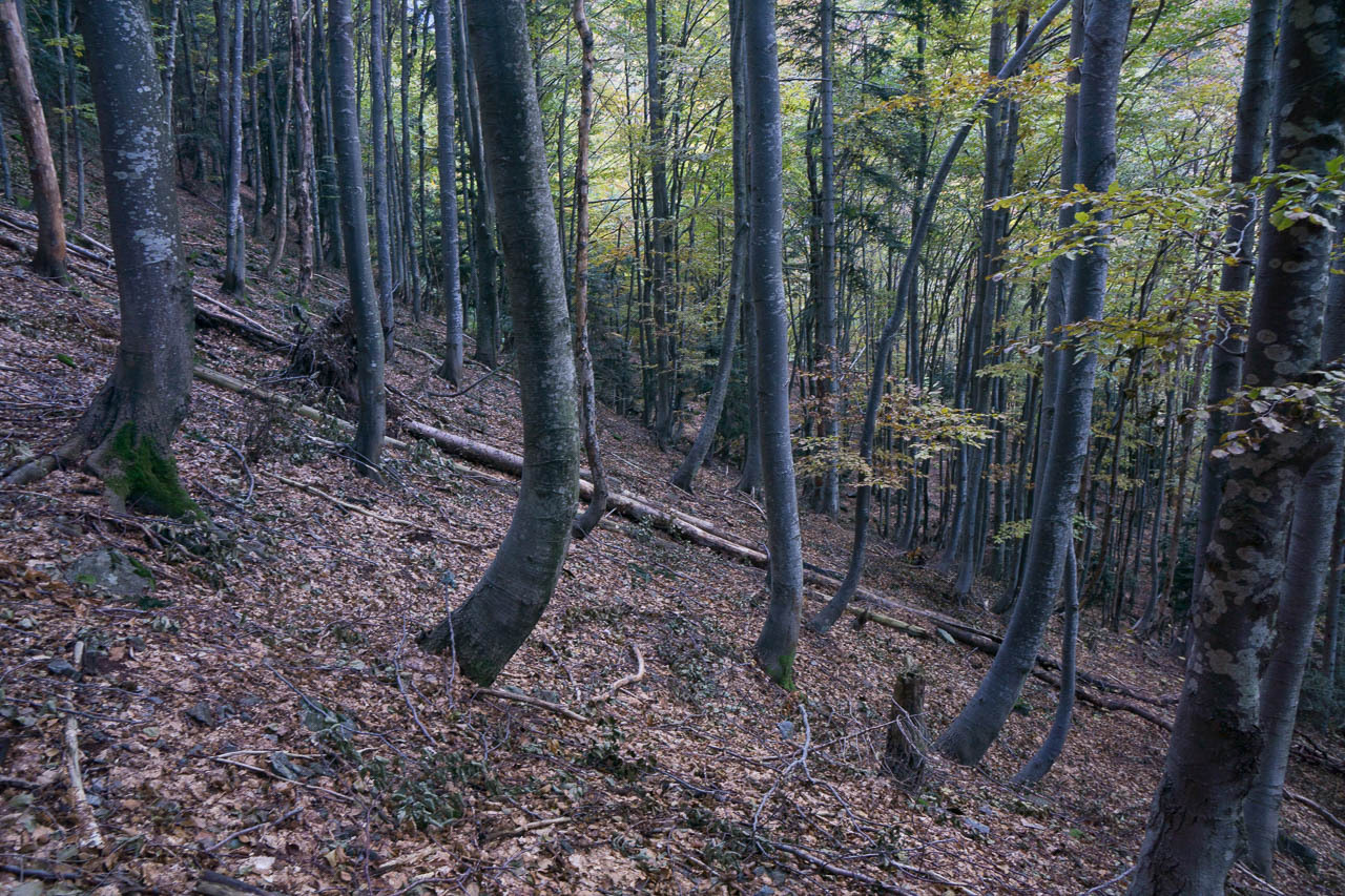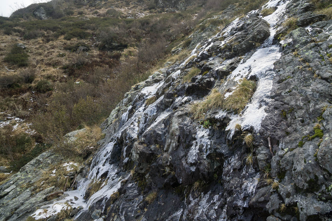 Der Weiterweg ist recht schnell zusammen gefasst: dem Talverlauf grob in Richtung SW nach Mazzarocco und letztendlich hoch zum Tagesziel der Etappe: das Biv. Forna. auf etwa 1740m am Talabschluss gelegen. Kurz vor dem finalen Aufstieg treffe ich auf zwei deutsche Tagestouris (im UL-Stil), die vom Monte Zeda herunter kommen, und von 20cm Schnee und nicht so guten Bedingungen erzählen. Ansonsten bin ich der einzige und habe ausreichend Zeit, meine falsch gewählten Klamotten zu verfluchen. Ich habe in Anbetracht von ev. drei Nächten draussen ein dickes Unterhemd gewählt. Zu dick, wie ich feststellen muss. Ich schwimme im Schweiss und bekomm die Hitze vom Gehen schlichtweg nicht raus, und überhitzt wandern bremst und strengt extra an.
