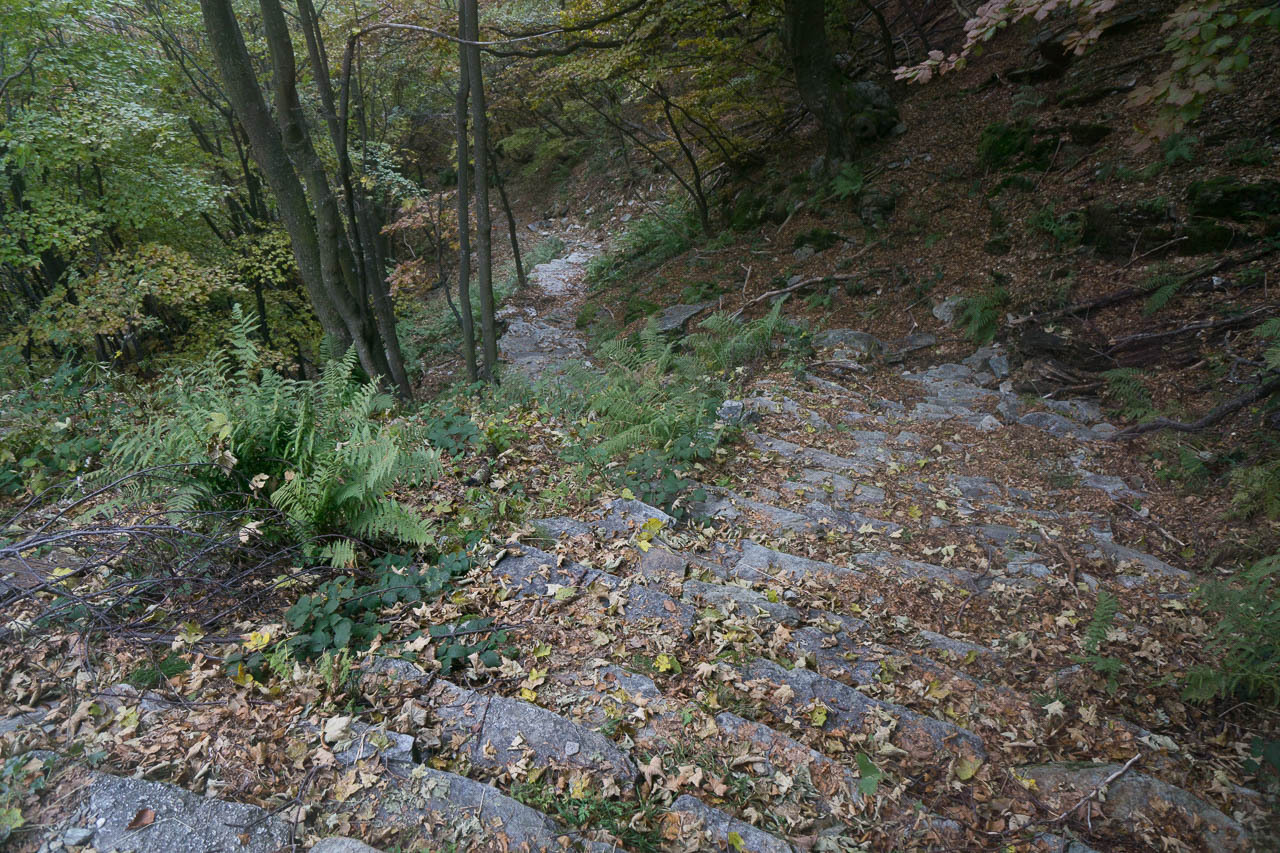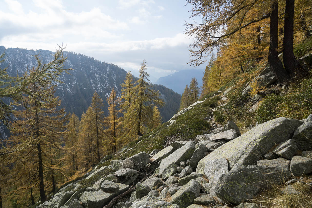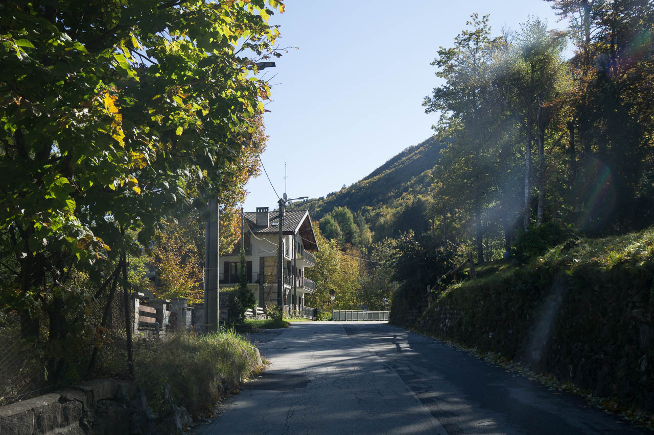 Von Malesco aus geht es der kaum befahrenen Strasse nach Finero (ausgestorben), und dann dem GTA folgend südlich um den Monte Colmine herum bis kurz vor Guro, und dann in die kleine Siedlung Tresco, die in einem Sattel südlich davon liegt.