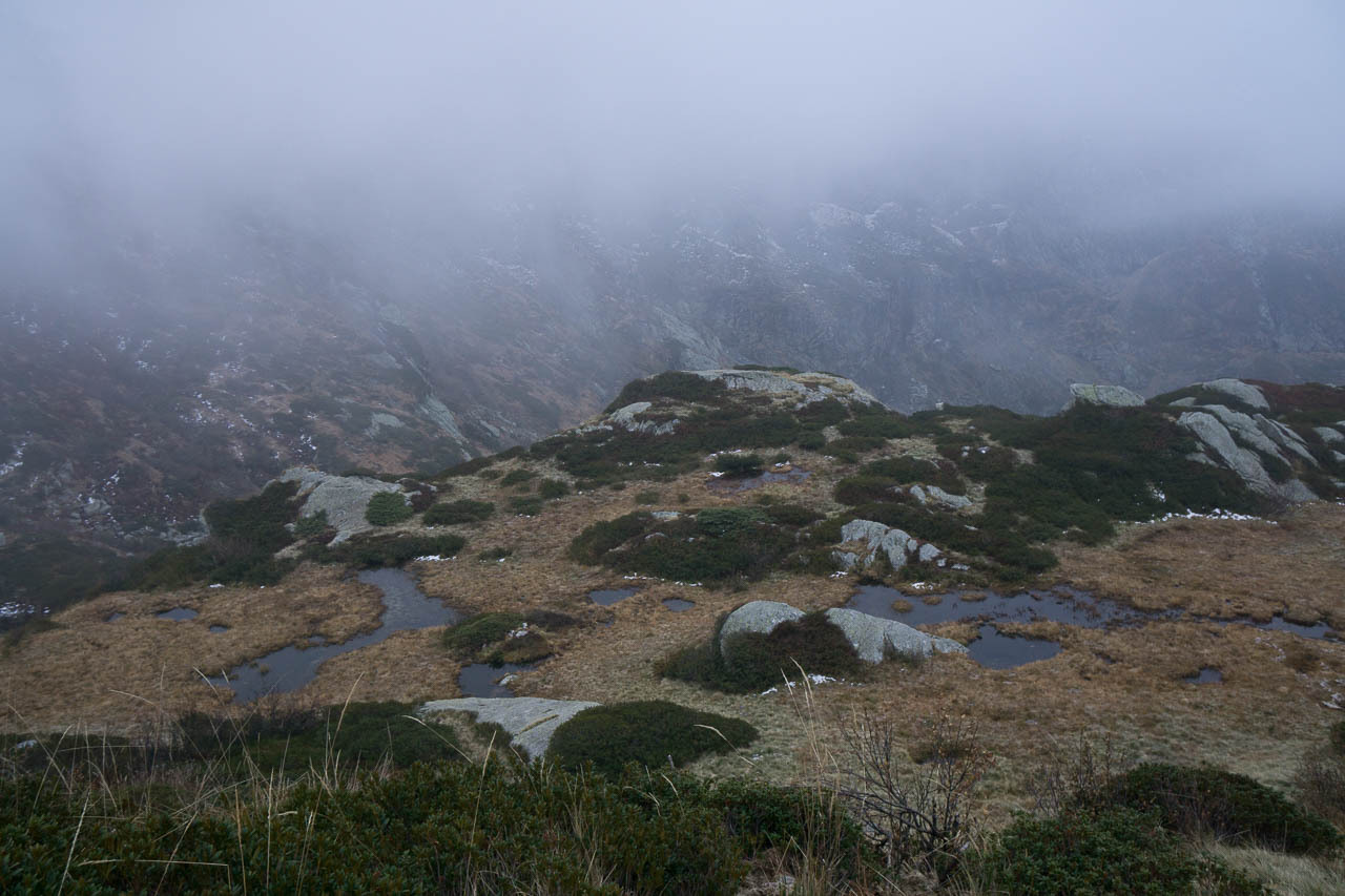 Nach Einplanung aller Hindernisse flog meine Idee raus, vom Süden (besonders stark betroffen) aus die Bove Rundroute anzugehen, da diese schon am ersten Tag über eine lange Strecke hinweg eine Bergflanke quert, die von zig Bergbächen/Rinnen durchzogen ist. Nicht ideal, wenn die Parkverwaltung davor warnt, dass eine Vielzahl der Wege unbegehbar sei. Dann eben frei Schnauze....