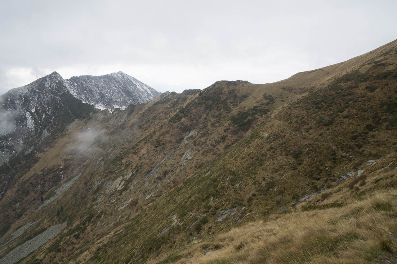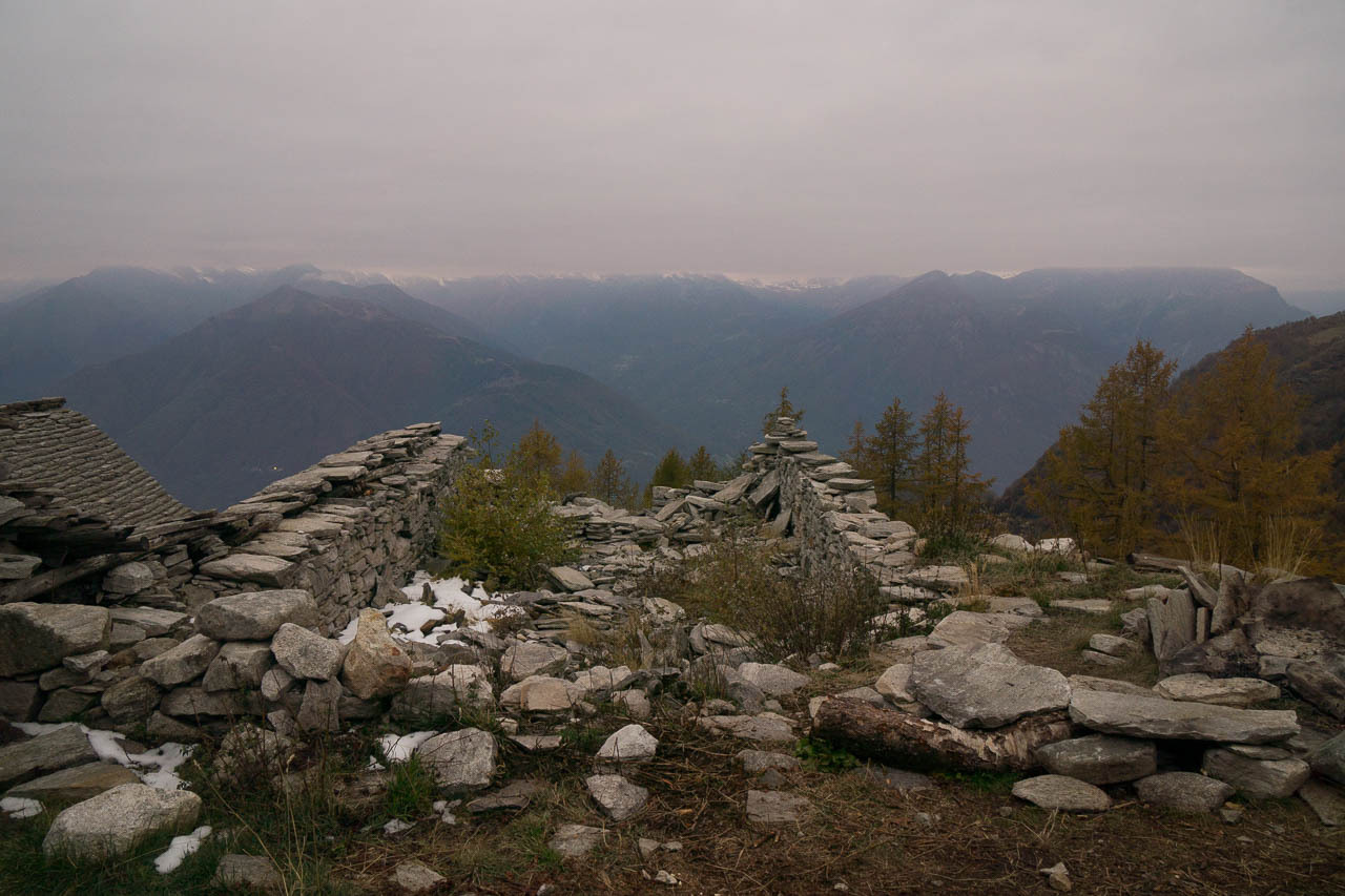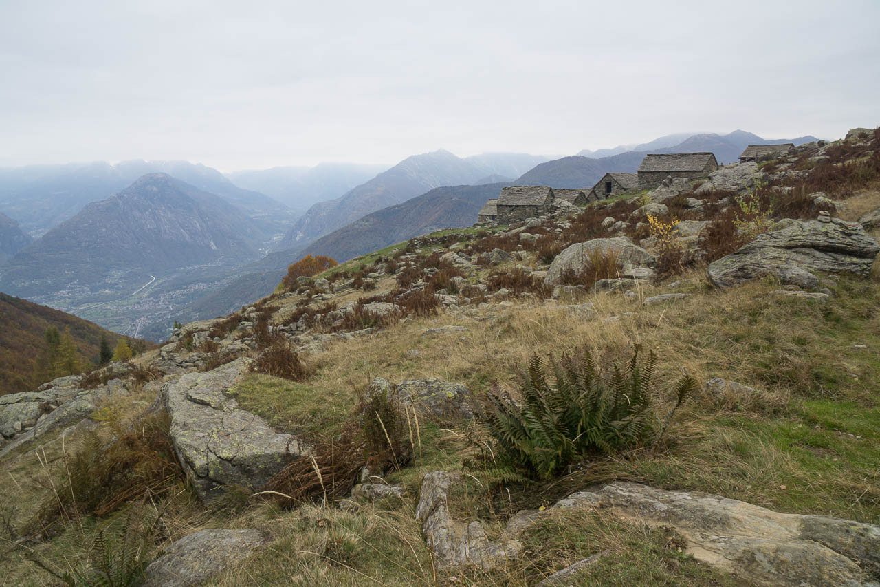 Beim finalen Aufstieg zur Hütte, Blick R. NO, mit Gridone am Horizont.